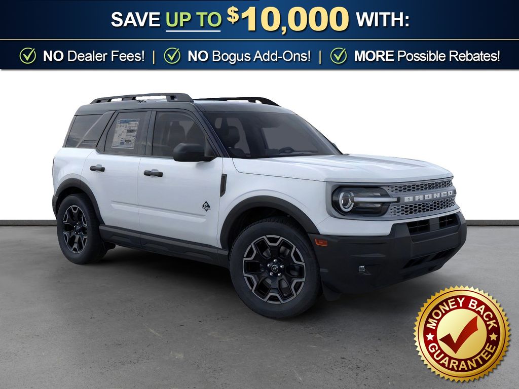 Dealer Discount of $1,145 off MSRP Priced below KBB Fair Purchase Price! Space White Metallic 2026 Ford Bronco Sport Outer Banks NFT 4WD 8-Speed Automatic 1.5L EcoBoost 4-Wheel Disc Brakes, 6 Speakers, ABS brakes, Air Conditioning, Alloy wheels, AM/FM radio: SiriusXM with 360L, AM/FM Stereo, Apple CarPlay/Android Auto, Auto High-beam Headlights, Auto-dimming Rear-View mirror, Automatic temperature control, Brake assist, Compass, Delay-off headlights, Driver door bin, Driver vanity mirror, Dual front impact airbags, Dual front side impact airbags, Electronic Stability Control, Emergency communication system: SYNC 4 911 Assist, Exterior Parking Camera Rear, Ford Connectivity Package (1-Year Included), Four wheel independent suspension, Front anti-roll bar, Front Bucket Seats, Front Center Armrest, Front Driver/Passenger Seat Back Map Pockets, Front dual zone A/C, Front fog lights, Front License Plate Bracket, Front reading lights, Fully automatic headlights, Heated door mirrors, Heated front seats, Heated steering wheel, Illuminated entry, Internet access capable: 5G Modem - Ford Connectivity Package, Knee airbag, Low tire pressure warning, Memory seat, Occupant sensing airbag, Outside temperature display, Overhead airbag, Overhead console, Panic alarm, Passenger door bin, Passenger vanity mirror, Power door mirrors, Power driver seat, Power passenger seat, Power steering, Power windows, Radio data system, Rear anti-roll bar, Rear Parking Sensors, Rear reading lights, Rear seat center armrest, Rear window defroster, Rear window wiper, Remote keyless entry, Security system, SiriusXM with 360L, Speed control, Speed-sensing steering, Speed-Sensitive Wipers, Split folding rear seat, Steering wheel mounted audio controls, SYNC 4 with Enhanced Voice Recognition, Tachometer, Telescoping steering wheel, Tilt steering wheel, Traction control, Trip computer, Variably intermittent wipers, Wheels: 18" Ebony Black.