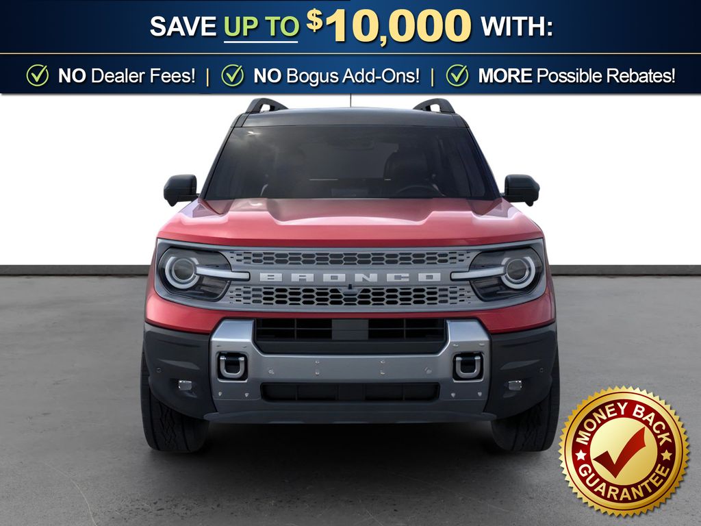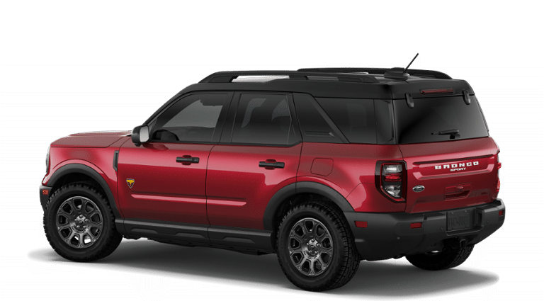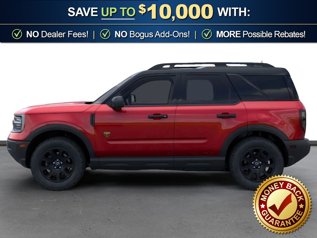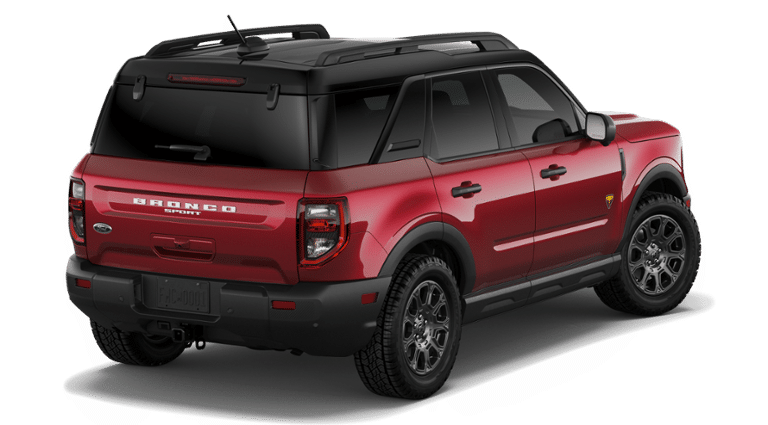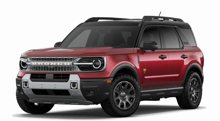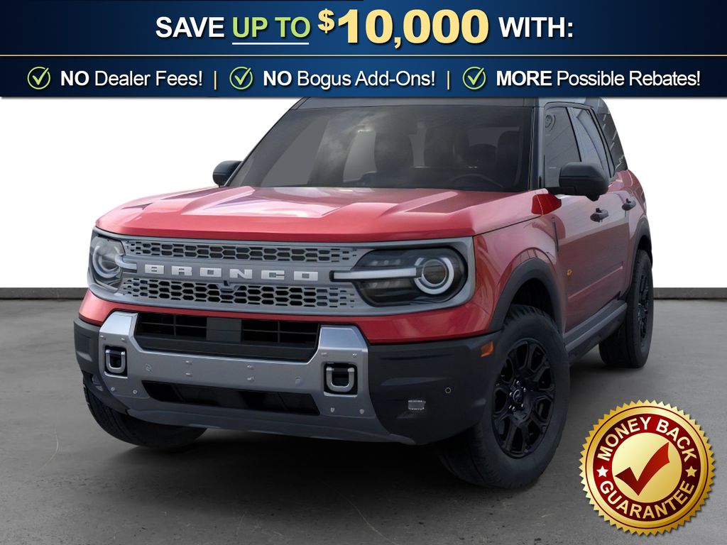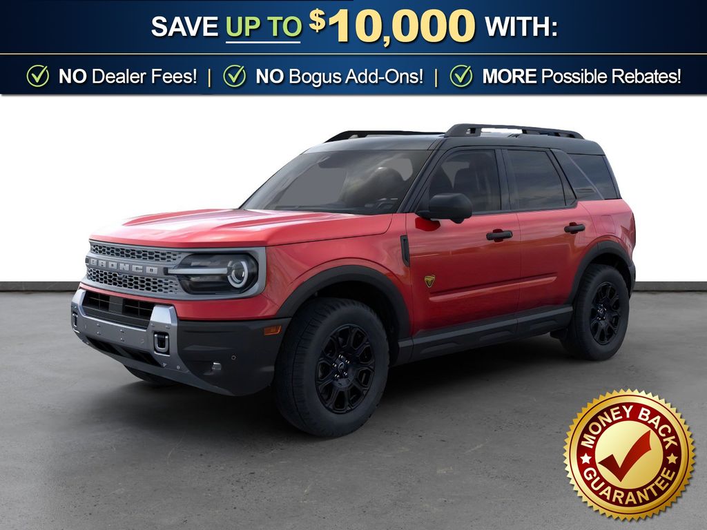 Dealer Discount of $1,395 off MSRP Ruby Red Metallic Tinted Clearcoat 2026 Ford Bronco Sport Badlands NFT 4WD 8-Speed Automatic EcoBoost 2.0L I4 GTDi DOHC Turbocharged VCT 4-Wheel Disc Brakes, 6 Speakers, ABS brakes, Air Conditioning, Alloy wheels, AM/FM radio: SiriusXM with 360L, AM/FM Stereo, Apple CarPlay/Android Auto, Auto High-beam Headlights, Auto-dimming Rear-View mirror, Automatic temperature control, Badlands Tech Package, Brake assist, Compass, Connected Navigation (1-Year Included), Delay-off headlights, Driver door bin, Driver vanity mirror, Dual front impact airbags, Dual front side impact airbags, Electronic Stability Control, Emergency communication system: SYNC 4 911 Assist, Exterior Parking Camera Rear, Ford Connectivity Package (1-Year Included), Four wheel independent suspension, Front anti-roll bar, Front Bucket Seats, Front Center Armrest, Front fog lights, Front License Plate Bracket, Front reading lights, Fully automatic headlights, Heated door mirrors, Heated front seats, Heated steering wheel, Illuminated entry, Internet access capable: 5G Modem - Ford Connectivity Package, Knee airbag, Leather-Trimmed Heated Front Sport Contour Bucket Seats, Low tire pressure warning, Memory seat, Noise Reduction Module, Occupant sensing airbag, Outside temperature display, Overhead airbag, Overhead console, Panic alarm, Passenger door bin, Passenger vanity mirror, Power door mirrors, Power driver seat, Power Moonroof, Power passenger seat, Power steering, Power windows, Radio data system, Radio: HD w/B&O Sound System by Bang & Olufsen, Rear anti-roll bar, Rear reading lights, Rear seat center armrest, Rear window defroster, Rear window wiper, Remote keyless entry, Security system, SiriusXM with 360L, Speed control, Speed-sensing steering, Speed-Sensitive Wipers, Split folding rear seat, Steering wheel mounted audio controls, SYNC 4 with Enhanced Voice Recognition, Tachometer, Telescoping steering wheel, Tilt steering wheel, Traction control, Trip computer, Variably intermittent wipers, Wheels: 17" Matte Black-Painted Aluminum.