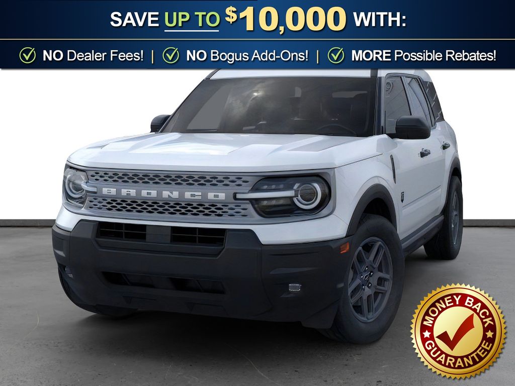 Space White Metallic 2026 Ford Bronco Sport Big Bend FCT 4WD 8-Speed Automatic 1.5L EcoBoost 4-Wheel Disc Brakes, 6 Speakers, ABS brakes, Air Conditioning, Alloy wheels, AM/FM radio: SiriusXM with 360L, AM/FM Stereo, Apple CarPlay/Android Auto, Auto High-beam Headlights, Automatic temperature control, Brake assist, Cloth with Easy-to-Clean Front Bucket Seats, Compass, Convenience Package, Delay-off headlights, Driver door bin, Driver vanity mirror, Dual front impact airbags, Dual front side impact airbags, Electronic Stability Control, Emergency communication system: SYNC 4 911 Assist, Exterior Parking Camera Rear, Ford Connectivity Package (1-Year Included), Four wheel independent suspension, Front anti-roll bar, Front Bucket Seats, Front Center Armrest, Front Driver/Passenger Seat Back Map Pockets, Front License Plate Bracket, Front reading lights, Fully automatic headlights, Heated 8-Way Power Driver's Seat, Heated door mirrors, Illuminated entry, Internet access capable: 5G Modem - Ford Connectivity Package, Knee airbag, LED Fog Lamps, Liftgate with Black BRONCO SPORT Lettering, Low tire pressure warning, Occupant sensing airbag, Outside temperature display, Overhead airbag, Overhead console, Panic alarm, Passenger door bin, Passenger vanity mirror, Power door mirrors, Power steering, Power windows, Premium Wrapped Steering Wheel, Radio data system, Rear anti-roll bar, Rear Parking Sensors, Rear reading lights, Rear seat center armrest, Rear window defroster, Rear window wiper, Remote keyless entry, Security system, SiriusXM with 360L, Speed control, Speed-sensing steering, Speed-Sensitive Wipers, Split folding rear seat, Steering wheel mounted audio controls, SYNC 4 with Enhanced Voice Recognition, Tachometer, Telescoping steering wheel, Tilt steering wheel, Traction control, Trip computer, Variably intermittent wipers, Wheels: 17" Carbonized Gray Painted Aluminum.