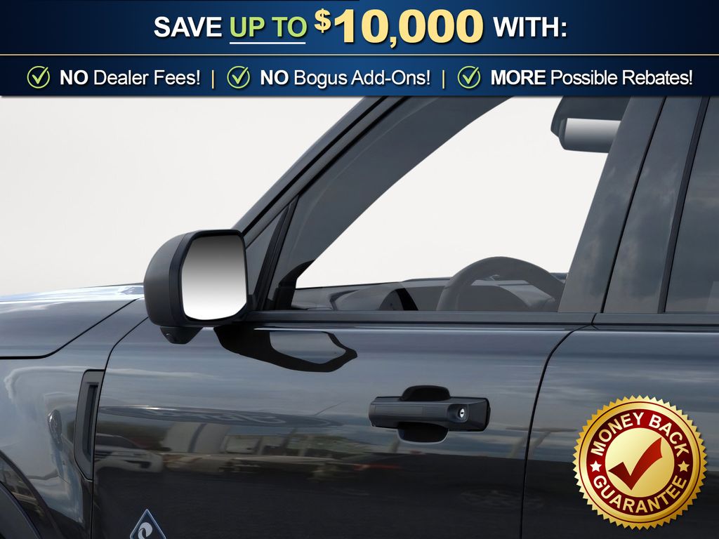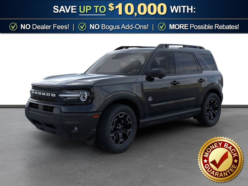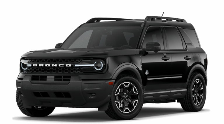Shadow Black 2026 Ford Bronco Sport Outer Banks FCT 4WD 8-Speed Automatic 1.5L EcoBoost 360-Degree Camera with Trail View, 4-Wheel Disc Brakes, 6 Speakers, ABS brakes, Air Conditioning, Alloy wheels, AM/FM radio: SiriusXM with 360L, AM/FM Stereo, Apple CarPlay/Android Auto, Auto High-beam Headlights, Auto-dimming Rear-View mirror, Automatic temperature control, Brake assist, Compass, Connected Navigation (1-Year Included), Delay-off headlights, Driver door bin, Driver vanity mirror, Dual front impact airbags, Dual front side impact airbags, Electronic Stability Control, Emergency communication system: SYNC 4 911 Assist, Exterior Parking Camera Rear, Ford Connectivity Package (1-Year Included), Four wheel independent suspension, Front anti-roll bar, Front Bucket Seats, Front Center Armrest, Front Driver/Passenger Seat Back Map Pockets, Front dual zone A/C, Front fog lights, Front License Plate Bracket, Front Parking Sensors, Front reading lights, Fully automatic headlights, Heated door mirrors, Heated front seats, Heated steering wheel, Illuminated entry, Internet access capable: 5G Modem - Ford Connectivity Package, Knee airbag, Low tire pressure warning, Memory seat, Occupant sensing airbag, Outer Banks Tech Package+, Outside temperature display, Overhead airbag, Overhead console, Panic alarm, Passenger door bin, Passenger vanity mirror, Power door mirrors, Power driver seat, Power Moonroof, Power passenger seat, Power steering, Power windows, Radio data system, Radio: HD w/B&O Sound System by Bang & Olufsen, Rear anti-roll bar, Rear Parking Sensors, Rear reading lights, Rear seat center armrest, Rear window defroster, Rear window wiper, Remote keyless entry, Reverse Brake Assist, Security system, SiriusXM with 360L, Speed control, Speed-sensing steering, Speed-Sensitive Wipers, Split folding rear seat, Steering wheel mounted audio controls, SYNC 4 with Enhanced Voice Recognition, Tachometer, Telescoping steering wheel, Tilt steering wheel, Traction control, Trip computer, Variably intermittent wipers, Wheels: 18" Ebony Black.
