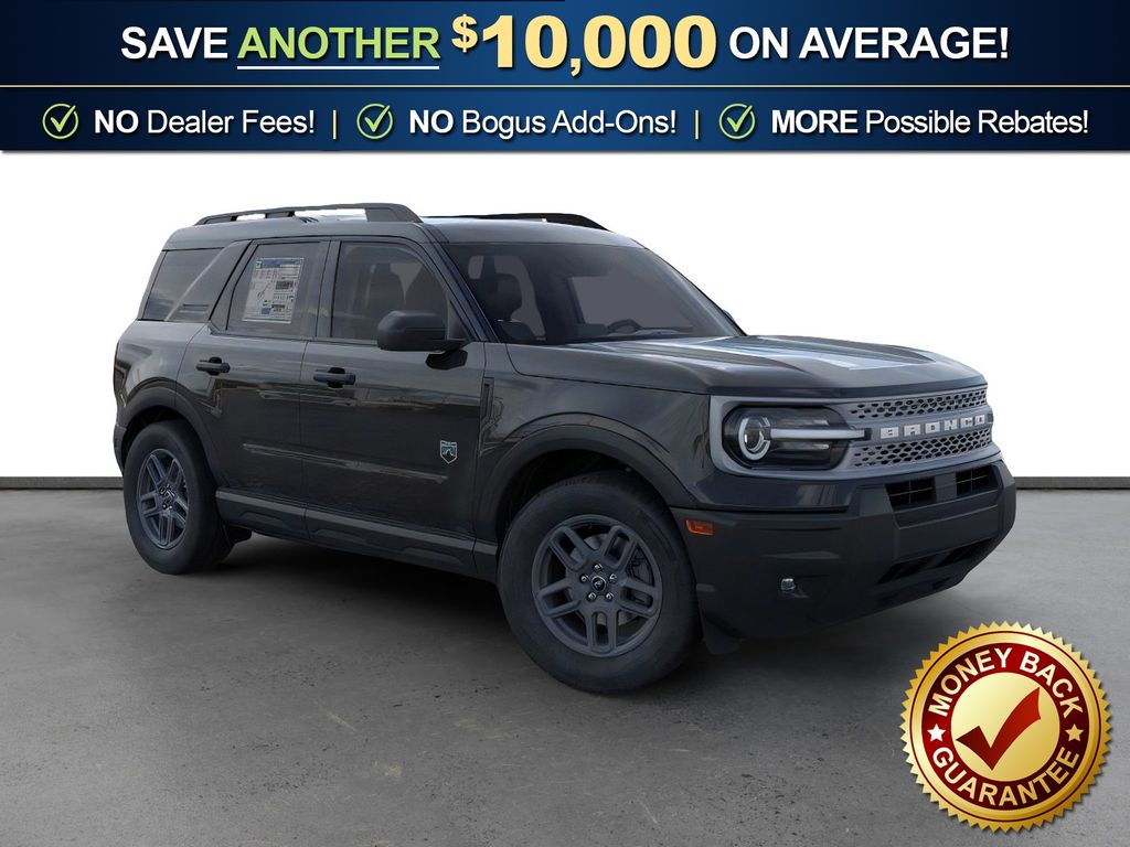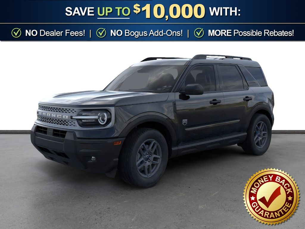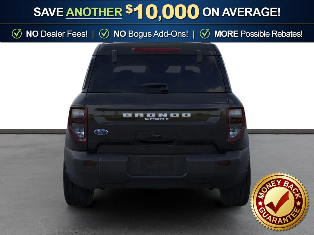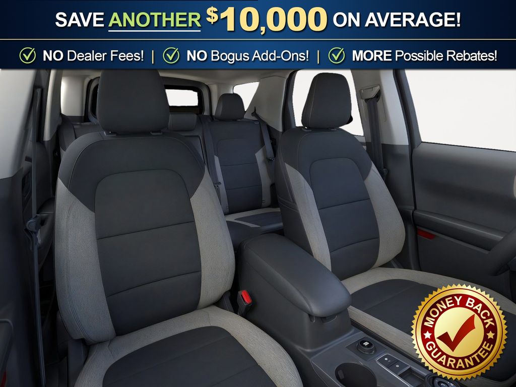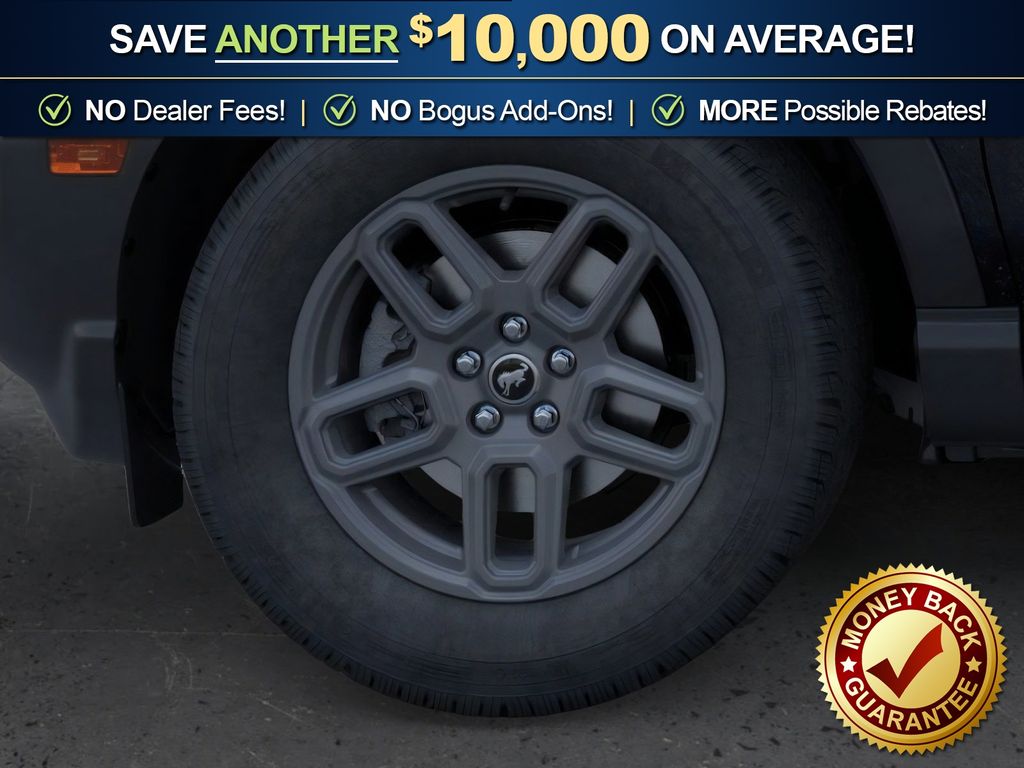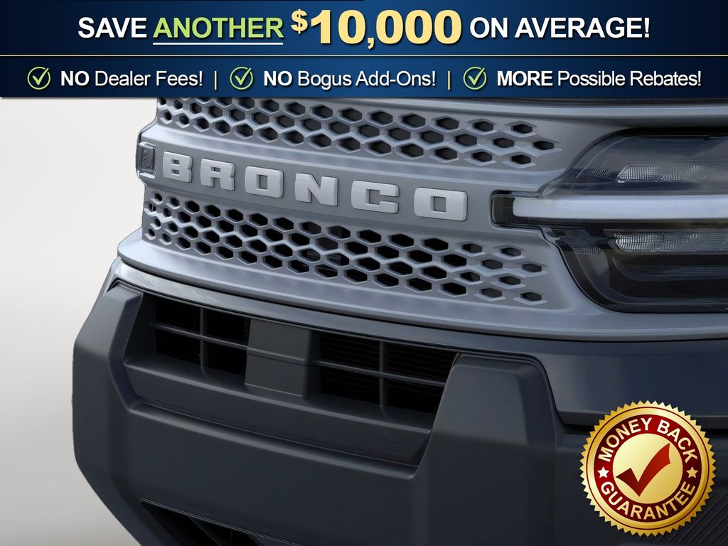 Convenience Package (Front Driver/Passenger Seat Back Map Pockets, Heated 8-Way Power Driver's Seat, LED Fog Lamps, and Premium Wrapped Steering Wheel), Ford Connectivity Package (1-Year Included), Internet access capable: 5G Modem - Ford Connectivity Package, 4-Wheel Disc Brakes, 6 Speakers, ABS brakes, Air Conditioning, Alloy wheels, AM/FM radio: SiriusXM with 360L, AM/FM Stereo, Apple CarPlay/Android Auto, Auto High-beam Headlights, Automatic temperature control, Brake assist, Cloth with Easy-to-Clean Front Bucket Seats, Compass, Delay-off headlights, Driver door bin, Driver vanity mirror, Dual front impact airbags, Dual front side impact airbags, Electronic Stability Control, Emergency communication system: SYNC 4 911 Assist, Exterior Parking Camera Rear, Four wheel independent suspension, Front anti-roll bar, Front Bucket Seats, Front Center Armrest, Front reading lights, Fully automatic headlights, Heated door mirrors, Illuminated entry, Knee airbag, Liftgate with Black BRONCO SPORT Lettering, Low tire pressure warning, Occupant sensing airbag, Outside temperature display, Overhead airbag, Overhead console, Panic alarm, Passenger door bin, Passenger vanity mirror, Power door mirrors, Power steering, Power windows, Radio data system, Rear anti-roll bar, Rear Parking Sensors, Rear reading lights, Rear seat center armrest, Rear window defroster, Rear window wiper, Remote keyless entry, Security system, SiriusXM with 360L, Speed control, Speed-sensing steering, Speed-Sensitive Wipers, Split folding rear seat, Steering wheel mounted audio controls, SYNC 4 with Enhanced Voice Recognition, Tachometer, Telescoping steering wheel, Tilt steering wheel, Traction control, Trip computer, Variably intermittent wipers, and Wheels: 17" Carbonized Gray Painted Aluminum.