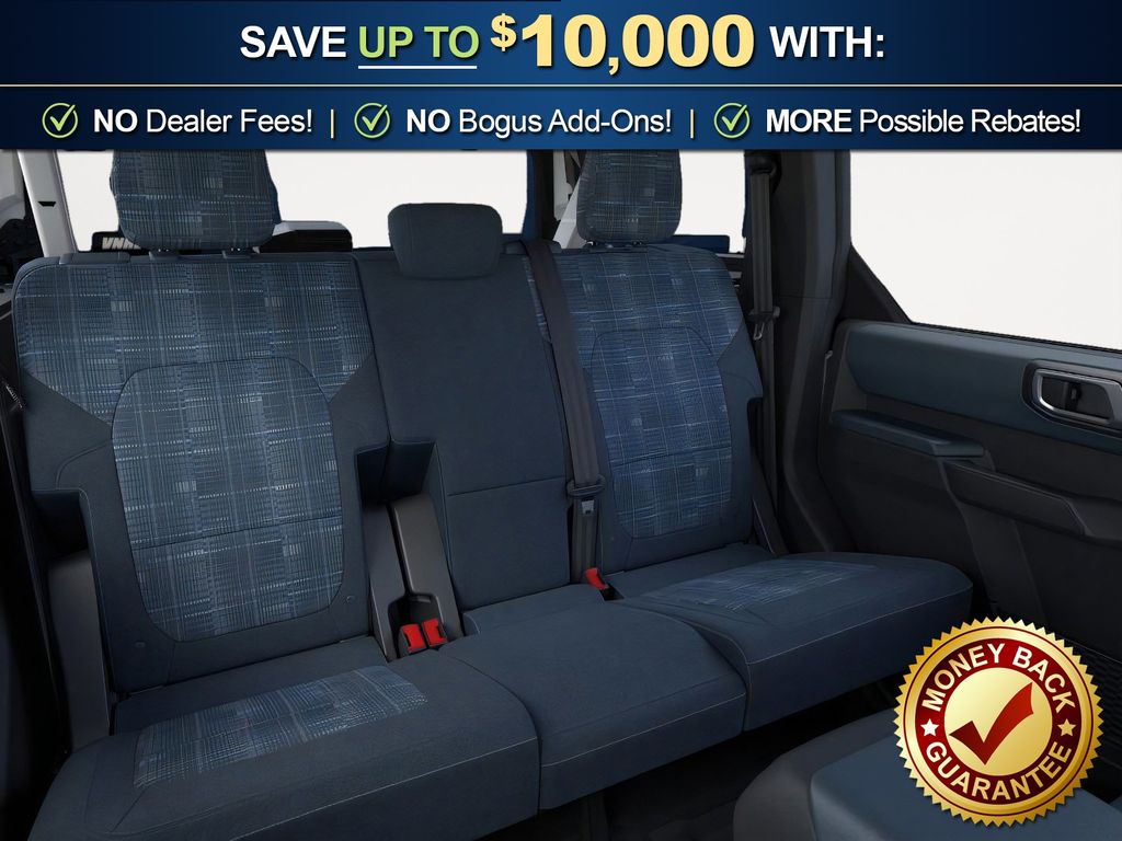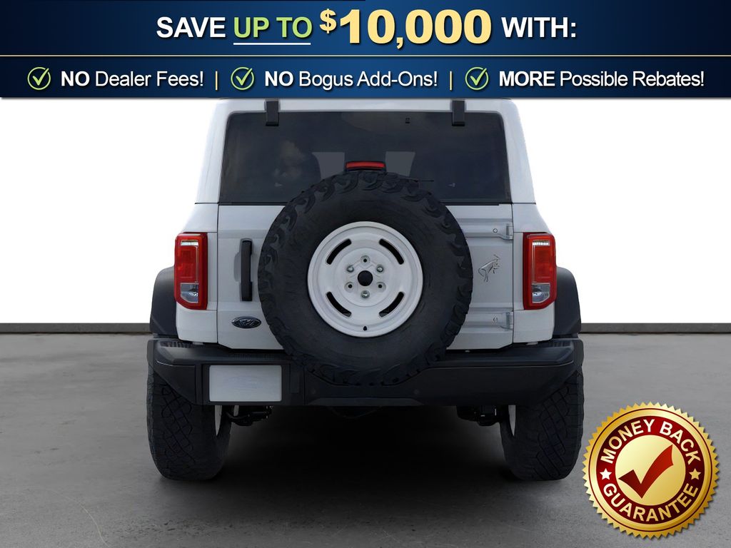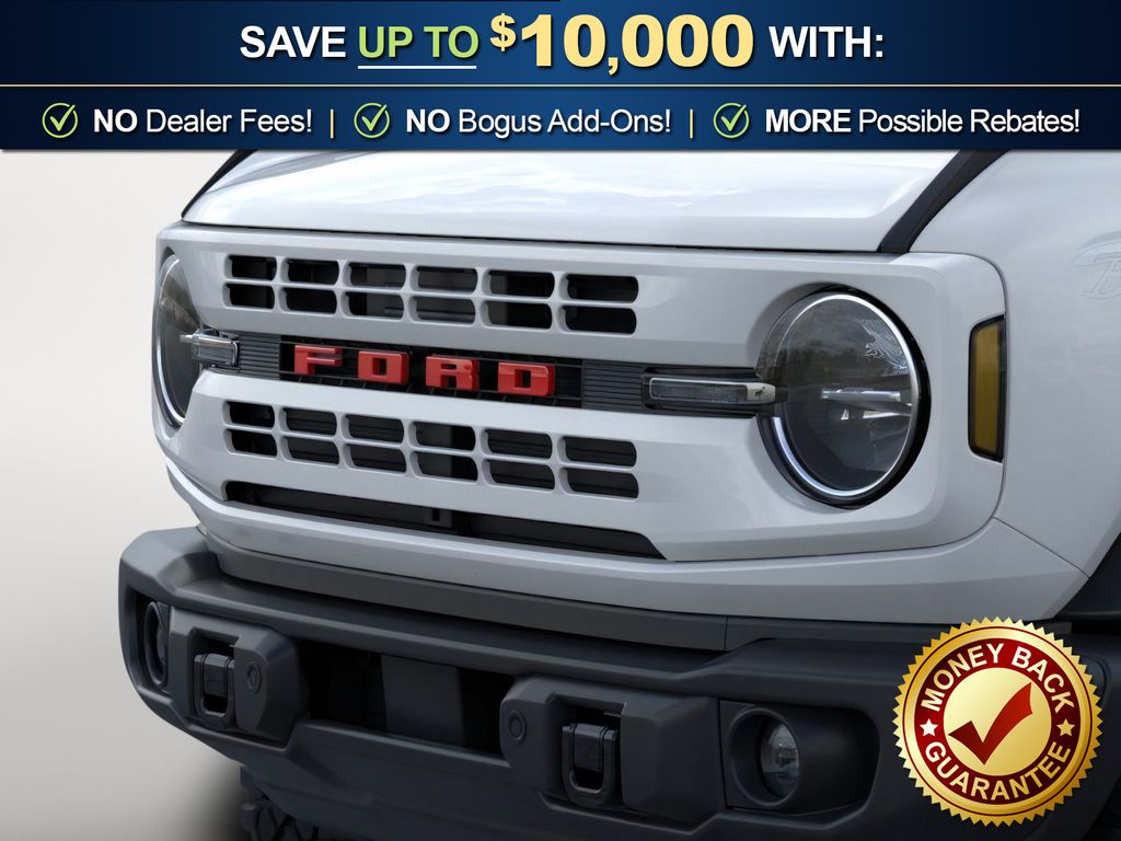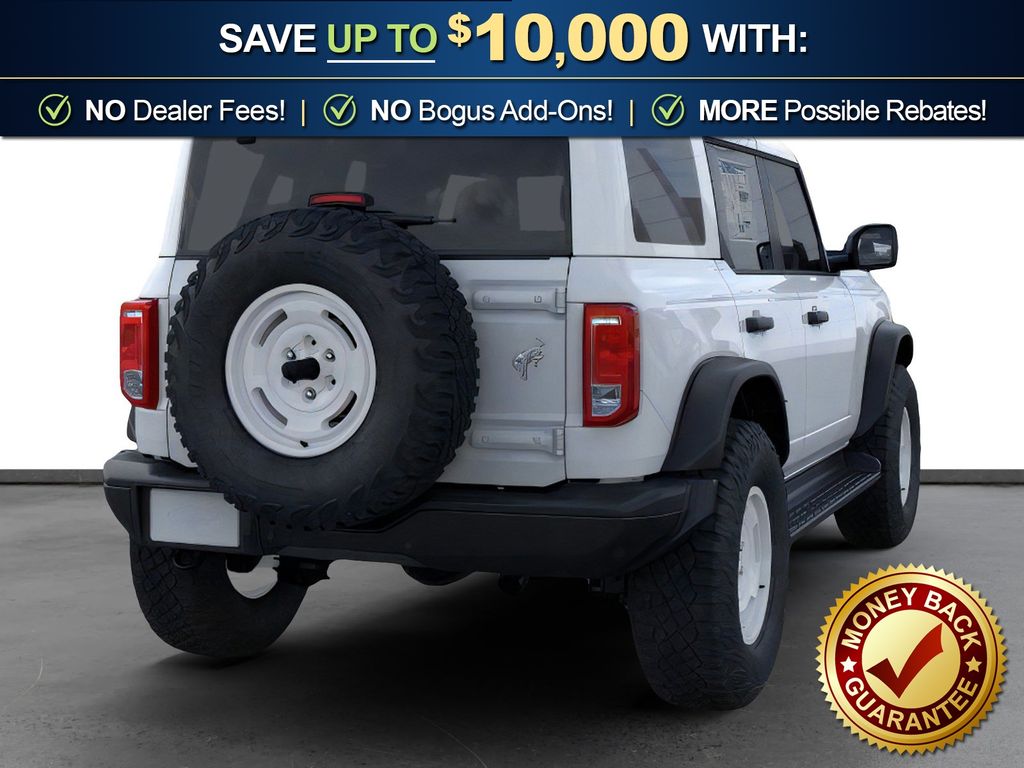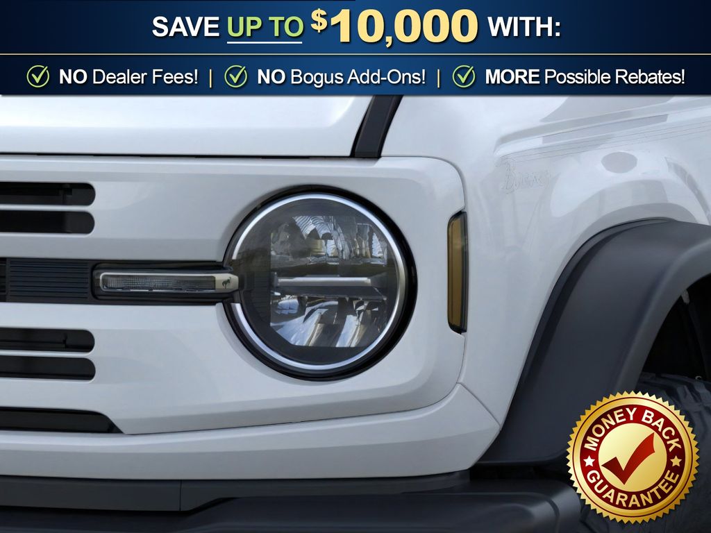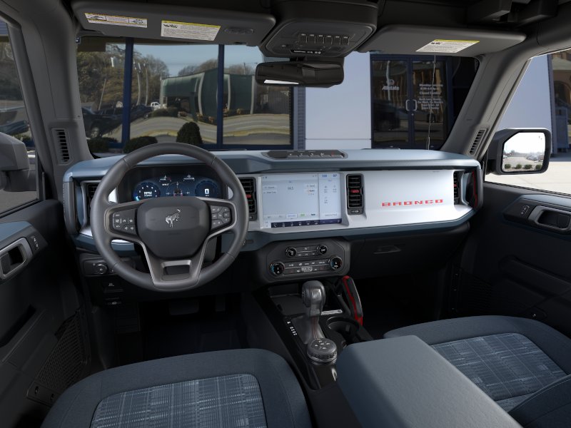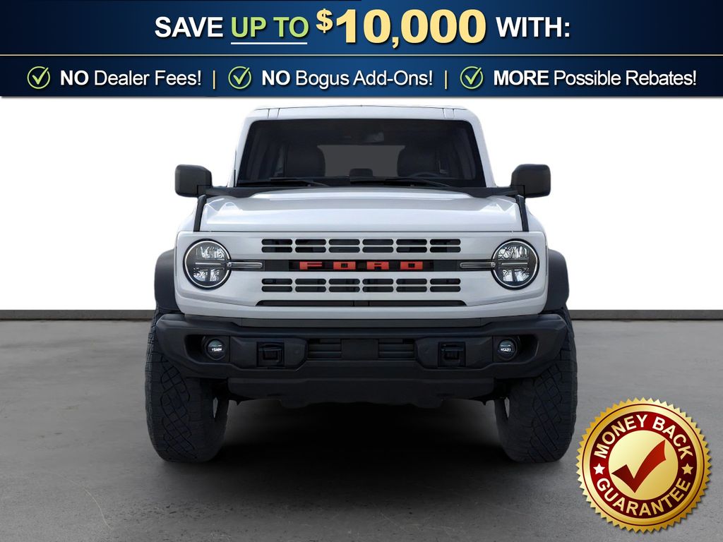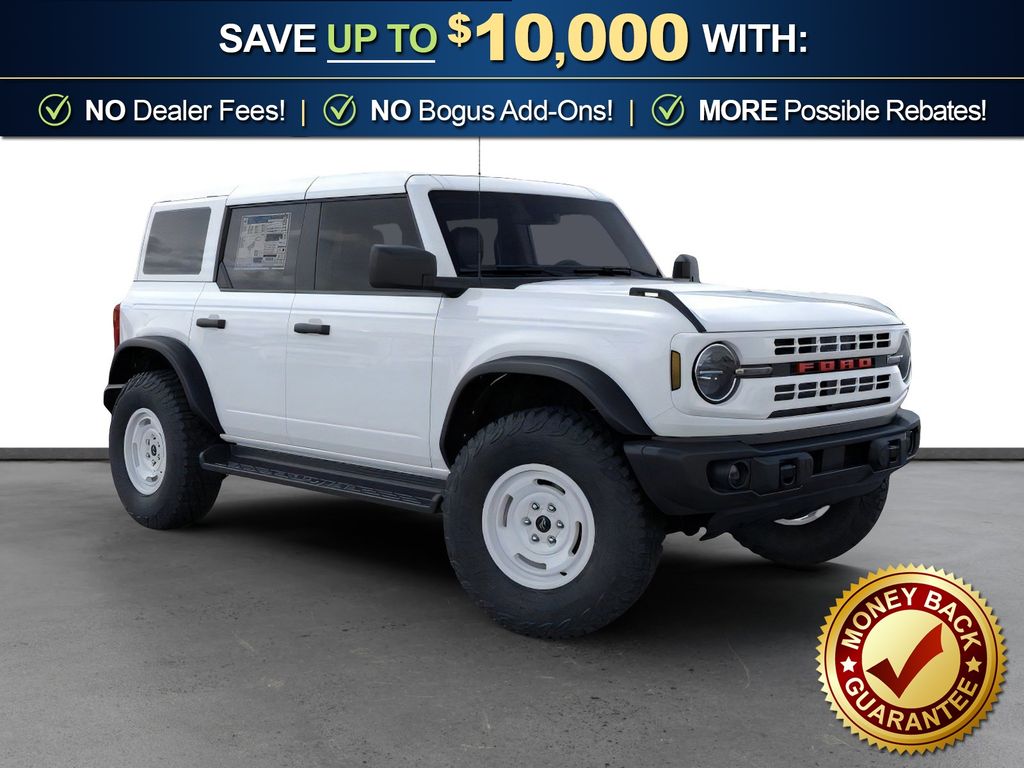 Oxford White 2026 Ford Bronco Heritage Edition NFT 4WD 10-Speed Automatic 2.7L EcoBoost V6 4-Wheel Disc Brakes, 7 Speakers, ABS brakes, Air Conditioning, Alloy wheels, AM/FM radio: SiriusXM with 360L, AM/FM Stereo, Auto High-beam Headlights, Auto-dimming Rear-View mirror, Automatic temperature control, Brake assist, Compass, Connected Navigation, Convertible HardTop, Convertible roof lining, Delay-off headlights, Driver door bin, Driver vanity mirror, Dual front impact airbags, Dual front side impact airbags, Electronic Stability Control, Emergency communication system: 911 Assist, Exterior Parking Camera Rear, Ford Connectivity Package (1-Year Included), Front anti-roll bar, Front Bucket Seats, Front Center Armrest, Front dual zone A/C, Front fog lights, Front License Plate Bracket, Front reading lights, Front wheel independent suspension, Fully automatic headlights, Glass rear window, Heated door mirrors, Heated front seats, Heated steering wheel, Illuminated entry, Integrated roll-over protection, Low tire pressure warning, Navigation system: Connected Navigation, Occupant sensing airbag, Outside temperature display, Overhead airbag, Overhead console, Panic alarm, Passenger door bin, Passenger vanity mirror, Plaid Cloth Front Heated Bucket Seats, Power door mirrors, Power steering, Power windows, Radio data system, Rear window defroster, Rear window wiper, Remote keyless entry, Security system, SiriusXM with 360L, Speed control, Split folding rear seat, Steering wheel mounted audio controls, SYNC 4, Tachometer, Telescoping steering wheel, Tilt steering wheel, Traction control, Trip computer, Variably intermittent wipers, Wheels: 17" Unique White.