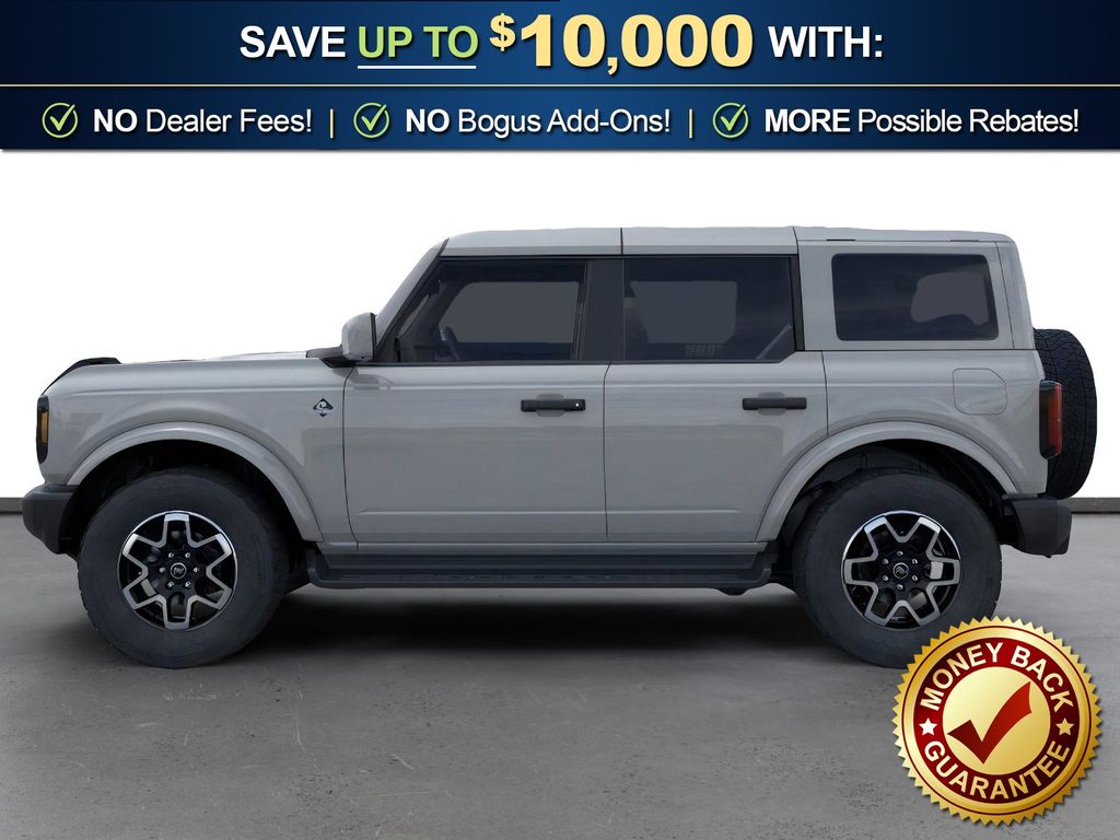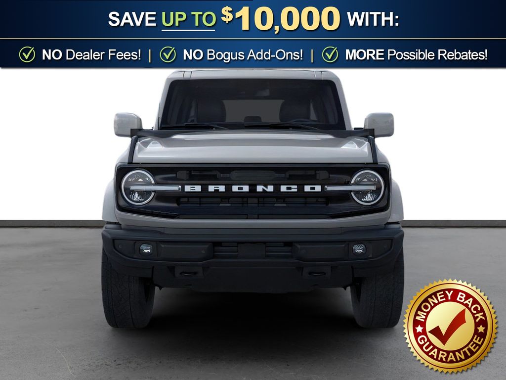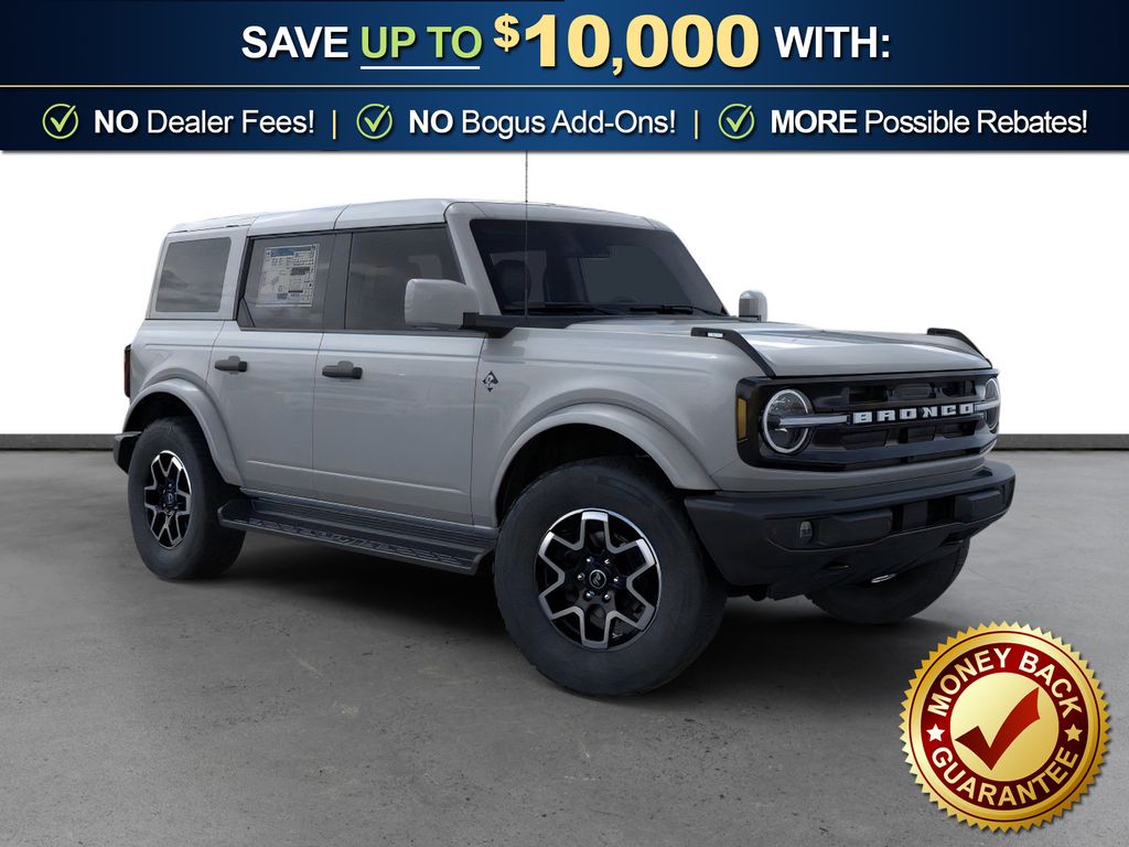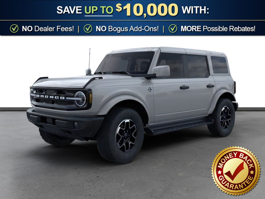Avalanche Gray 2026 Ford Bronco Outer Banks NFT 4WD 10-Speed Automatic 2.7L EcoBoost V6 18" Bright Machined Aluminum Wheels, 3.73 Axle Ratio, 4-Wheel Disc Brakes, 7 Speakers, ABS brakes, Air Conditioning, Alloy wheels, AM/FM radio: SiriusXM with 360L, AM/FM Stereo, Auto High-beam Headlights, Auto-dimming Rear-View mirror, Automatic temperature control, Brake assist, Compass, Connected Navigation, Delay-off headlights, Driver door bin, Driver vanity mirror, Dual front impact airbags, Dual front side impact airbags, Electronic Stability Control, Emergency communication system: 911 Assist, Exterior Parking Camera Rear, Ford Connectivity Package (1-Year Included), Front anti-roll bar, Front Bucket Seats, Front Center Armrest, Front dual zone A/C, Front fog lights, Front License Plate Bracket, Front reading lights, Front wheel independent suspension, Fully automatic headlights, Hard Top Sound Deadening Headliner, Heated door mirrors, Heated front seats, Heated Leather-Trimmed/Vinyl Bucket Seats, Heated steering wheel, Illuminated entry, Integrated roll-over protection, Leather Shift Knob, Low tire pressure warning, Navigation system: Connected Navigation, Occupant sensing airbag, Outside temperature display, Overhead airbag, Overhead console, Painted Hard Top, Panic alarm, Passenger door bin, Passenger vanity mirror, Power door mirrors, Power driver seat, Power passenger seat, Power steering, Power windows, Radio data system, Rear seat center armrest, Rear-Window Defroster and Washer, Remote keyless entry, Security system, SiriusXM with 360L, Speed control, Split folding rear seat, Steering wheel mounted audio controls, SYNC 4, Tachometer, Telescoping steering wheel, Tilt steering wheel, Traction control, Trip computer, Variably intermittent wipers, Voltmeter.