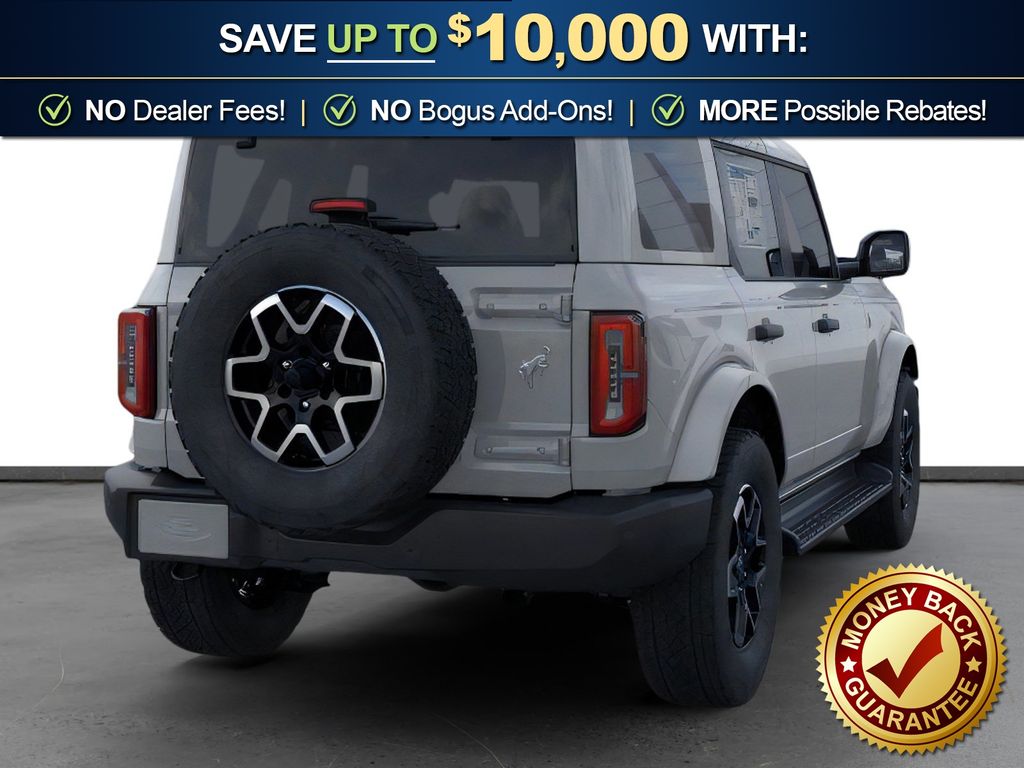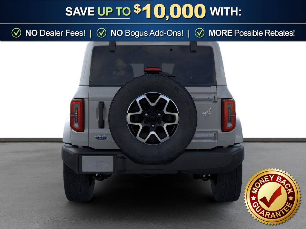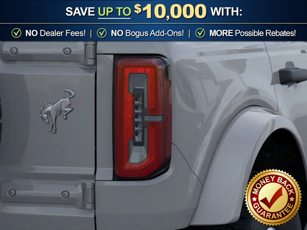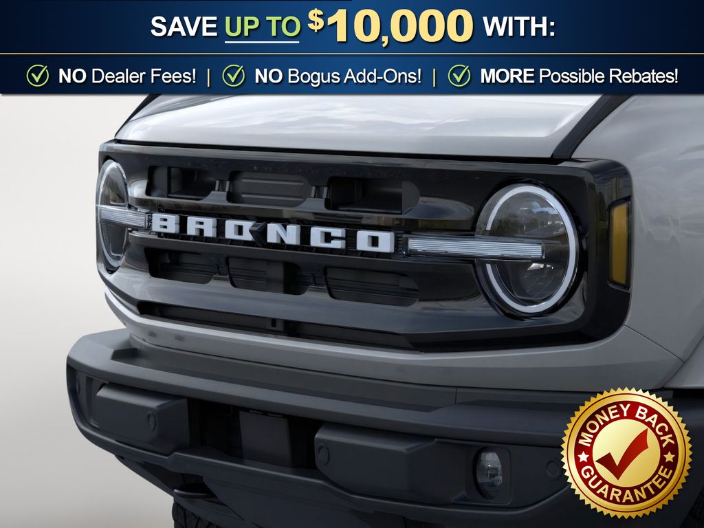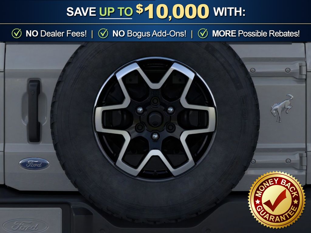 Avalanche Gray 2026 Ford Bronco Outer Banks NFT 4WD 10-Speed Automatic 2.7L EcoBoost V6 18" Bright Machined Aluminum Wheels, 3.73 Axle Ratio, 4-Wheel Disc Brakes, 7 Speakers, ABS brakes, Air Conditioning, Alloy wheels, AM/FM radio: SiriusXM with 360L, AM/FM Stereo, Auto High-beam Headlights, Auto-dimming Rear-View mirror, Automatic temperature control, Brake assist, Compass, Connected Navigation, Delay-off headlights, Driver door bin, Driver vanity mirror, Dual front impact airbags, Dual front side impact airbags, Electronic Stability Control, Emergency communication system: 911 Assist, Exterior Parking Camera Rear, Ford Connectivity Package (1-Year Included), Front anti-roll bar, Front Bucket Seats, Front Center Armrest, Front dual zone A/C, Front fog lights, Front License Plate Bracket, Front reading lights, Front wheel independent suspension, Fully automatic headlights, Hard Top Sound Deadening Headliner, Heated door mirrors, Heated front seats, Heated Leather-Trimmed/Vinyl Bucket Seats, Heated steering wheel, Illuminated entry, Integrated roll-over protection, Leather Shift Knob, Low tire pressure warning, Navigation system: Connected Navigation, Occupant sensing airbag, Outside temperature display, Overhead airbag, Overhead console, Painted Hard Top, Panic alarm, Passenger door bin, Passenger vanity mirror, Power door mirrors, Power driver seat, Power passenger seat, Power steering, Power windows, Radio data system, Rear seat center armrest, Rear-Window Defroster and Washer, Remote keyless entry, Security system, SiriusXM with 360L, Speed control, Split folding rear seat, Steering wheel mounted audio controls, SYNC 4, Tachometer, Telescoping steering wheel, Tilt steering wheel, Traction control, Trip computer, Variably intermittent wipers, Voltmeter.