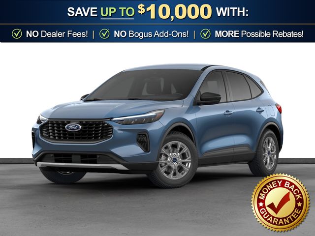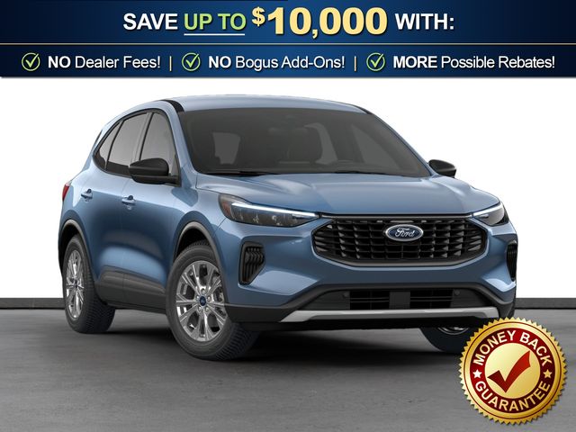 2026 Ford Escape Active NFT Vapor Blue Metallic Active NFT FWD 8-Speed Automatic 1.5L EcoBoost 3.81 Axle Ratio, 4-Way Manual Front Passenger Seat, 4-Wheel Disc Brakes, 6 Speakers, 6-Way Manual Driver Seat, ABS brakes, Adaptive Cruise Control with Stop-and-Go, Air Conditioning, Alloy wheels, AM/FM radio: SiriusXM 360L, Auto High-beam Headlights, Automatic temperature control, Brake assist, Bumpers: body-color, Compass, Connected Navigation (1-Year Included), Delay-off headlights, Digital Rear View Camera, Driver door bin, Driver vanity mirror, Dual front impact airbags, Dual front side impact airbags, Electronic Stability Control, Emergency communication system: SYNC 4 911 Assist, Equipment Group 200A, Evasive Steering Assist, Ford App, Ford Co-Pilot360 Assist+, Four wheel independent suspension, Front anti-roll bar, Front Bucket Seats, Front Center Armrest, Front dual zone A/C, Front reading lights, Fully automatic headlights, Illuminated entry, Intersection Assist, Knee airbag, Low tire pressure warning, Occupant sensing airbag, Outside temperature display, Overhead airbag, Overhead console, Panic alarm, Passenger door bin, Passenger vanity mirror, Power door mirrors, Power steering, Power windows, Predictive Speed Assist, Radio data system, Radio: AM/FM Stereo with SiriusXM 360L, Rear anti-roll bar, Rear Parking Sensor, Rear reading lights, Rear seat center armrest, Rear window defroster, Rear window wiper, Remote keyless entry, Speed control, Speed-sensing steering, Speed-Sensitive Wipers, Split folding rear seat, Spoiler, Steering wheel mounted audio controls, SYNC 4, SYNC 4 with Enhanced Voice Recognition, Tachometer, Tech Pack #1, Telescoping steering wheel, Tilt steering wheel, Traction control, Trip computer, Unique Cloth Front Bucket Seats, Variably intermittent wipers, Wheels: 17" Shadow Silver-Painted Aluminum.
