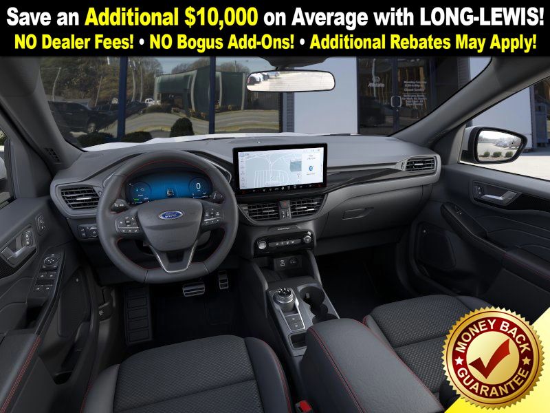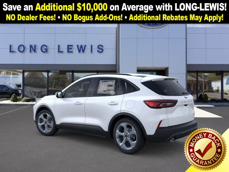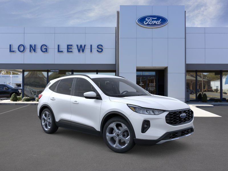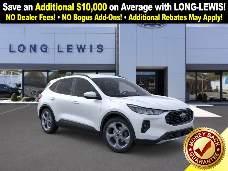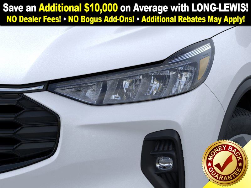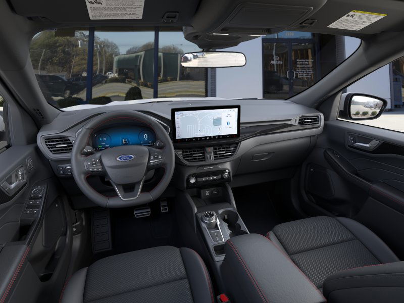 star white metallic tri-coat 2026 Ford Escape Hybrid ST-Line Select NFT AWD eCVT 2.5L iVCT 2.5L iVCT, 10-Way Power Driver's Seat, 2.91 Axle Ratio, 4-Wheel Disc Brakes, 6 Speakers, ABS brakes, Air Conditioning, Alloy wheels, Auto High-beam Headlights, Automatic temperature control, Body Color Mirrors, Brake assist, Bumpers: body-color, Compass, Delay-off headlights, Driver door bin, Driver vanity mirror, Dual front impact airbags, Dual front side impact airbags, Electronic Fuel Door Release, Electronic Stability Control, Emergency communication system: SYNC 4 911 Assist, Ford App, Ford Co-Pilot360 Assist 2.0, Four wheel independent suspension, Front anti-roll bar, Front Bucket Seats, Front Center Armrest, Front dual zone A/C, Front fog lights, Front License Plate Bracket, Front reading lights, Fully automatic headlights, HD Radio, Heated door mirrors, Heated front seats, Heated steering wheel, Illuminated entry, Intersection Assist, Knee airbag, Low tire pressure warning, Memory Package, Neutral Towing Capability, Occupant sensing airbag, Outside temperature display, Overhead airbag, Overhead console, Panic alarm, Passenger door bin, Passenger vanity mirror, Pedestrian Alert Sounder, Power door mirrors, Power driver seat, Power Liftgate, Power steering, Power windows, Predictive Speed Assist, Radio data system, Rear anti-roll bar, Rear Parking Sensor, Rear reading lights, Rear seat center armrest, Rear window defroster, Rear window wiper, Remote keyless entry, Reverse Brake Assist, Speed control, Speed-sensing steering, Speed-Sensitive Wipers, Split folding rear seat, Spoiler, Sport steering wheel, Steering wheel mounted audio controls, SYNC 4, Tachometer, Tech Pack #2, Telescoping steering wheel, Tilt steering wheel, Traction control, Trip computer, Variably intermittent wipers, Wheels: 18" Rock Metallic Painted Aluminum, Wireless Charging Pad, 2.5L iVCT.