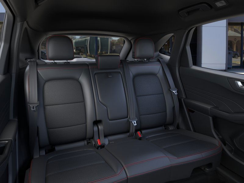 Space Silver Metallic 2026 Ford Escape Hybrid ST-Line Select NFT AWD eCVT 2.5L iVCT 2.5L iVCT, 10-Way Power Driver's Seat w/Memory, 2.91 Axle Ratio, 4-Way Manual Front Passenger Seat, 4-Wheel Disc Brakes, 6 Speakers, 8-Way Power Driver Seat, ABS brakes, Adaptive Cruise Control with Stop-and-Go, Air Conditioning, Alloy wheels, AM/FM radio: SiriusXM 360L, Auto High-beam Headlights, Automatic temperature control, Brake assist, Bumpers: body-color, Compass, Connected Navigation (1-Year Included), Delay-off headlights, Digital Rear View Camera, Driver door bin, Driver vanity mirror, Dual front impact airbags, Dual front side impact airbags, Electronic Fuel Door Release, Electronic Stability Control, Emergency communication system: SYNC 4 911 Assist, Evasive Steering Assist, Ford App, Ford Co-Pilot360 Assist+, Four wheel independent suspension, Front anti-roll bar, Front Bucket Seats, Front Center Armrest, Front dual zone A/C, Front fog lights, Front License Plate Bracket, Front reading lights, Fully automatic headlights, Heated door mirrors, Heated front seats, Heated steering wheel, Illuminated entry, Intersection Assist, Knee airbag, Low tire pressure warning, Memory seat, Neutral Towing Capability, Occupant sensing airbag, Outside temperature display, Overhead airbag, Overhead console, Panic alarm, Partial Vinyl/Cloth Heated Front Sport Contour Bucket Seats with Red Stitching, Passenger door bin, Passenger vanity mirror, Pedestrian Alert Sounder, Power door mirrors, Power driver seat, Power Liftgate, Power steering, Power windows, Predictive Speed Assist, Radio data system, Radio: AM/FM Stereo with SiriusXM 360L, Rear anti-roll bar, Rear Parking Sensor, Rear reading lights, Rear seat center armrest, Rear window defroster, Rear window wiper, Remote keyless entry, Speed control, Speed-sensing steering, Speed-Sensitive Wipers, Split folding rear seat, Spoiler, Sport steering wheel, Steering wheel mounted audio controls, SYNC 4, SYNC 4 with Enhanced Voice Recognition, Tachometer, Tech Pack #1, Telescoping steering wheel, Tilt steering wheel, Traction control, Trip computer, Variably intermittent wipers, Wheels: 18" Rock Metallic Painted Aluminum, 2.5L iVCT.