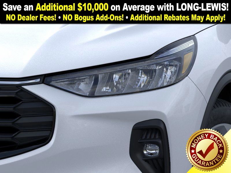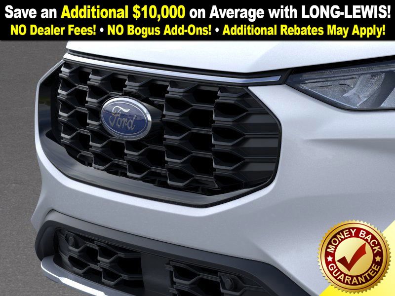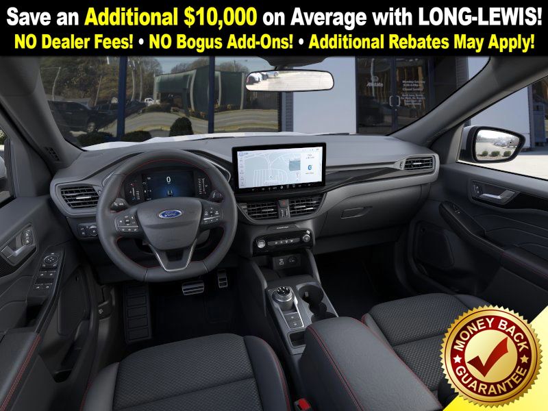 space silver metallic 2026 Ford Escape Hybrid ST-Line Select NFT AWD eCVT 2.5L iVCT 2.5L iVCT, 10-Way Power Driver's Seat w/Memory, 2.91 Axle Ratio, 4-Way Manual Front Passenger Seat, 4-Wheel Disc Brakes, 6 Speakers, 8-Way Power Driver Seat, ABS brakes, Adaptive Cruise Control with Stop-and-Go, Air Conditioning, Alloy wheels, AM/FM radio: SiriusXM 360L, Auto High-beam Headlights, Automatic temperature control, Brake assist, Bumpers: body-color, Compass, Connected Navigation (1-Year Included), Delay-off headlights, Digital Rear View Camera, Driver door bin, Driver vanity mirror, Dual front impact airbags, Dual front side impact airbags, Electronic Fuel Door Release, Electronic Stability Control, Emergency communication system: SYNC 4 911 Assist, Evasive Steering Assist, Ford App, Ford Co-Pilot360 Assist+, Four wheel independent suspension, Front anti-roll bar, Front Bucket Seats, Front Center Armrest, Front dual zone A/C, Front fog lights, Front License Plate Bracket, Front reading lights, Fully automatic headlights, Heated door mirrors, Heated front seats, Heated steering wheel, Illuminated entry, Intersection Assist, Knee airbag, Low tire pressure warning, Memory seat, Neutral Towing Capability, Occupant sensing airbag, Outside temperature display, Overhead airbag, Overhead console, Panic alarm, Partial Vinyl/Cloth Heated Front Sport Contour Bucket Seats with Red Stitching, Passenger door bin, Passenger vanity mirror, Pedestrian Alert Sounder, Power door mirrors, Power driver seat, Power Liftgate, Power steering, Power windows, Predictive Speed Assist, Radio data system, Radio: AM/FM Stereo with SiriusXM 360L, Rear anti-roll bar, Rear Parking Sensor, Rear reading lights, Rear seat center armrest, Rear window defroster, Rear window wiper, Remote keyless entry, Speed control, Speed-sensing steering, Speed-Sensitive Wipers, Split folding rear seat, Spoiler, Sport steering wheel, Steering wheel mounted audio controls, SYNC 4, SYNC 4 with Enhanced Voice Recognition, Tachometer, Tech Pack #1, Telescoping steering wheel, Tilt steering wheel, Traction control, Trip computer, Variably intermittent wipers, Wheels: 18" Rock Metallic Painted Aluminum, 2.5L iVCT.