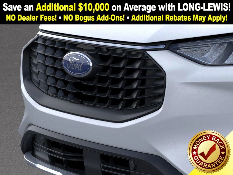 space silver metallic 2026 Ford Escape Active NFT FWD 8-Speed Automatic 1.5L EcoBoost 3.81 Axle Ratio, 4-Way Manual Front Passenger Seat, 4-Wheel Disc Brakes, 6 Speakers, 6-Way Manual Driver Seat, ABS brakes, Air Conditioning, Alloy wheels, AM/FM radio: SiriusXM 360L, Auto High-beam Headlights, Automatic temperature control, Brake assist, Bumpers: body-color, Compass, Delay-off headlights, Driver door bin, Driver vanity mirror, Dual front impact airbags, Dual front side impact airbags, Electronic Stability Control, Emergency communication system: SYNC 4 911 Assist, Ford App, Four wheel independent suspension, Front anti-roll bar, Front Bucket Seats, Front Center Armrest, Front dual zone A/C, Front License Plate Bracket, Front reading lights, Fully automatic headlights, Illuminated entry, Knee airbag, Low tire pressure warning, Occupant sensing airbag, Outside temperature display, Overhead airbag, Overhead console, Panic alarm, Passenger door bin, Passenger vanity mirror, Power door mirrors, Power Liftgate, Power steering, Power windows, Radio data system, Radio: AM/FM Stereo with SiriusXM 360L, Rear anti-roll bar, Rear reading lights, Rear seat center armrest, Rear window defroster, Rear window wiper, Remote keyless entry, Speed control, Speed-sensing steering, Speed-Sensitive Wipers, Split folding rear seat, Spoiler, Steering wheel mounted audio controls, SYNC 4, Tachometer, Telescoping steering wheel, Tilt steering wheel, Traction control, Trip computer, Unique Cloth Front Bucket Seats, Variably intermittent wipers, Wheels: 17" Shadow Silver-Painted Aluminum.