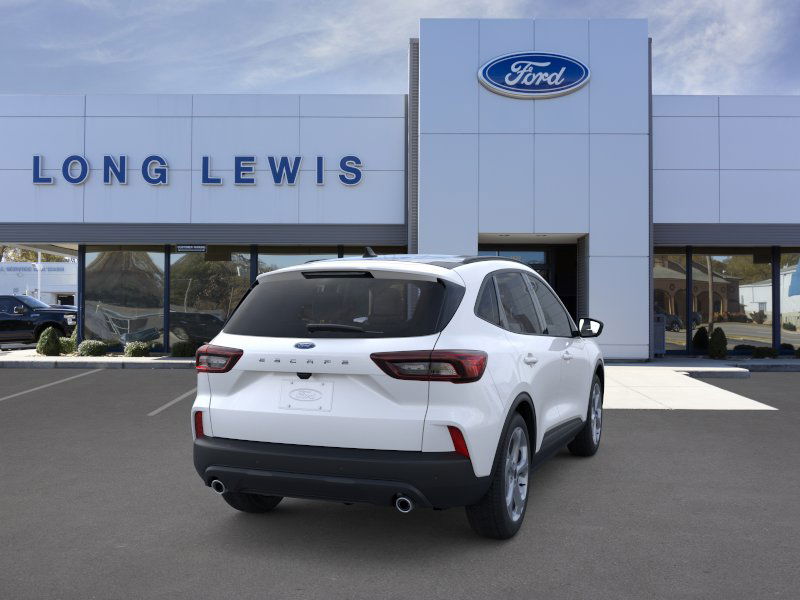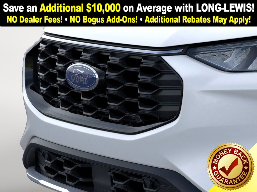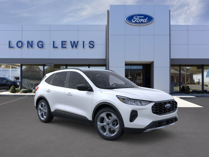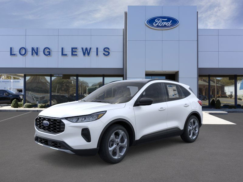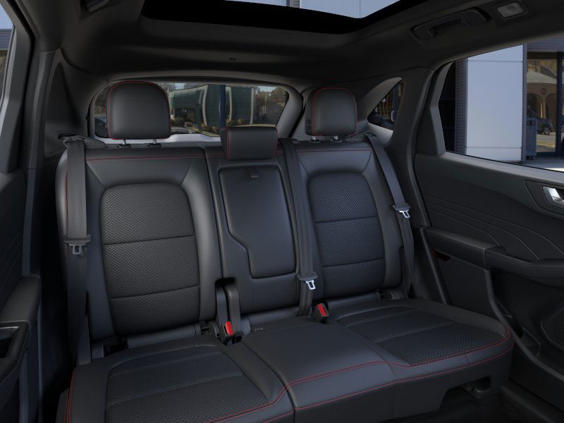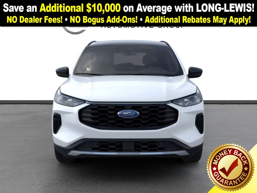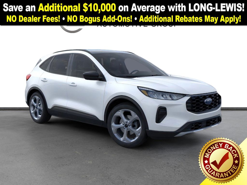 star white metallic tri-coat 2026 Ford Escape ST-Line NFT FWD 8-Speed Automatic 1.5L EcoBoost 3.81 Axle Ratio, 4-Way Manual Front Passenger Seat, 4-Wheel Disc Brakes, 6 Speakers, 8-Way Power Driver Seat, ABS brakes, Air Conditioning, Alloy wheels, AM/FM radio: SiriusXM 360L, Auto High-beam Headlights, Automatic temperature control, Brake assist, Bumpers: body-color, Compass, Delay-off headlights, Driver door bin, Driver vanity mirror, Dual front impact airbags, Dual front side impact airbags, Electronic Stability Control, Emergency communication system: SYNC 4 911 Assist, Ford App, Four wheel independent suspension, Front anti-roll bar, Front Bucket Seats, Front Center Armrest, Front dual zone A/C, Front reading lights, Fully automatic headlights, Heated steering wheel, Illuminated entry, Knee airbag, Low tire pressure warning, Occupant sensing airbag, Outside temperature display, Overhead airbag, Overhead console, Panic alarm, Partial Vinyl/Cloth Front Sport Contour Bucket Seats with Red Stitching, Passenger door bin, Passenger vanity mirror, Power door mirrors, Power driver seat, Power steering, Power windows, Radio data system, Radio: AM/FM Stereo with SiriusXM 360L, Rear anti-roll bar, Rear reading lights, Rear seat center armrest, Rear window defroster, Rear window wiper, Remote keyless entry, Speed control, Speed-sensing steering, Speed-Sensitive Wipers, Split folding rear seat, Spoiler, Sport steering wheel, Steering wheel mounted audio controls, SYNC 4, Tachometer, Telescoping steering wheel, Tilt steering wheel, Traction control, Trip computer, Variably intermittent wipers, Wheels: 18" Rock Metallic Painted Aluminum.