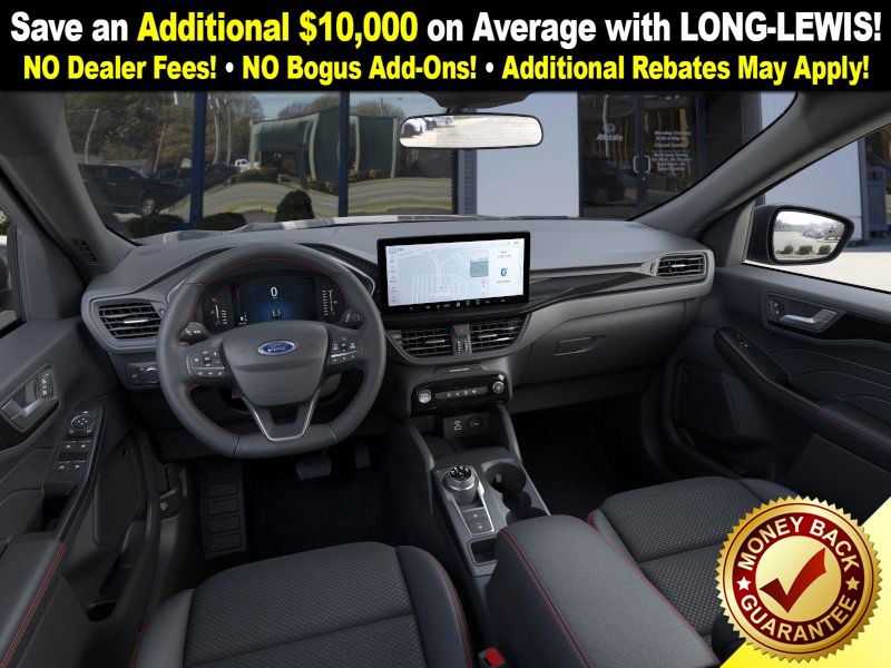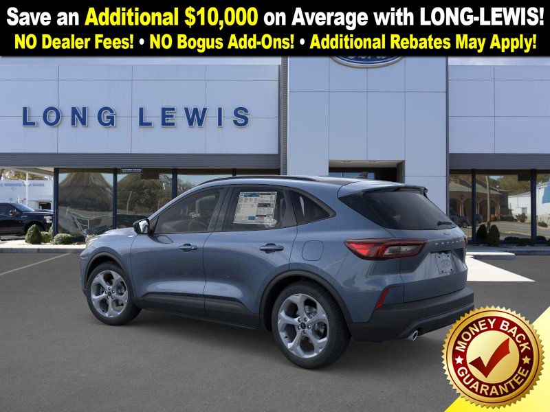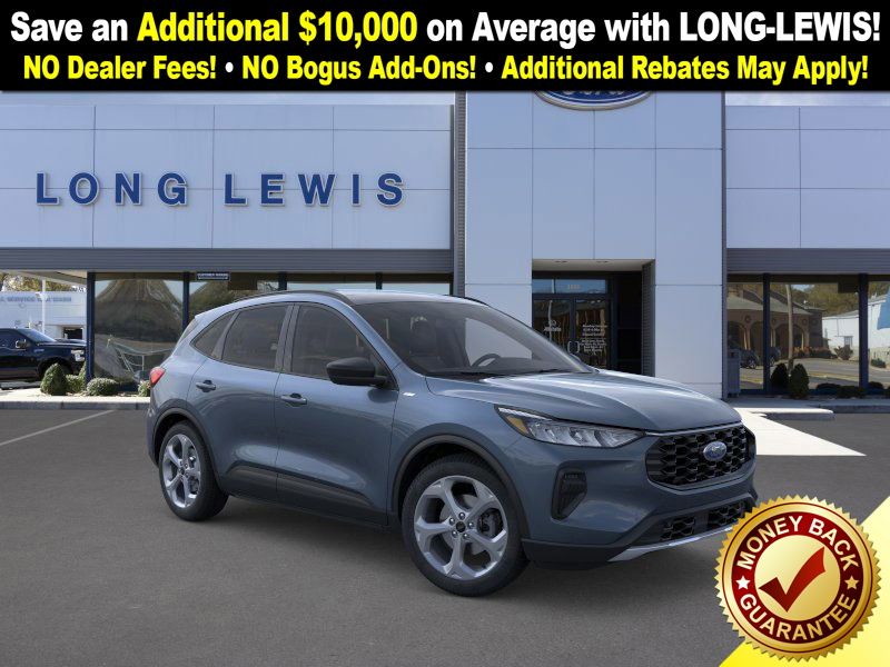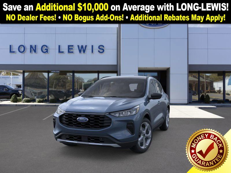 vapor blue metallic 2026 Ford Escape ST-Line NFT FWD 8-Speed Automatic 1.5L EcoBoost 3.81 Axle Ratio, 4-Way Manual Front Passenger Seat, 4-Wheel Disc Brakes, 6 Speakers, 8-Way Power Driver Seat, ABS brakes, Adaptive Cruise Control with Stop-and-Go, Air Conditioning, Alloy wheels, AM/FM radio: SiriusXM 360L, Auto High-beam Headlights, Automatic temperature control, Black Roof-Rack Side Rails, Brake assist, Bumpers: body-color, Cold Weather Package, Compass, Connected Navigation (1-Year Included), Delay-off headlights, Digital Rear View Camera, Driver door bin, Driver vanity mirror, Dual front impact airbags, Dual front side impact airbags, Electronic Stability Control, Emergency communication system: SYNC 4 911 Assist, Evasive Steering Assist, Ford App, Ford Co-Pilot360 Assist+, Four wheel independent suspension, Front anti-roll bar, Front Bucket Seats, Front Center Armrest, Front dual zone A/C, Front License Plate Bracket, Front reading lights, Fully automatic headlights, Heated Front Row Seats, Heated Sideview Mirrors, Heated Steering Wheel, Heated steering wheel, Illuminated entry, Intersection Assist, Knee airbag, Low tire pressure warning, Occupant sensing airbag, Outside temperature display, Overhead airbag, Overhead console, Panic alarm, Panoramic Vista Roof, Partial Vinyl/Cloth Front Sport Contour Bucket Seats with Red Stitching, Passenger door bin, Passenger vanity mirror, Power door mirrors, Power driver seat, Power Liftgate, Power steering, Power windows, Predictive Speed Assist, Radio data system, Radio: AM/FM Stereo with SiriusXM 360L, Rear anti-roll bar, Rear Parking Sensor, Rear reading lights, Rear seat center armrest, Rear window defroster, Rear window wiper, Remote keyless entry, Remote Starter System, Speed control, Speed-sensing steering, Speed-Sensitive Wipers, Split folding rear seat, Spoiler, Sport steering wheel, Steering wheel mounted audio controls, SYNC 4, SYNC 4 with Enhanced Voice Recognition, Tachometer, Tech Pack #1, Telescoping steering wheel, Tilt steering wheel, Traction control, Trip computer, Variably intermittent wipers, Wheels: 18" Rock Metallic Painted Aluminum.
