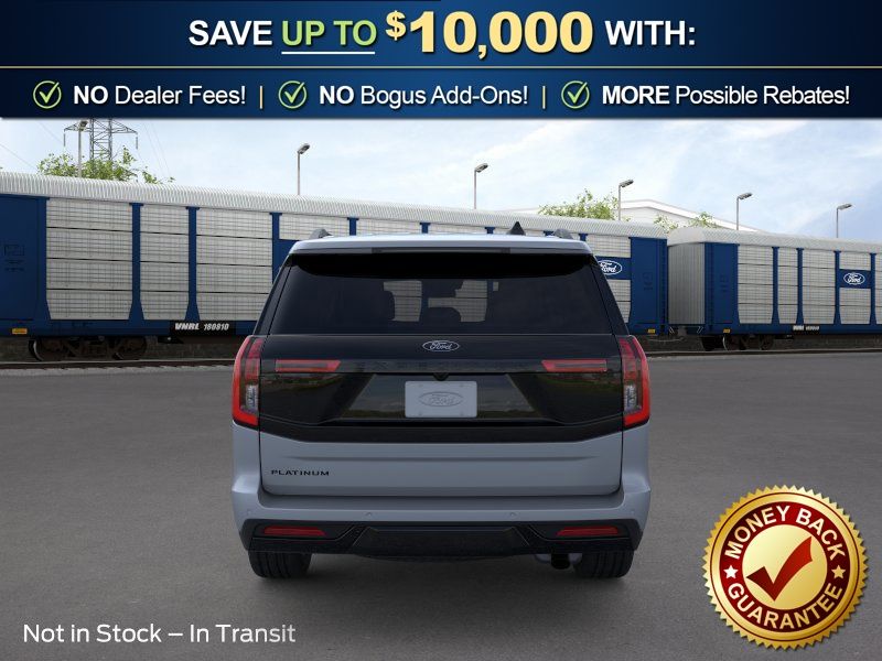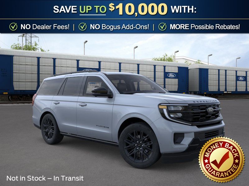Dealer Discount of $3,136 off MSRP Glacier Gray Metallic Tri-Coat 2026 Ford Expedition Platinum NFC 4WD 10-Speed Automatic EcoBoost 3.5L V6 GTDi DOHC 24V Twin Turbocharged 4WD, 10 Speakers, 2nd Row Power-Folding Captain's Chairs, 3.73 Axle Ratio, 3rd row seats: split-bench, 4-Wheel Disc Brakes, ABS brakes, Air Conditioning, Alloy wheels, AM/FM radio: SiriusXM with 360L, Apple CarPlay/Android Auto, Auto High-beam Headlights, Auto-dimming door mirrors, Auto-dimming Rear-View mirror, Automatic temperature control, Brake assist, Bumpers: body-color, Compass, Delay-off headlights, Driver door bin, Driver vanity mirror, Dual front impact airbags, Dual front side impact airbags, Electronic Stability Control, Emergency communication system: 911 Assist, Exterior Parking Camera Rear, Ford Connectivity Package (1-Year Included), Ford Digital Experience, Four wheel independent suspension, Front anti-roll bar, Front Bucket Seats, Front Center Armrest, Front dual zone A/C, Front reading lights, Fully automatic headlights, Garage door transmitter, Genuine wood dashboard insert, Genuine wood door panel insert, Heated and Ventilated Leather Front Captain's Chairs, Heated door mirrors, Heated front seats, Heated rear seats, Heated steering wheel, Illuminated entry, Leather steering wheel, Low tire pressure warning, Memory seat, Navigation System, Occupant sensing airbag, Outside temperature display, Overhead airbag, Overhead console, Panic alarm, Passenger door bin, Passenger vanity mirror, Power door mirrors, Power driver seat, Power moonroof: Vista Roof, Power passenger seat, Power steering, Power windows, Radio data system, Radio: B&O Sound System by Bang and Olufsen, Rain sensing wipers, Rear air conditioning, Rear anti-roll bar, Rear reading lights, Rear window defroster, Rear window wiper, Reclining 3rd row seat, Remote keyless entry, Security system, SiriusXM with 360L, Speed control, Speed-sensing steering, Speed-Sensitive Wipers, Split folding rear seat, Spoiler, Steering wheel memory, Steering wheel mounted audio controls, Tachometer, Telescoping steering wheel, Tilt steering wheel, Traction control, Trip computer, Turn signal indicator mirrors, Variably intermittent wipers, Ventilated front seats, Voltmeter, Wheels: 20" x 8.5" Ebony Bright Machined Aluminum, 4WD.