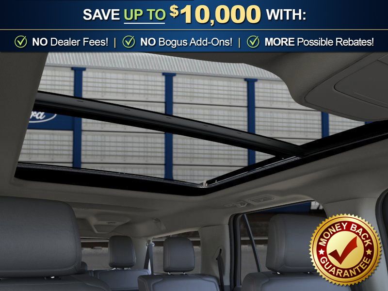 Ford Connectivity Package (1-Year Included), 3.31 Axle Ratio, 3rd row seats: split-bench, 4-Wheel Disc Brakes, 6 Speakers, ABS brakes, ActiveX-Trimmed Front Heated Captain's Chairs, Air Conditioning, Alloy wheels, AM/FM radio: SiriusXM with 360L, Apple CarPlay/Android Auto, Auto High-beam Headlights, Auto-dimming Rear-View mirror, Automatic temperature control, BlueCruise (equipment + 1-Year + 90-Day Plan), Brake assist, Bumpers: body-color, Cloth Front Captain's Chairs, Compass, Delay-off headlights, Driver door bin, Driver vanity mirror, Dual front impact airbags, Dual front side impact airbags, Electronic Stability Control, Emergency communication system: 911 Assist, Exterior Parking Camera Rear, Ford Digital Experience, Four wheel independent suspension, Front anti-roll bar, Front Bucket Seats, Front Center Armrest, Front dual zone A/C, Front reading lights, Fully automatic headlights, Heated door mirrors, Illuminated entry, Low tire pressure warning, Navigation System, Occupant sensing airbag, Outside temperature display, Overhead airbag, Overhead console, Panic alarm, Passenger door bin, Passenger vanity mirror, Power door mirrors, Power driver seat, Power Panoramic Vista Roof with Power Sunshade, Power passenger seat, Power steering, Power windows, Radio data system, Radio: AM/FM Stereo with MP3 Capable, Rear air conditioning, Rear anti-roll bar, Rear reading lights, Rear window defroster, Rear window wiper, Reclining 3rd row seat, Remote keyless entry, Security system, SiriusXM with 360L, Speed control, Speed-sensing steering, Speed-Sensitive Wipers, Split folding rear seat, Spoiler, Steering wheel mounted audio controls, Tachometer, Telescoping steering wheel, Tilt steering wheel, Traction control, Trip computer, Variably intermittent wipers, Voltmeter, and Wheels: 18" x 8.5" Dark Alloy Painted Aluminum.