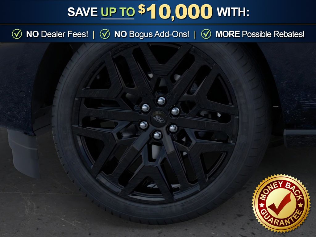 Ford Connectivity Package (1-Year Included), 10 Speakers, 2nd Row Power-Folding Captain's Chairs, 3.73 Axle Ratio, 3rd row seats: split-bench, 4-Wheel Disc Brakes, ABS brakes, Air Conditioning, Alloy wheels, AM/FM radio: SiriusXM with 360L, Apple CarPlay/Android Auto, Auto High-beam Headlights, Auto-dimming door mirrors, Auto-dimming Rear-View mirror, Automatic temperature control, Brake assist, Bumpers: body-color, Compass, Delay-off headlights, Driver door bin, Driver vanity mirror, Dual front impact airbags, Dual front side impact airbags, Electronic Stability Control, Emergency communication system: 911 Assist, Exterior Parking Camera Rear, Ford Digital Experience, Four wheel independent suspension, Front anti-roll bar, Front Bucket Seats, Front Center Armrest, Front dual zone A/C, Front reading lights, Fully automatic headlights, Garage door transmitter, Genuine wood dashboard insert, Genuine wood door panel insert, Heated and Ventilated Leather Front Captain's Chairs, Heated door mirrors, Heated front seats, Heated rear seats, Heated steering wheel, Illuminated entry, Leather steering wheel, Low tire pressure warning, Memory seat, Navigation System, Occupant sensing airbag, Outside temperature display, Overhead airbag, Overhead console, Panic alarm, Passenger door bin, Passenger vanity mirror, Power door mirrors, Power driver seat, Power moonroof: Vista Roof, Power passenger seat, Power steering, Power windows, Radio data system, Radio: B&O Sound System by Bang and Olufsen, Rain sensing wipers, Rear air conditioning, Rear anti-roll bar, Rear reading lights, Rear window defroster, Rear window wiper, Reclining 3rd row seat, Remote keyless entry, Security system, SiriusXM with 360L, Speed control, Speed-sensing steering, Speed-Sensitive Wipers, Split folding rear seat, Spoiler, Steering wheel memory, Steering wheel mounted audio controls, Tachometer, Telescoping steering wheel, Tilt steering wheel, Traction control, Trip computer, Turn signal indicator mirrors, Variably intermittent wipers, Ventilated front seats, Voltmeter, and Wheels: 20" x 8.5" Ebony Bright Machined Aluminum.