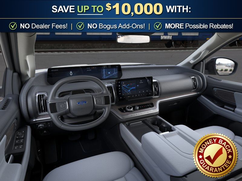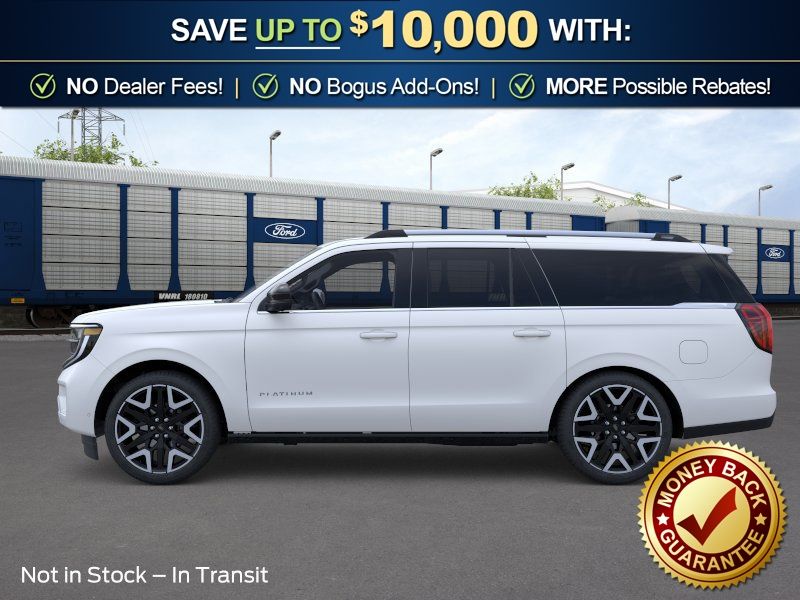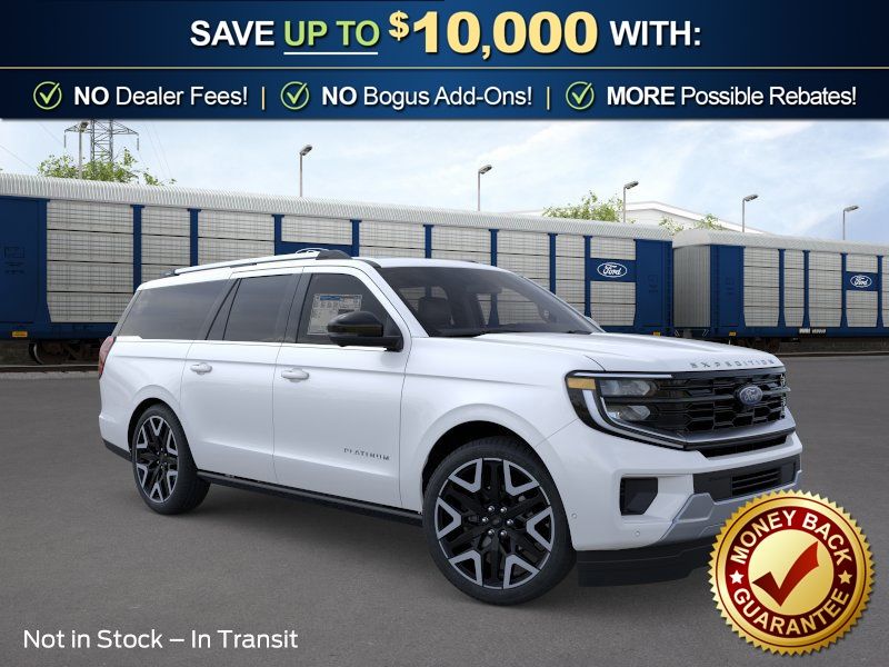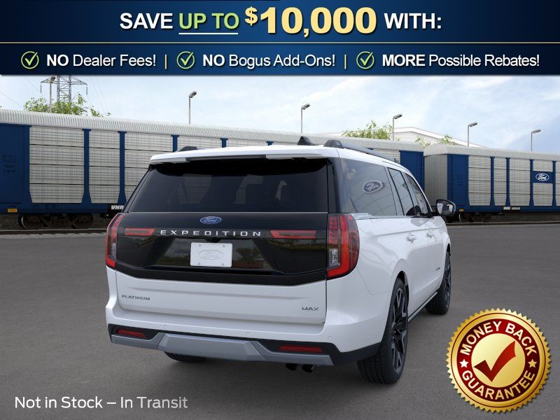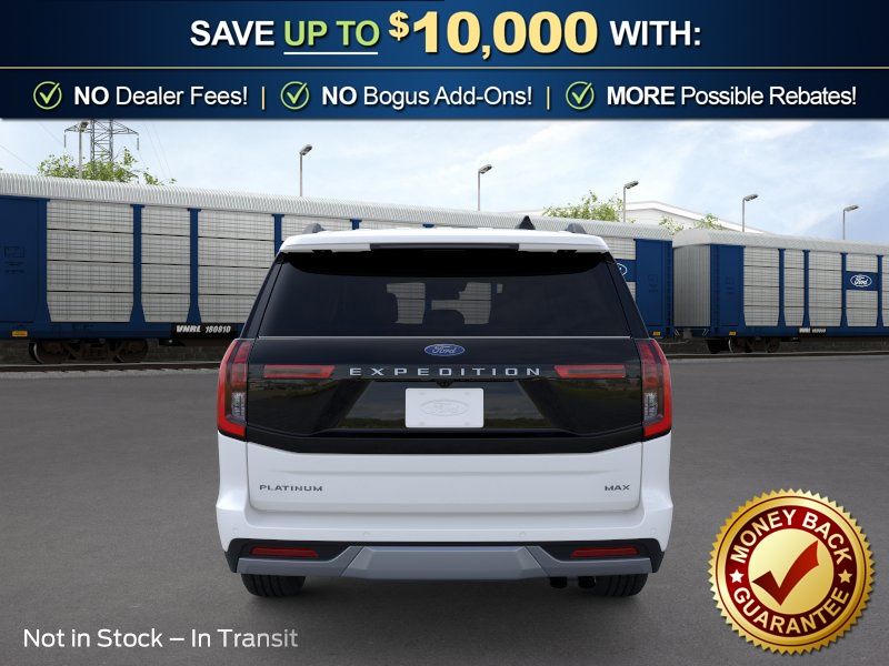 Dealer Discount of $3,885 off MSRP Star White Metallic Tri-Coat 2026 Ford Expedition Max Platinum NFT 4WD 10-Speed Automatic 3.5L V6 EcoBoost High Output 10 Speakers, 2nd Row Power-Folding Captain's Chairs, 3.73 Axle Ratio, 3rd row seats: split-bench, 4-Wheel Disc Brakes, ABS brakes, Air Conditioning, Alloy wheels, AM/FM radio: SiriusXM with 360L, Apple CarPlay/Android Auto, Auto High-beam Headlights, Auto-dimming door mirrors, Auto-dimming Rear-View mirror, Automatic temperature control, Black Headlamp Bezel with Satin Trim Applique, Black Onyx Painted Power Deployable Running Boards, BlueCruise (equipment + 1-Year + 90-Day Plan), Brake assist, Bumpers: body-color, Carbon Black Front Bumper with Lit Grille Bar, Chrome Roof Rails with Black End Caps, Compass, Delay-off headlights, Driver door bin, Driver vanity mirror, Driver's Package, Dual front impact airbags, Dual front side impact airbags, Electronic Stability Control, Emergency communication system: 911 Assist, Engine Sound Enhancer, Exterior Parking Camera Rear, Ford Connectivity Package (1-Year Included), Ford Digital Experience, Four wheel independent suspension, Front anti-roll bar, Front Bucket Seats, Front Center Armrest, Front Door Scuff Plates with Met Insert and Bright Rear, Front dual zone A/C, Front License Plate Bracket, Front reading lights, Fully automatic headlights, Garage door transmitter, Genuine wood dashboard insert, Genuine wood door panel insert, Heated and Ventilated Leather Front Captain's Chairs, Heated door mirrors, Heated front seats, Heated rear seats, Heated steering wheel, High Flow Exhaust System, Illuminated entry, Intersection Assist, Leather steering wheel, Low tire pressure warning, Memory seat, Multicontour Active Motion Lthr Frnt Captains Chairs, Navigation System, Occupant sensing airbag, Outside temperature display, Overhead airbag, Overhead console, Panic alarm, Passenger door bin, Passenger vanity mirror, Platinum Ultimate Interior Package, Platinum Ultimate Package, Polished Stainless Steel Beltline Molding, Power door mirrors, Power driver seat, Power moonroof: Vista Roof, Power passenger seat, Power steering, Power windows, Radio data system, Radio: B&O Play Unleashed, Radio: B&O Sound System by Bang and Olufsen, Rain sensing wipers, Rear air conditioning, Rear anti-roll bar, Rear reading lights, Rear Seat Radio Controls, Rear Side Windows Laminated Glass, Rear window defroster, Rear window wiper, Reclining 3rd row seat, Remote keyless entry, Satin Aluminum Expedition Lettering on Side and Hood, Satin Aluminum Platinum Badge on Tailgate, Security system, Signature Grille Lighting, SiriusXM with 360L, Speed control, Speed-sensing steering, Speed-Sensitive Wipers, Split folding rear seat, Spoiler, Steering wheel memory, Steering wheel mounted audio controls, Tachometer, Telescoping steering wheel, Tilt steering wheel, Traction control, Trip computer, Turn signal indicator mirrors, Variably intermittent wipers, Ventilated front seats, Voltmeter, Wheels: 20" x 8.5" Ebony Bright Machined Aluminum, Wheels: 22" x 9.0" Ebony Bright Machined Face Aluminum, Wheels: 24" x 9.5" Tarnished Dark Metallic.