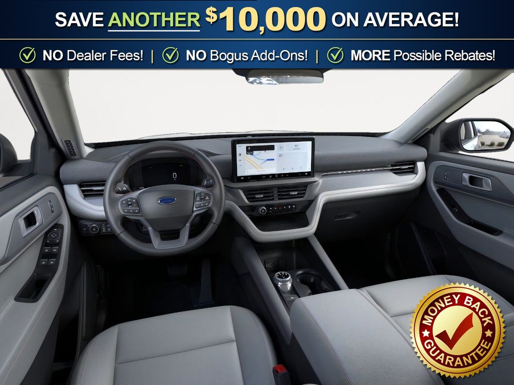 Star White Metallic Tri-Coat 2026 Ford Explorer Active FCT RWD 10-Speed Automatic 2.3L EcoBoost I-4 2nd Row 35/30/35 Bench with E-Z Entry and Armrest, 3rd row seats: bench, 4-Wheel Disc Brakes, 6 Speakers, ABS brakes, Air Conditioning, Alloy wheels, AM/FM radio: SiriusXM with 360L, AM/FM Stereo, Apple CarPlay/Android Auto, Auto High-beam Headlights, Automatic temperature control, Brake assist, Bumpers: body-color, Compass, Delay-off headlights, Driver door bin, Driver vanity mirror, Dual front impact airbags, Dual front side impact airbags, Electronic Stability Control, Emergency communication system: 911 Assist, Exterior Parking Camera Rear, Four wheel independent suspension, Front anti-roll bar, Front Bucket Seats, Front Center Armrest, Front dual zone A/C, Front License Plate Bracket, Front reading lights, Fully automatic headlights, Heated door mirrors, Illuminated entry, Knee airbag, Low tire pressure warning, Navigation System, Occupant sensing airbag, Outside temperature display, Overhead airbag, Overhead console, Panic alarm, Passenger door bin, Passenger vanity mirror, Power door mirrors, Power driver seat, Power steering, Power windows, Rear air conditioning, Rear anti-roll bar, Rear reading lights, Rear window defroster, Rear window wiper, Remote keyless entry, Security system, Speed control, Speed-sensing steering, Speed-Sensitive Wipers, Split folding rear seat, Spoiler, Steering wheel mounted audio controls, Tachometer, Telescoping steering wheel, Tilt steering wheel, Traction control, Trip computer, Variably intermittent wipers, Wheels: 18" Sparkle Silver-Painted Aluminum.