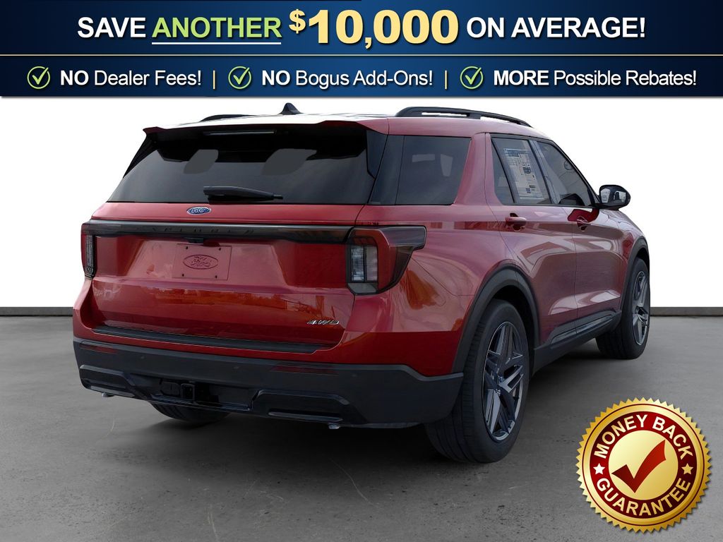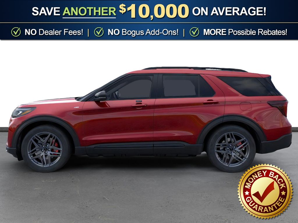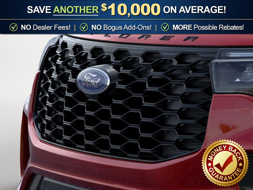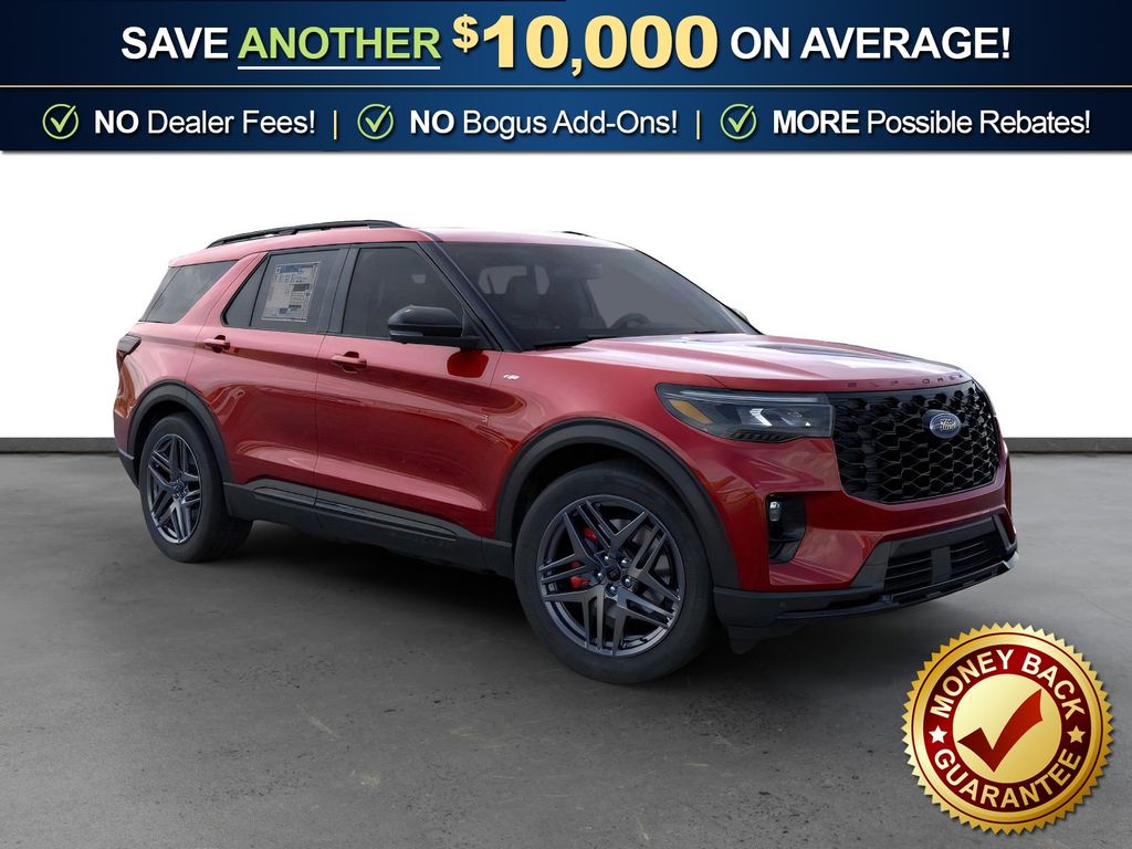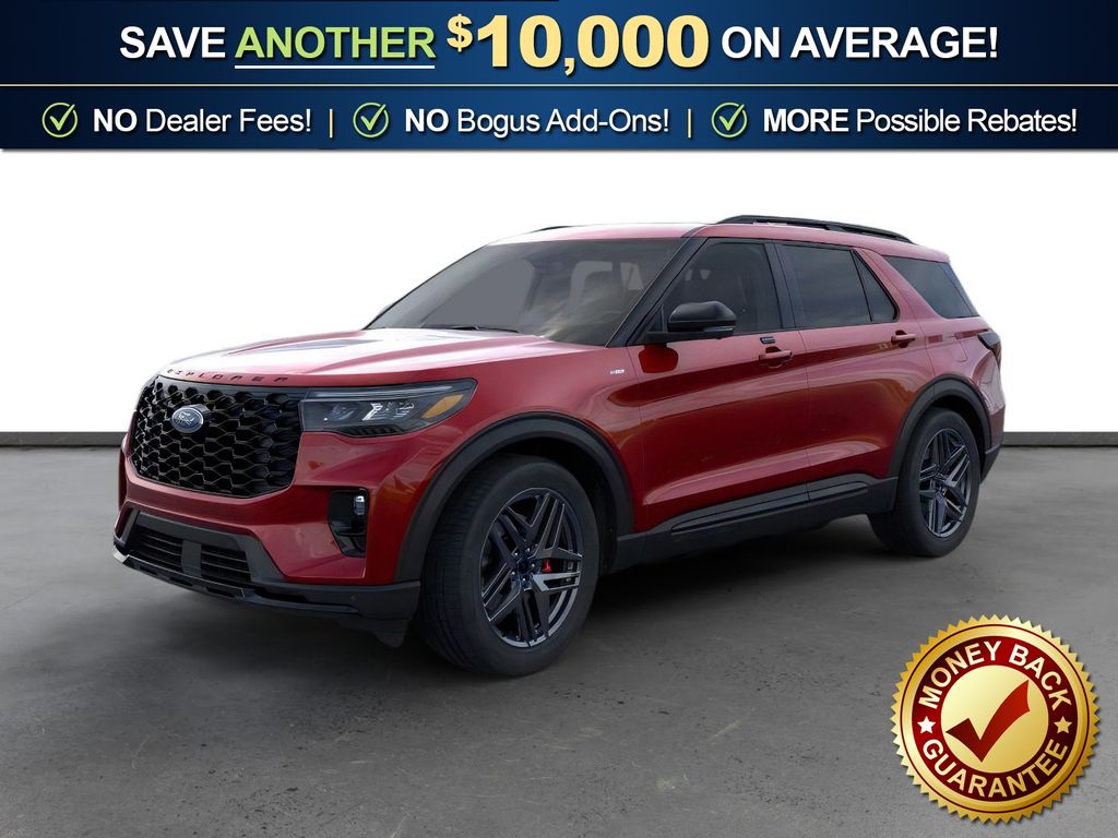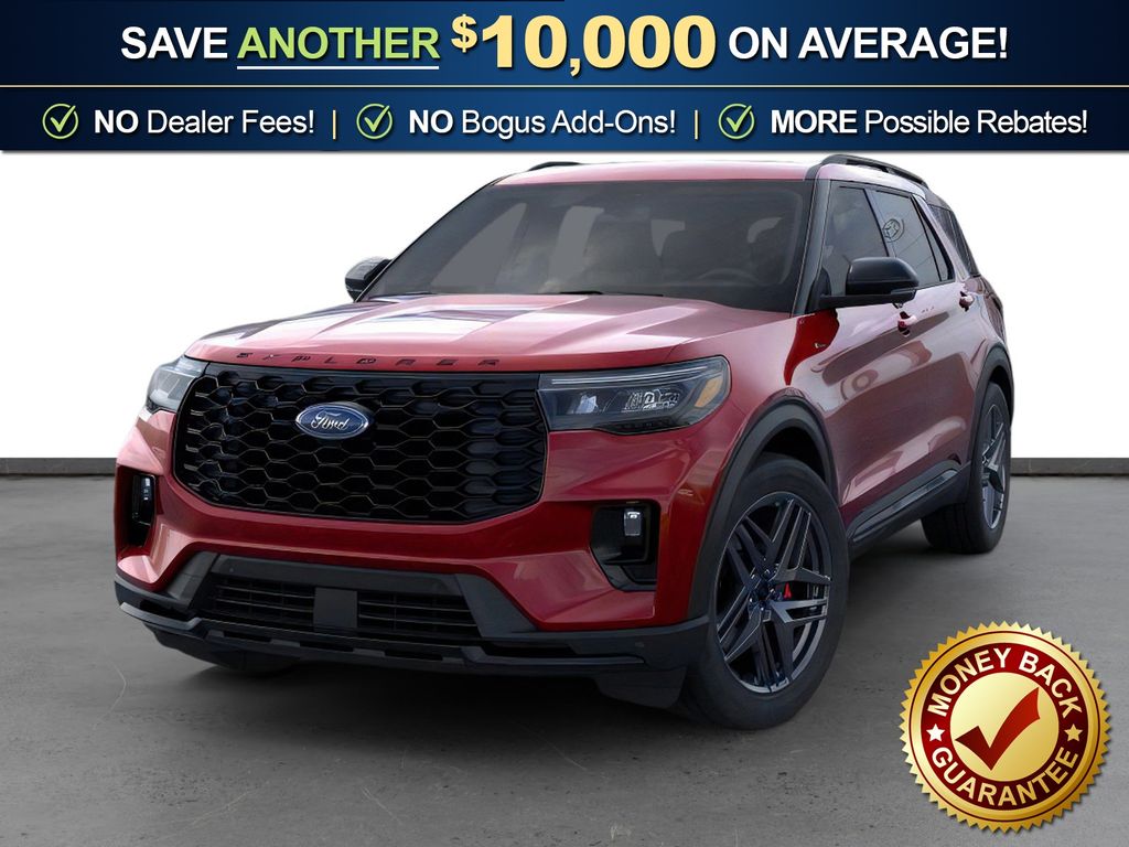 Rapid Red Metallic Tinted Clearcoat 2026 Ford Explorer ST-Line NFT 4WD 10-Speed Automatic 2.3L EcoBoost I-4 4WD, 10 Speakers, 110V/150W AC Power Outlet, 2nd Row Captain's Chairs w/E-Z Entry and Armrest, 2nd Row Heated Seats, 3rd row seats: bench, 4-Wheel Disc Brakes, ABS brakes, Air Conditioning, Alloy wheels, AM/FM radio: SiriusXM with 360L, Ambient Lighting, Apple CarPlay/Android Auto, Auto High-beam Headlights, Auto-Dimming Interior Rear-View Mirror, Automatic temperature control, BlueCruise (equipment + 1-Year + 90-Day Plan), BlueCruise Hardware, Brake assist, Bumpers: body-color, Compass, Delay-off headlights, Driver door bin, Driver vanity mirror, Dual front impact airbags, Dual front side impact airbags, Electronic Stability Control, Emergency communication system: 911 Assist, Exterior Parking Camera Rear, Four wheel independent suspension, Front anti-roll bar, Front Bucket Seats, Front Center Armrest, Front dual zone A/C, Front fog lights, Front License Plate Bracket, Front reading lights, Fully automatic headlights, Garage door transmitter, Heated door mirrors, Heated front seats, Heated steering wheel, Heated Unique Cloth Captain's Chairs, Illuminated entry, Knee airbag, Leather steering wheel, Low tire pressure warning, Manual-Folding Sideview Mirrors, Memory Driver's Seat, Navigation System, Occupant sensing airbag, Outside temperature display, Overhead airbag, Overhead console, Panic alarm, Panoramic Fixed Glass Roof with Power Shade, Passenger door bin, Passenger vanity mirror, Performance Brakes, Power door mirrors, Power driver seat, Power Liftgate, Power passenger seat, Power steering, Power windows, Premium Package, Radio: B&O Sound System by Bang and Olufsen, Rain-Sensing Wipers (front Only), Rear air conditioning, Rear anti-roll bar, Rear reading lights, Rear window defroster, Rear window wiper, Red Painted Performance Front and Rear Brake Calipers, Remote keyless entry, SecuriCode Keyless Entry Keypad, Security system, Speed control, Speed-sensing steering, Speed-Sensitive Wipers, Split folding rear seat, Spoiler, ST-Line Street Pack, Steering wheel mounted audio controls, Tachometer, Telescoping steering wheel, Tilt steering wheel, Traction control, Trip computer, Variably intermittent wipers, Wheels: 20" Ebony-Painted Machined Aluminum, Wheels: 21" Magnetite-Painted Aluminum, 4WD.