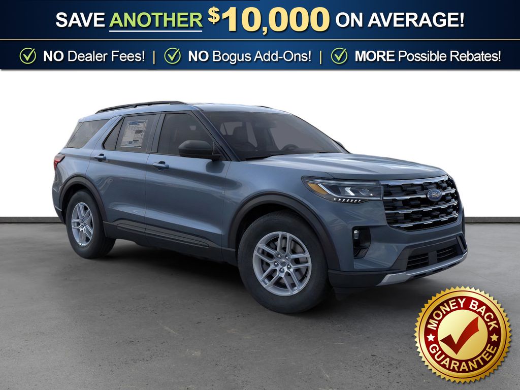 Vapor Blue Metallic 2026 Ford Explorer Active FCT RWD 10-Speed Automatic 2.3L EcoBoost I-4 3rd row seats: bench, 4-Wheel Disc Brakes, 6 Speakers, ABS brakes, Air Conditioning, Alloy wheels, AM/FM radio: SiriusXM with 360L, AM/FM Stereo, Apple CarPlay/Android Auto, Auto High-beam Headlights, Automatic temperature control, Brake assist, Bumpers: body-color, Compass, Delay-off headlights, Driver door bin, Driver vanity mirror, Dual front impact airbags, Dual front side impact airbags, Electronic Stability Control, Emergency communication system: 911 Assist, Exterior Parking Camera Rear, Four wheel independent suspension, Front anti-roll bar, Front Bucket Seats, Front Center Armrest, Front dual zone A/C, Front License Plate Bracket, Front reading lights, Fully automatic headlights, Heated door mirrors, Illuminated entry, Knee airbag, Low tire pressure warning, Navigation System, Occupant sensing airbag, Outside temperature display, Overhead airbag, Overhead console, Panic alarm, Passenger door bin, Passenger vanity mirror, Power door mirrors, Power driver seat, Power steering, Power windows, Rear air conditioning, Rear anti-roll bar, Rear reading lights, Rear window defroster, Rear window wiper, Remote keyless entry, Security system, Speed control, Speed-sensing steering, Speed-Sensitive Wipers, Split folding rear seat, Spoiler, Steering wheel mounted audio controls, Tachometer, Telescoping steering wheel, Tilt steering wheel, Traction control, Trip computer, Variably intermittent wipers, Wheels: 18" Sparkle Silver-Painted Aluminum.