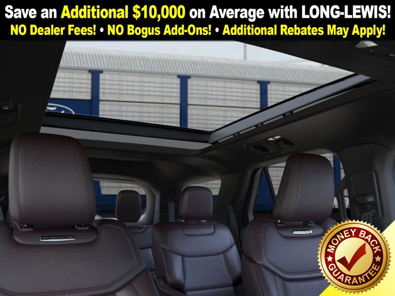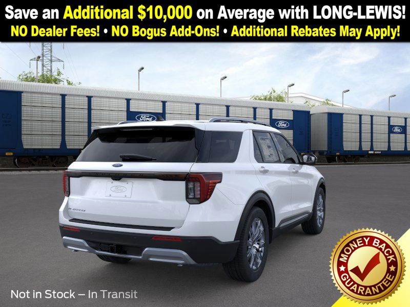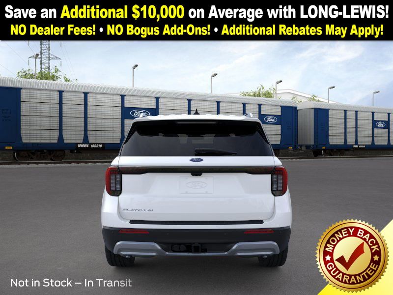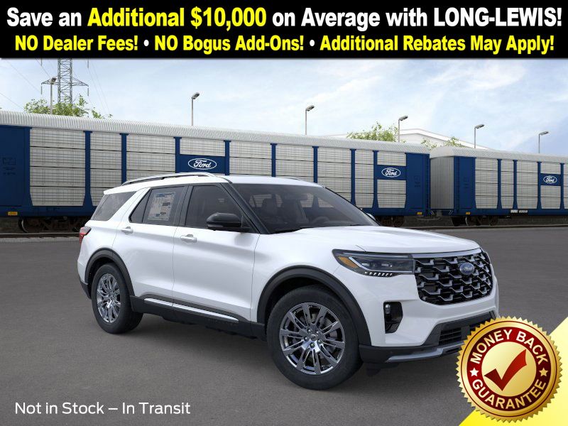 Star White Metallic Tri-Coat 2026 Ford Explorer Platinum NFT RWD 10-Speed Automatic 2.3L EcoBoost I-4 14 Speakers, 3rd row seats: bench, 4-Wheel Disc Brakes, ABS brakes, ActiveX Trimmed Captain's Chairs, Air Conditioning, Alloy wheels, AM/FM radio: SiriusXM with 360L, Apple CarPlay/Android Auto, Auto High-beam Headlights, Auto-dimming door mirrors, Auto-dimming Rear-View mirror, Automatic temperature control, Brake assist, Bumpers: body-color, Compass, Delay-off headlights, Driver door bin, Driver vanity mirror, Dual front impact airbags, Dual front side impact airbags, Electronic Stability Control, Emergency communication system: 911 Assist, Exterior Parking Camera Rear, Four wheel independent suspension, Front anti-roll bar, Front Bucket Seats, Front Center Armrest, Front dual zone A/C, Front fog lights, Front License Plate Bracket, Front reading lights, Fully automatic headlights, Garage door transmitter, Heated door mirrors, Heated front seats, Heated rear seats, Heated steering wheel, Illuminated entry, Internet access capable: FordPass Connect 5G, Knee airbag, Leather steering wheel, Low tire pressure warning, Memory seat, Navigation System, Occupant sensing airbag, Outside temperature display, Overhead airbag, Overhead console, Panic alarm, Panoramic Fixed Glass Roof with Power Shade, Passenger door bin, Passenger vanity mirror, Power door mirrors, Power driver seat, Power Liftgate, Power passenger seat, Power steering, Power windows, Radio data system, Radio: B&O Sound System by Bang & Olufsen with HD, Rain sensing wipers, Rear air conditioning, Rear anti-roll bar, Rear reading lights, Rear window defroster, Rear window wiper, Remote keyless entry, SecuriCode Keyless Entry Keypad, Security system, Speed control, Speed-sensing steering, Speed-Sensitive Wipers, Split folding rear seat, Spoiler, Steering wheel mounted audio controls, Tachometer, Telescoping steering wheel, Tilt steering wheel, Traction control, Trip computer, Turn signal indicator mirrors, Variably intermittent wipers, Ventilated front seats, Wheels: 20" Luster Nickel-Painted Aluminum.