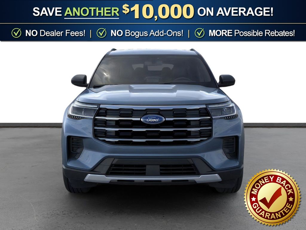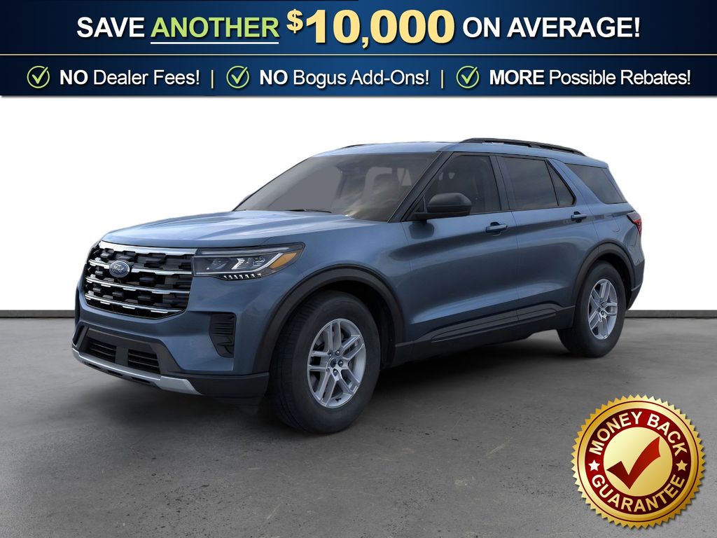 Vapor Blue Metallic 2026 Ford Explorer Active NFT RWD 10-Speed Automatic 2.3L EcoBoost I-4 2nd Row 35/30/35 Bench with E-Z Entry and Armrest, 3rd row seats: bench, 4-Wheel Disc Brakes, 6 Speakers, ABS brakes, Air Conditioning, Alloy wheels, AM/FM radio: SiriusXM with 360L, AM/FM Stereo, Apple CarPlay/Android Auto, Auto High-beam Headlights, Automatic temperature control, Brake assist, Bumpers: body-color, Compass, Delay-off headlights, Driver door bin, Driver vanity mirror, Dual front impact airbags, Dual front side impact airbags, Electronic Stability Control, Emergency communication system: 911 Assist, Exterior Parking Camera Rear, Four wheel independent suspension, Front anti-roll bar, Front Bucket Seats, Front Center Armrest, Front dual zone A/C, Front License Plate Bracket, Front reading lights, Fully automatic headlights, Heated door mirrors, Illuminated entry, Knee airbag, Low tire pressure warning, Navigation System, Occupant sensing airbag, Outside temperature display, Overhead airbag, Overhead console, Panic alarm, Passenger door bin, Passenger vanity mirror, Power door mirrors, Power driver seat, Power steering, Power windows, Rear air conditioning, Rear anti-roll bar, Rear reading lights, Rear window defroster, Rear window wiper, Remote keyless entry, Security system, Speed control, Speed-sensing steering, Speed-Sensitive Wipers, Split folding rear seat, Spoiler, Steering wheel mounted audio controls, Tachometer, Telescoping steering wheel, Tilt steering wheel, Traction control, Trip computer, Variably intermittent wipers, Wheels: 18" Sparkle Silver-Painted Aluminum.