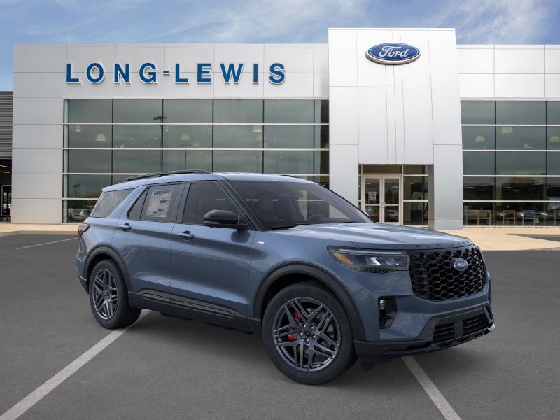 2026 Ford Explorer ST-Line FCT Vapor Blue Metallic ST-Line FCT RWD 10-Speed Automatic 2.3L EcoBoost I-4 10 Speakers, 110V/150W AC Power Outlet, 2nd Row Captain's Chairs w/E-Z Entry and Armrest, 2nd Row Heated Seats, 3rd row seats: bench, 4-Wheel Disc Brakes, ABS brakes, Air Conditioning, Alloy wheels, AM/FM radio: SiriusXM with 360L, Ambient Lighting, Apple CarPlay/Android Auto, Auto High-beam Headlights, Auto-Dimming Interior Rear-View Mirror, Automatic temperature control, BlueCruise (equipment + 1-Year + 90-Day Plan), BlueCruise Hardware, Brake assist, Bumpers: body-color, Compass, Delay-off headlights, Driver door bin, Driver vanity mirror, Dual front impact airbags, Dual front side impact airbags, Electronic Stability Control, Emergency communication system: 911 Assist, Exterior Parking Camera Rear, Four wheel independent suspension, Front anti-roll bar, Front Bucket Seats, Front Center Armrest, Front dual zone A/C, Front fog lights, Front reading lights, Fully automatic headlights, Garage door transmitter, Heated door mirrors, Heated front seats, Heated steering wheel, Heated Unique Cloth Captain's Chairs, Illuminated entry, Knee airbag, Leather steering wheel, Low tire pressure warning, Manual-Folding Sideview Mirrors, Memory Driver's Seat, Navigation System, Occupant sensing airbag, Outside temperature display, Overhead airbag, Overhead console, Panic alarm, Passenger door bin, Passenger vanity mirror, Performance Brakes, Power door mirrors, Power driver seat, Power Liftgate, Power passenger seat, Power steering, Power windows, Premium Package, Radio: B&O Sound System by Bang and Olufsen, Rain-Sensing Wipers (front Only), Rear air conditioning, Rear anti-roll bar, Rear reading lights, Rear window defroster, Rear window wiper, Red Painted Performance Front and Rear Brake Calipers, Remote keyless entry, Security system, Speed control, Speed-sensing steering, Speed-Sensitive Wipers, Split folding rear seat, Spoiler, ST-Line Street Pack, Steering wheel mounted audio controls, Tachometer, Telescoping steering wheel, Tilt steering wheel, Traction control, Trip computer, Variably intermittent wipers, Wheels: 20" Ebony-Painted Machined Aluminum, Wheels: 21" Magnetite-Painted Aluminum.