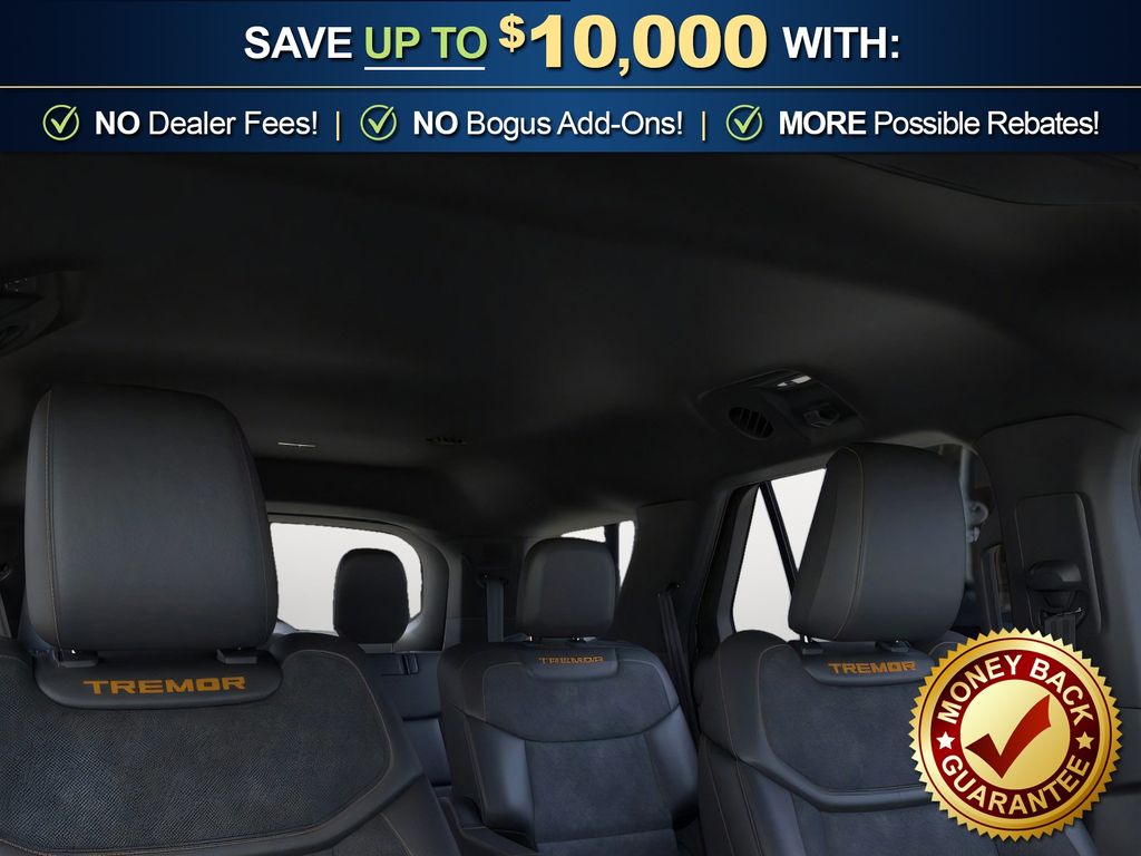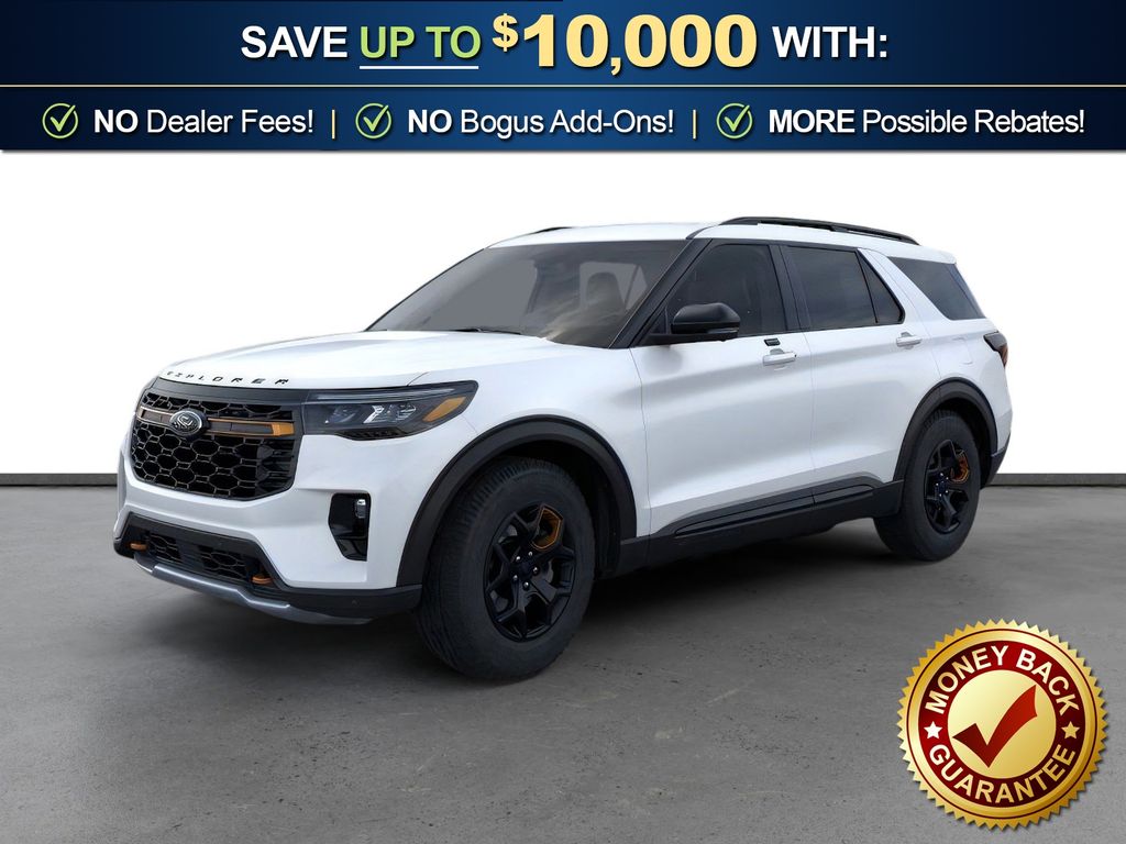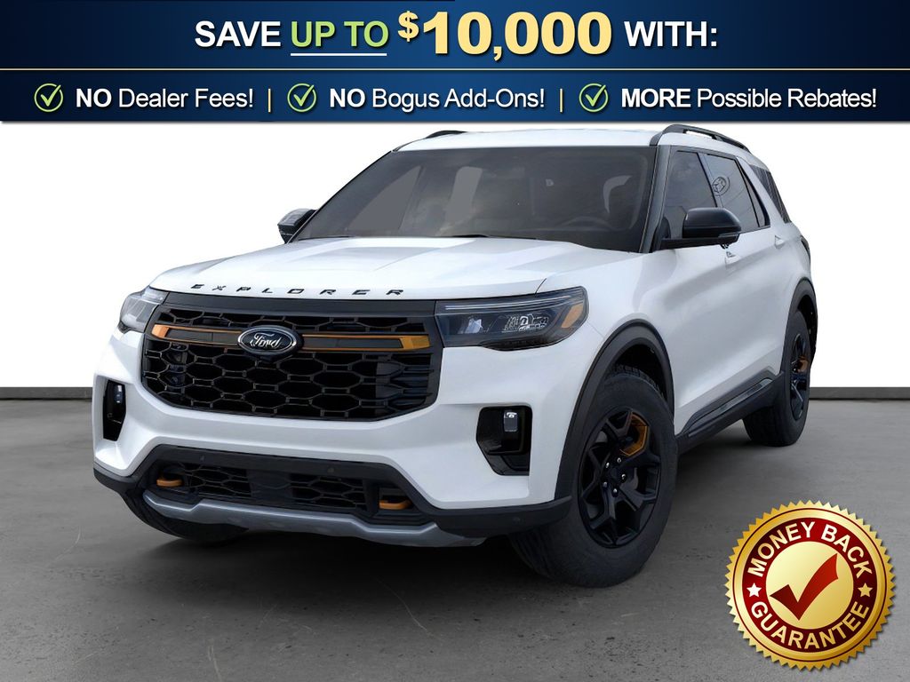 Star White Metallic Tri-Coat 2026 Ford Explorer Tremor FCT 4WD 10-Speed Automatic 2.3L EcoBoost I-4 4WD, 10 Speakers, 3rd row seats: bench, 4-Wheel Disc Brakes, ABS brakes, Air Conditioning, Alloy wheels, AM/FM radio: SiriusXM with 360L, Apple CarPlay/Android Auto, Auto High-beam Headlights, Automatic temperature control, Brake assist, Bumpers: body-color, Compass, Delay-off headlights, Driver door bin, Driver vanity mirror, Dual front impact airbags, Dual front side impact airbags, Electronic Stability Control, Emergency communication system: 911 Assist, Exterior Parking Camera Rear, Four wheel independent suspension, Front anti-roll bar, Front Bucket Seats, Front Center Armrest, Front dual zone A/C, Front fog lights, Front License Plate Bracket, Front reading lights, Fully automatic headlights, Heated door mirrors, Heated front seats, Heated rear seats, Heated steering wheel, Illuminated entry, Knee airbag, Leather steering wheel, Low tire pressure warning, Navigation System, Occupant sensing airbag, Outside temperature display, Overhead airbag, Overhead console, Panic alarm, Passenger door bin, Passenger vanity mirror, Power door mirrors, Power driver seat, Power Liftgate, Power passenger seat, Power steering, Power windows, Radio: B&O Sound System by Bang & Olufsen, Rear air conditioning, Rear anti-roll bar, Rear reading lights, Rear window defroster, Rear window wiper, Remote keyless entry, SecuriCode Keyless Entry Keypad, Security system, Speed control, Speed-sensing steering, Speed-Sensitive Wipers, Split folding rear seat, Spoiler, Sport steering wheel, Steering wheel mounted audio controls, Tachometer, Telescoping steering wheel, Tilt steering wheel, Traction control, Trip computer, Variably intermittent wipers, Ventilated front seats, Wheels: 18" High Gloss Black-Painted Aluminum, 4WD.