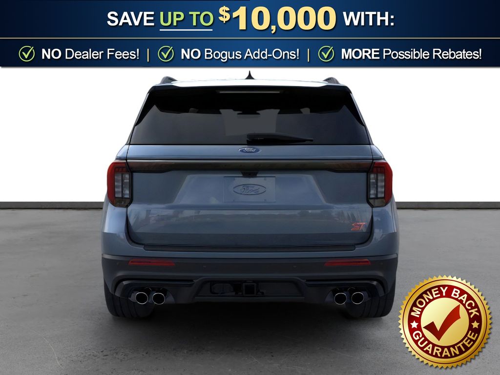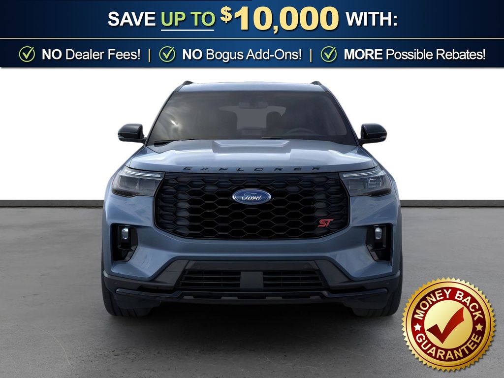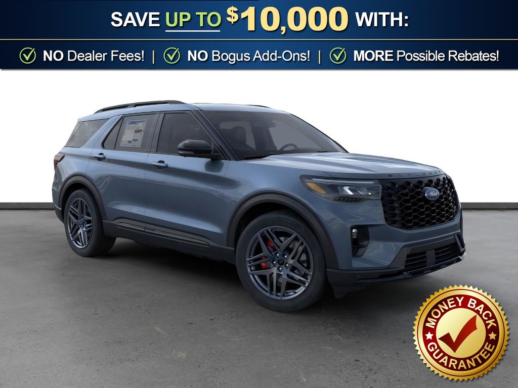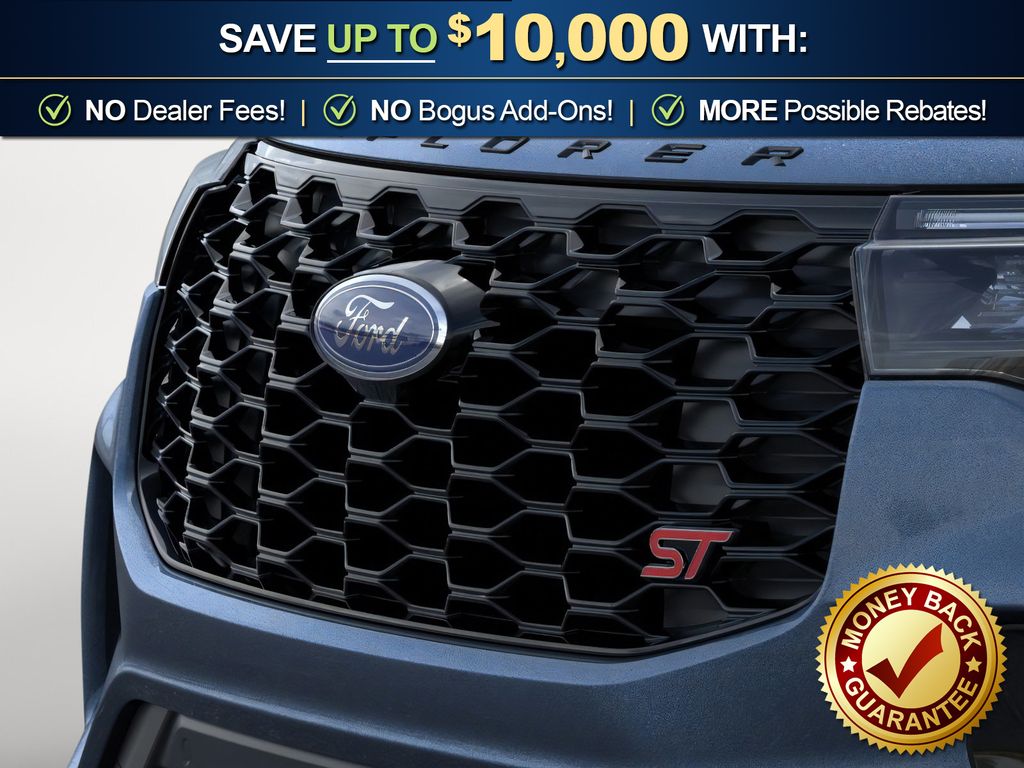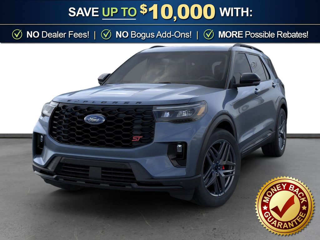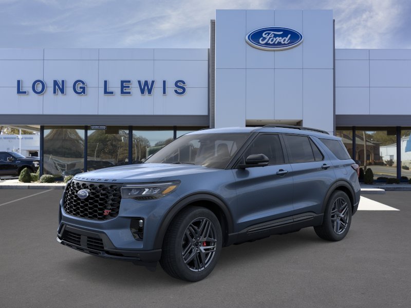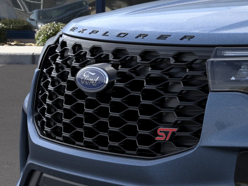 Vapor Blue Metallic 2026 Ford Explorer ST NFT RWD 10-Speed Automatic 3.0L EcoBoost V6 10 Speakers, 3rd row seats: bench, 4-Wheel Disc Brakes, ABS brakes, Air Conditioning, Alloy wheels, AM/FM radio: SiriusXM with 360L, Apple CarPlay/Android Auto, Auto High-beam Headlights, Auto-dimming door mirrors, Auto-dimming Rear-View mirror, Automatic temperature control, Brake assist, Bumpers: body-color, Compass, Delay-off headlights, Driver door bin, Driver vanity mirror, Dual front impact airbags, Dual front side impact airbags, Electronic Stability Control, Emergency communication system: 911 Assist, Exterior Parking Camera Rear, Four wheel independent suspension, Front anti-roll bar, Front Bucket Seats, Front Center Armrest, Front dual zone A/C, Front fog lights, Front reading lights, Fully automatic headlights, Garage door transmitter, Heated door mirrors, Heated front seats, Heated rear seats, Heated steering wheel, Heated/Ventilated Miko Suede Captain's Chairs, Illuminated entry, Knee airbag, Leather steering wheel, Low tire pressure warning, Memory seat, Navigation System, Occupant sensing airbag, Outside temperature display, Overhead airbag, Overhead console, Panic alarm, Passenger door bin, Passenger vanity mirror, Power door mirrors, Power driver seat, Power Liftgate, Power passenger seat, Power steering, Power windows, Radio: B&O Sound System by Bang and Olufsen, Rain sensing wipers, Rear air conditioning, Rear anti-roll bar, Rear reading lights, Rear window defroster, Rear window wiper, Remote keyless entry, Security system, Speed control, Speed-sensing steering, Speed-Sensitive Wipers, Split folding rear seat, Spoiler, Sport steering wheel, Steering wheel mounted audio controls, Tachometer, Telescoping steering wheel, Tilt steering wheel, Traction control, Trip computer, Turn signal indicator mirrors, Variably intermittent wipers, Ventilated front seats, Wheels: 21" Magnetite-Painted Aluminum.