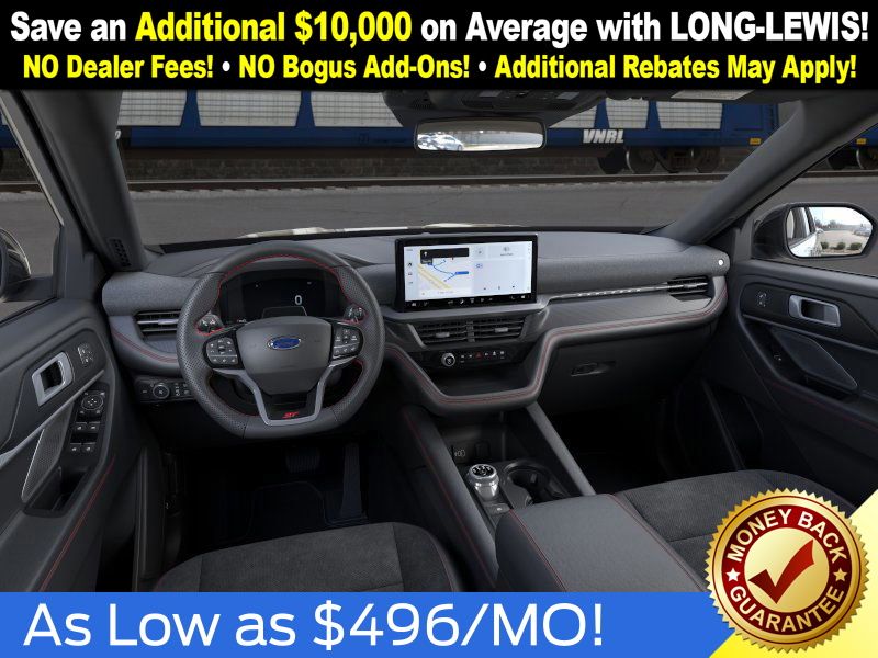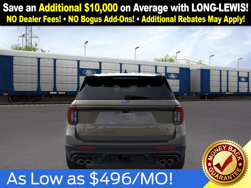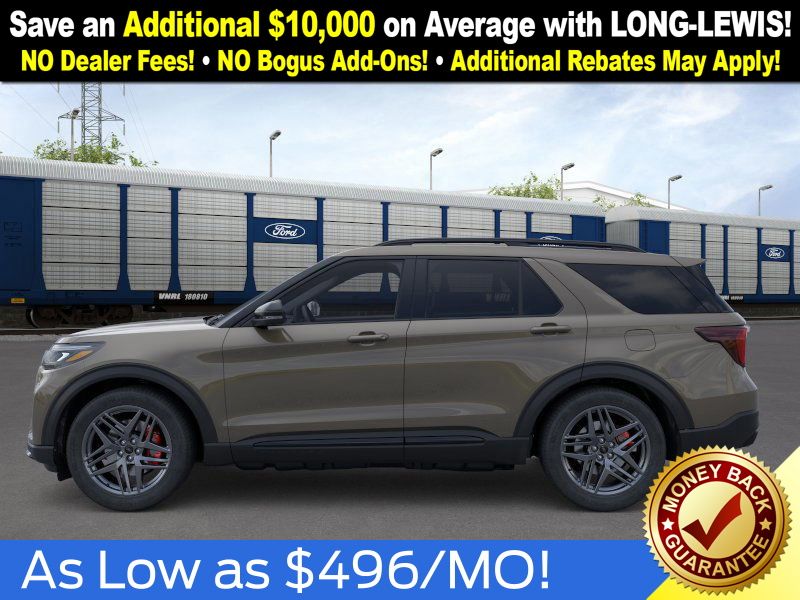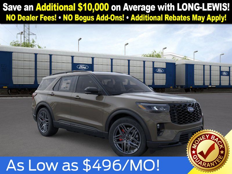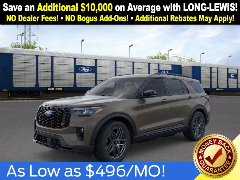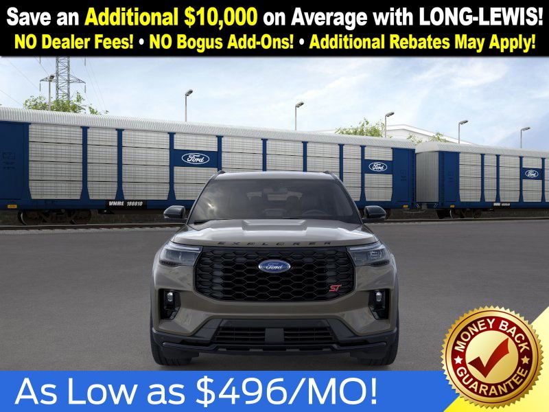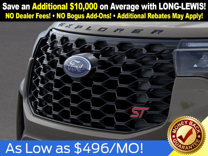 Marsh Gray 2026 Ford Explorer ST NFT RWD 10-Speed Automatic 3.0L EcoBoost V6 10 Speakers, 3rd row seats: bench, 4-Wheel Disc Brakes, ABS brakes, Air Conditioning, Alloy wheels, AM/FM radio: SiriusXM with 360L, Apple CarPlay/Android Auto, Auto High-beam Headlights, Auto-dimming door mirrors, Auto-dimming Rear-View mirror, Automatic temperature control, Brake assist, Bumpers: body-color, Compass, Delay-off headlights, Driver door bin, Driver vanity mirror, Dual front impact airbags, Dual front side impact airbags, Electronic Stability Control, Emergency communication system: 911 Assist, Exterior Parking Camera Rear, Four wheel independent suspension, Front anti-roll bar, Front Bucket Seats, Front Center Armrest, Front dual zone A/C, Front fog lights, Front reading lights, Fully automatic headlights, Garage door transmitter, Heated door mirrors, Heated front seats, Heated rear seats, Heated steering wheel, Heated/Ventilated Miko Captain's Chairs, Illuminated entry, Internet access capable: FordPass Connect 5G, Knee airbag, Leather steering wheel, Low tire pressure warning, Memory seat, Navigation System, Occupant sensing airbag, Outside temperature display, Overhead airbag, Overhead console, Panic alarm, Passenger door bin, Passenger vanity mirror, Power door mirrors, Power driver seat, Power Liftgate, Power passenger seat, Power steering, Power windows, Radio: B&O Sound System by Bang and Olufsen, Rain sensing wipers, Rear air conditioning, Rear anti-roll bar, Rear reading lights, Rear window defroster, Rear window wiper, Remote keyless entry, Security system, Speed control, Speed-sensing steering, Speed-Sensitive Wipers, Split folding rear seat, Spoiler, Sport steering wheel, Steering wheel mounted audio controls, Tachometer, Telescoping steering wheel, Tilt steering wheel, Traction control, Trip computer, Turn signal indicator mirrors, Variably intermittent wipers, Ventilated front seats, Wheels: 21" Magnetite-Painted Aluminum.