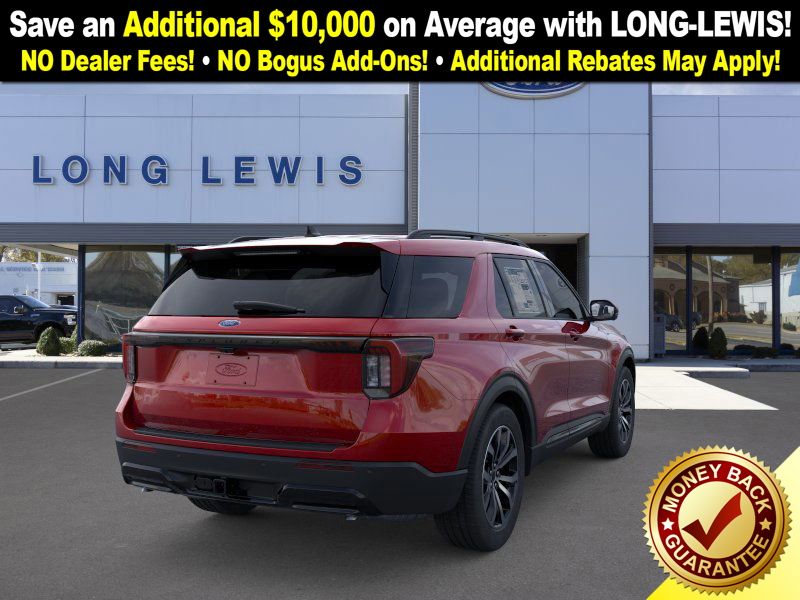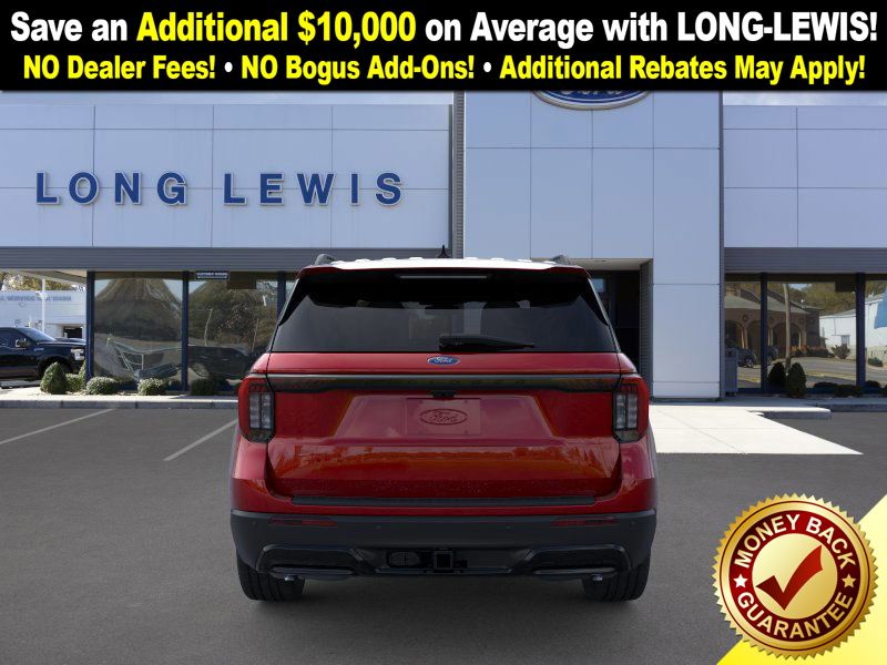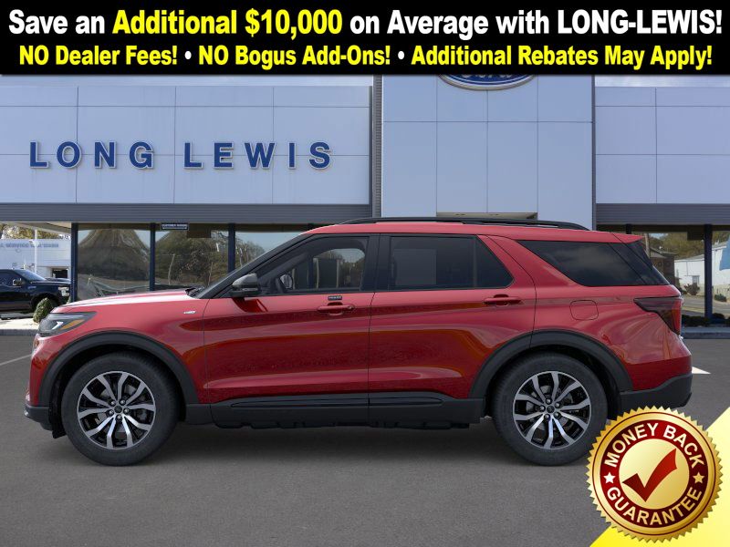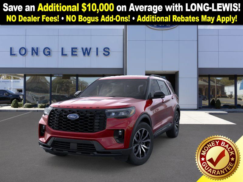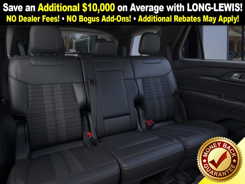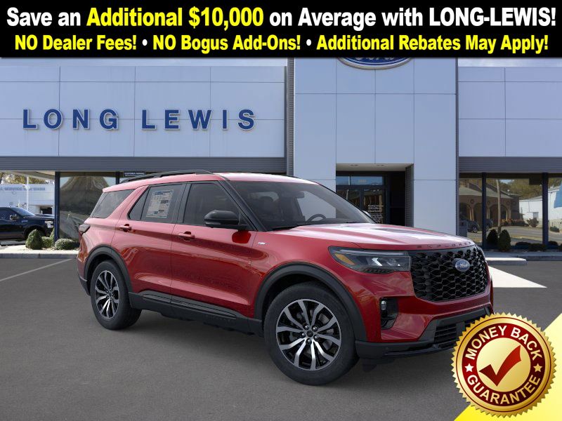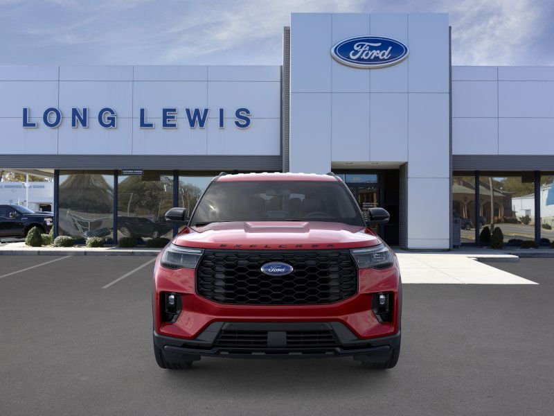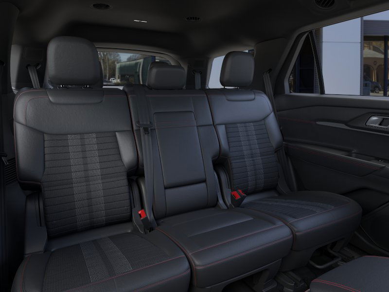 Rapid Red Metallic Tinted Clearcoat 2026 Ford Explorer ST-Line fctp RWD 10-Speed Automatic 2.3L EcoBoost I-4 10 Speakers, 110V/150W AC Power Outlet, 2nd Row Heated Seats, 3rd row seats: bench, 4-Wheel Disc Brakes, ABS brakes, Air Conditioning, Alloy wheels, AM/FM radio: SiriusXM with 360L, Ambient Lighting, Apple CarPlay/Android Auto, Auto High-beam Headlights, Auto-Dimming Interior Rear-View Mirror, Automatic temperature control, Brake assist, Bumpers: body-color, Compass, Delay-off headlights, Driver door bin, Driver vanity mirror, Dual front impact airbags, Dual front side impact airbags, Electronic Stability Control, Emergency communication system: 911 Assist, Exterior Parking Camera Rear, Four wheel independent suspension, Front anti-roll bar, Front Bucket Seats, Front Center Armrest, Front dual zone A/C, Front fog lights, Front License Plate Bracket, Front reading lights, Fully automatic headlights, Garage door transmitter, Heated door mirrors, Heated front seats, Heated steering wheel, Heated Unique Cloth Captain's Chairs, Illuminated entry, Knee airbag, Leather steering wheel, Low tire pressure warning, Manual-Folding Sideview Mirrors, Memory Driver's Seat, Navigation System, Occupant sensing airbag, Outside temperature display, Overhead airbag, Overhead console, Panic alarm, Passenger door bin, Passenger vanity mirror, Power door mirrors, Power driver seat, Power Liftgate, Power passenger seat, Power steering, Power windows, Premium Package, Rear air conditioning, Rear anti-roll bar, Rear reading lights, Rear window defroster, Rear window wiper, Remote keyless entry, SecuriCode Keyless Entry Keypad, Security system, Speed control, Speed-sensing steering, Speed-Sensitive Wipers, Split folding rear seat, Spoiler, Steering wheel mounted audio controls, Tachometer, Telescoping steering wheel, Tilt steering wheel, Traction control, Trip computer, Variably intermittent wipers, Wheels: 20" Ebony-Painted Machined Aluminum.