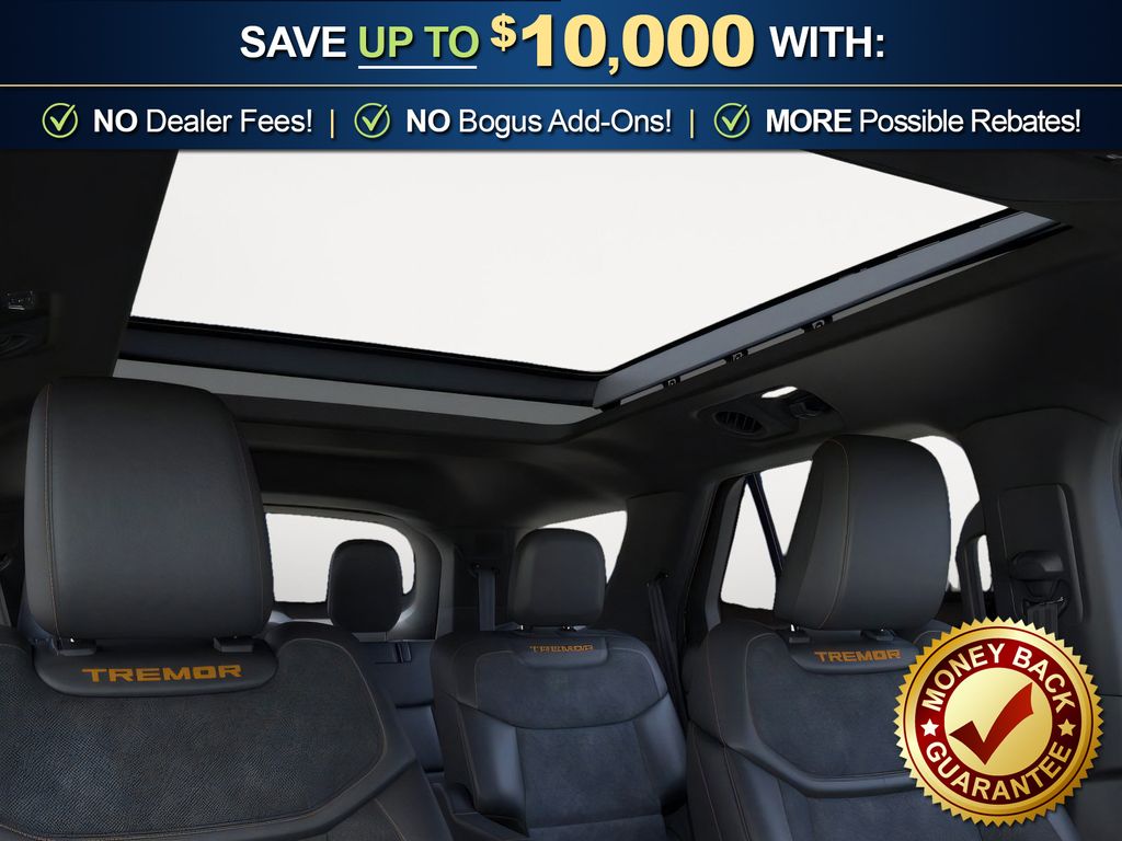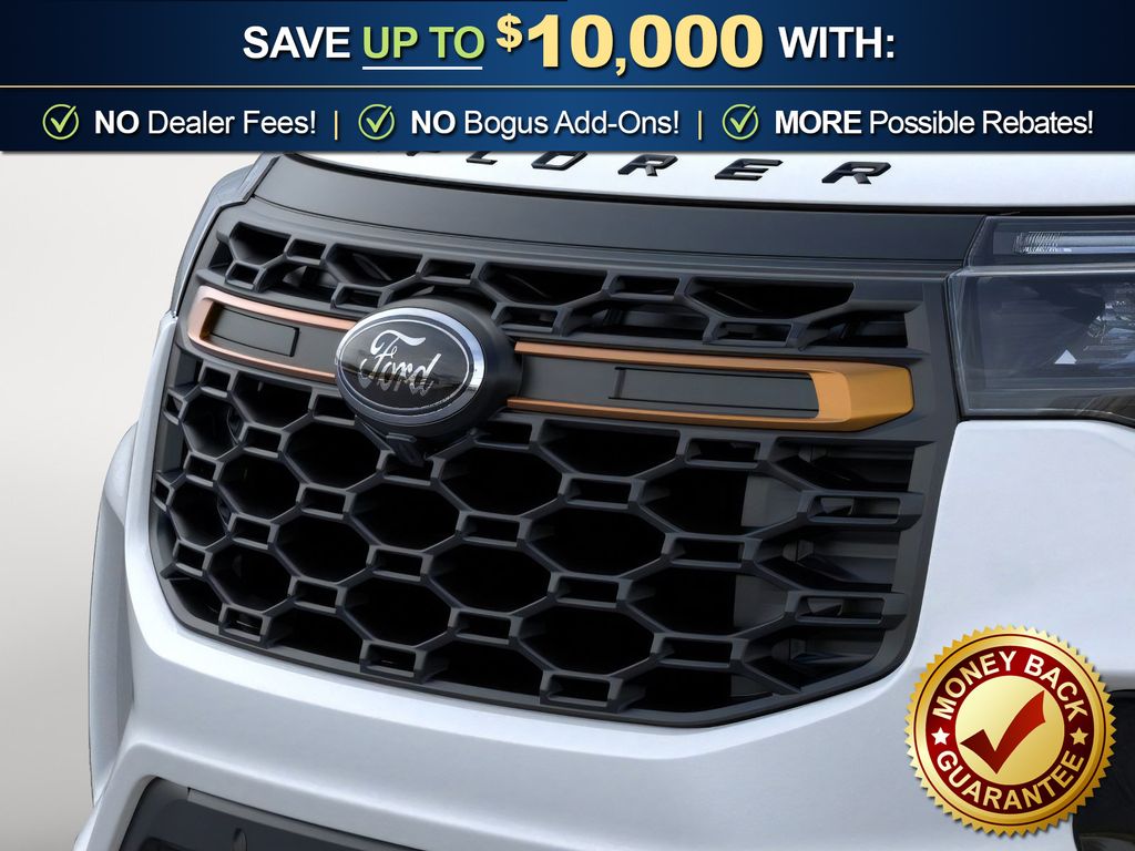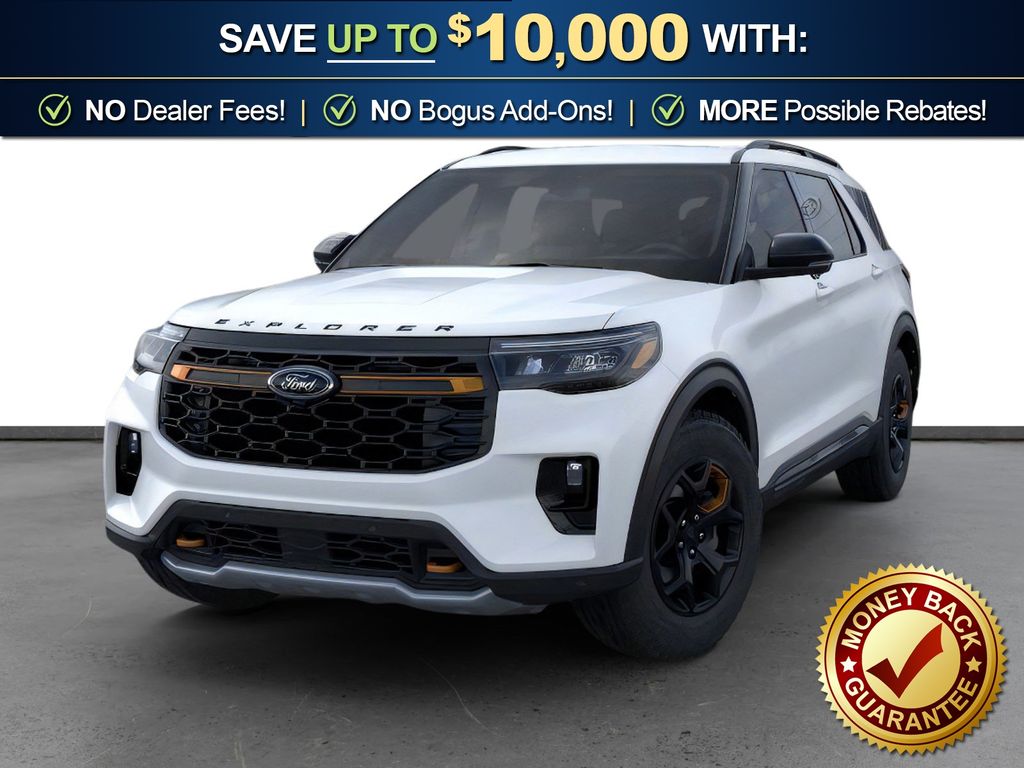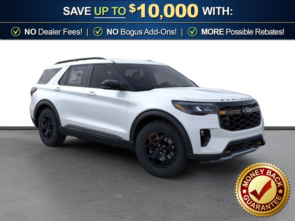 Star White Metallic Tri-Coat 2026 Ford Explorer Tremor NFT 4WD 10-Speed Automatic 3.0L EcoBoost V6 4WD, 10 Speakers, 3rd Row PowerFold Seats, 3rd row seats: bench, 4-Wheel Disc Brakes, ABS brakes, Air Conditioning, Alloy wheels, AM/FM radio: SiriusXM with 360L, Ambient Lighting, Apple CarPlay/Android Auto, Auto High-beam Headlights, Automatic temperature control, BlueCruise (equipment + 1-Year + 90-Day Plan), BlueCruise Hardware, Brake assist, Bumpers: body-color, Compass, Delay-off headlights, Driver door bin, Driver vanity mirror, Dual front impact airbags, Dual front side impact airbags, Electronic Stability Control, Emergency communication system: 911 Assist, Exterior Parking Camera Rear, Four wheel independent suspension, Front anti-roll bar, Front Bucket Seats, Front Center Armrest, Front dual zone A/C, Front fog lights, Front License Plate Bracket, Front reading lights, Fully automatic headlights, Garage door transmitter, Heated door mirrors, Heated front seats, Heated rear seats, Heated steering wheel, Heated/Ventilated Miko Suede Captain's Chairs, Illuminated entry, Knee airbag, Leather steering wheel, Low tire pressure warning, Memory Driver's Seat, Multicontour Seats with Front Active Motion, Navigation System, Occupant sensing airbag, Outside temperature display, Overhead airbag, Overhead console, Panic alarm, Panoramic Fixed Glass Roof with Power Shade, Passenger door bin, Passenger vanity mirror, Power door mirrors, Power driver seat, Power Liftgate, Power passenger seat, Power steering, Power windows, Power-Folding with Autofold Side Mirrors, Radio: B&O Sound System by Bang & Olufsen, Radio: B&O Sound System by Bang and Olufsen, Rain-Sensing Wipers (front Only), Rear air conditioning, Rear anti-roll bar, Rear reading lights, Rear window defroster, Rear window wiper, Remote keyless entry, SecuriCode Keyless Entry Keypad, Security system, Speed control, Speed-sensing steering, Speed-Sensitive Wipers, Split folding rear seat, Spoiler, Sport steering wheel, Steering wheel mounted audio controls, Tachometer, Telescoping steering wheel, Tilt steering wheel, Traction control, Tremor Ultimate Package, Trip computer, Variably intermittent wipers, Ventilated front seats, Wheels: 18" High Gloss Black-Painted Aluminum, 4WD.