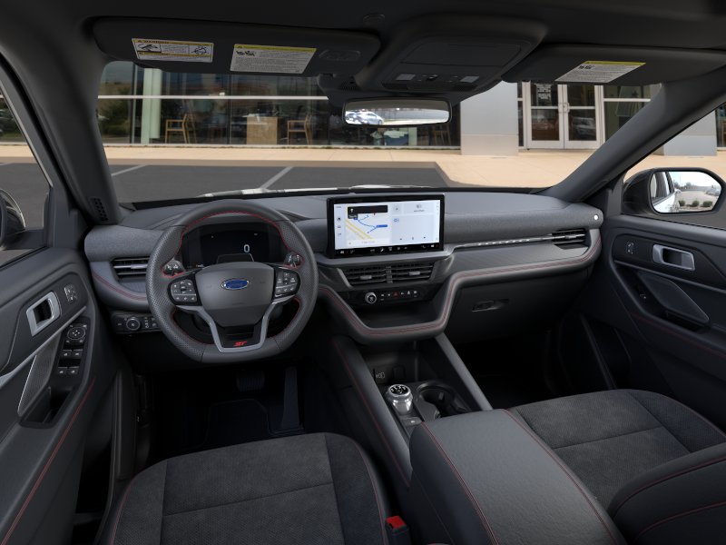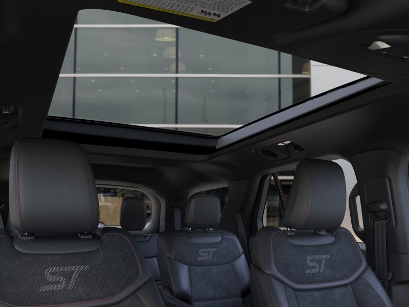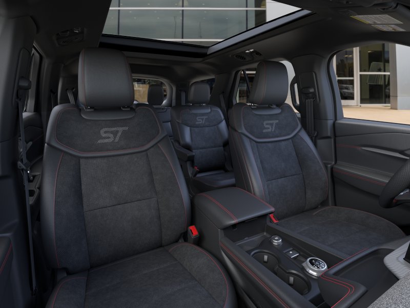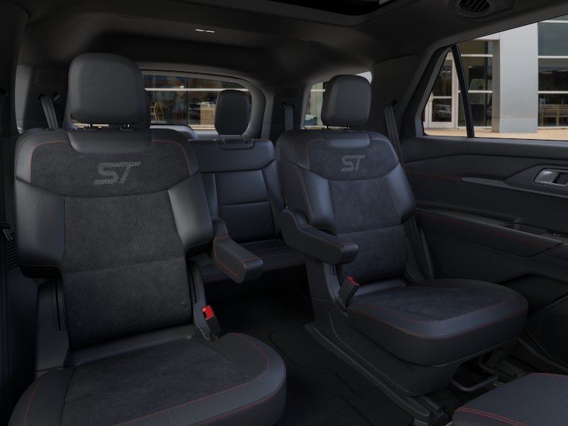 2026 Ford Explorer ST NFT Agate Black Metallic ST NFT 4WD 10-Speed Automatic 3.0L EcoBoost V6 4WD, 10 Speakers, 3rd row seats: bench, 4-Wheel Disc Brakes, ABS brakes, Air Conditioning, Alloy wheels, AM/FM radio: SiriusXM with 360L, Apple CarPlay/Android Auto, Auto High-beam Headlights, Auto-dimming door mirrors, Auto-dimming Rear-View mirror, Automatic temperature control, BlueCruise Equipped (1-Year + 90-Day Plan), Brake assist, Bumpers: body-color, Compass, Delay-off headlights, Driver door bin, Driver vanity mirror, Dual front impact airbags, Dual front side impact airbags, Electronic Stability Control, Emergency communication system: 911 Assist, Exterior Parking Camera Rear, Four wheel independent suspension, Front anti-roll bar, Front Bucket Seats, Front Center Armrest, Front dual zone A/C, Front fog lights, Front reading lights, Fully automatic headlights, Garage door transmitter, Heated door mirrors, Heated front seats, Heated rear seats, Heated steering wheel, Heated/Ventilated Miko Suede Captain's Chairs, Illuminated entry, Knee airbag, Leather steering wheel, Low tire pressure warning, Memory seat, Multicontour Seats with Front Active Motion, Navigation System, Occupant sensing airbag, Outside temperature display, Overhead airbag, Overhead console, Panic alarm, Panoramic Fixed Glass Roof with Power Shade, Passenger door bin, Passenger vanity mirror, Power door mirrors, Power driver seat, Power Liftgate, Power passenger seat, Power steering, Power windows, Radio: B&O Sound System by Bang & Olufsen, Radio: B&O Sound System by Bang and Olufsen, Rain sensing wipers, Rear air conditioning, Rear anti-roll bar, Rear reading lights, Rear window defroster, Rear window wiper, Remote Control Front Windows, Remote keyless entry, Security system, Speed control, Speed-sensing steering, Speed-Sensitive Wipers, Split folding rear seat, Spoiler, Sport steering wheel, Steering wheel mounted audio controls, Sun and Sound Package, Tachometer, Telescoping steering wheel, Tilt steering wheel, Traction control, Trip computer, Turn signal indicator mirrors, Variably intermittent wipers, Ventilated front seats, Wheels: 21" Magnetite-Painted Aluminum, 4WD.