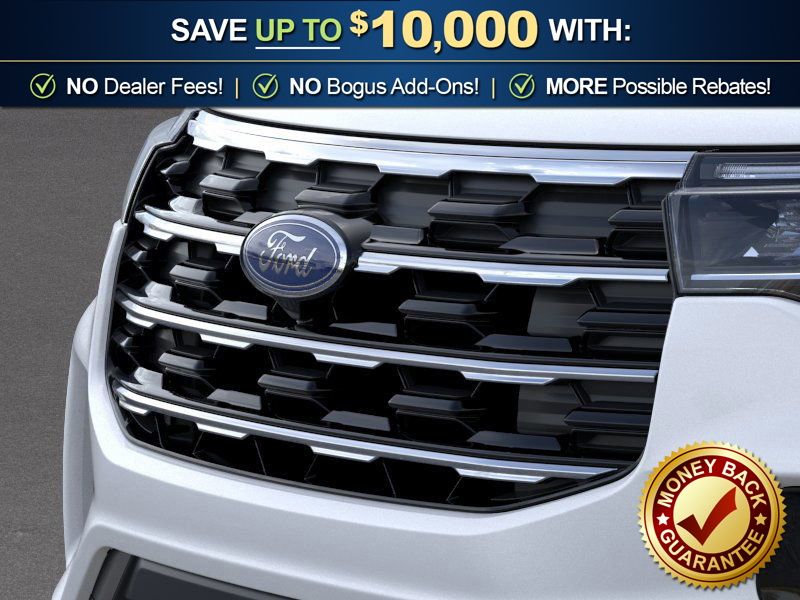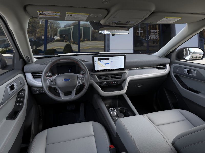Star White Metallic Tri-Coat 2026 Ford Explorer Active NFT RWD 10-Speed Automatic 2.3L EcoBoost I-4 3rd row seats: bench, 4-Wheel Disc Brakes, 6 Speakers, ABS brakes, Air Conditioning, Alloy wheels, AM/FM radio: SiriusXM with 360L, AM/FM Stereo, Apple CarPlay/Android Auto, Auto High-beam Headlights, Automatic temperature control, Brake assist, Bumpers: body-color, Compass, Delay-off headlights, Driver door bin, Driver vanity mirror, Dual front impact airbags, Dual front side impact airbags, Electronic Stability Control, Emergency communication system: 911 Assist, Exterior Parking Camera Rear, Four wheel independent suspension, Front anti-roll bar, Front Bucket Seats, Front Center Armrest, Front dual zone A/C, Front License Plate Bracket, Front reading lights, Fully automatic headlights, Heated door mirrors, Illuminated entry, Knee airbag, Low tire pressure warning, Navigation System, Occupant sensing airbag, Outside temperature display, Overhead airbag, Overhead console, Panic alarm, Passenger door bin, Passenger vanity mirror, Power door mirrors, Power driver seat, Power steering, Power windows, Rear air conditioning, Rear anti-roll bar, Rear reading lights, Rear window defroster, Rear window wiper, Remote keyless entry, Security system, Speed control, Speed-sensing steering, Speed-Sensitive Wipers, Split folding rear seat, Spoiler, Steering wheel mounted audio controls, Tachometer, Telescoping steering wheel, Tilt steering wheel, Traction control, Trip computer, Variably intermittent wipers, Wheels: 18" Sparkle Silver-Painted Aluminum.
