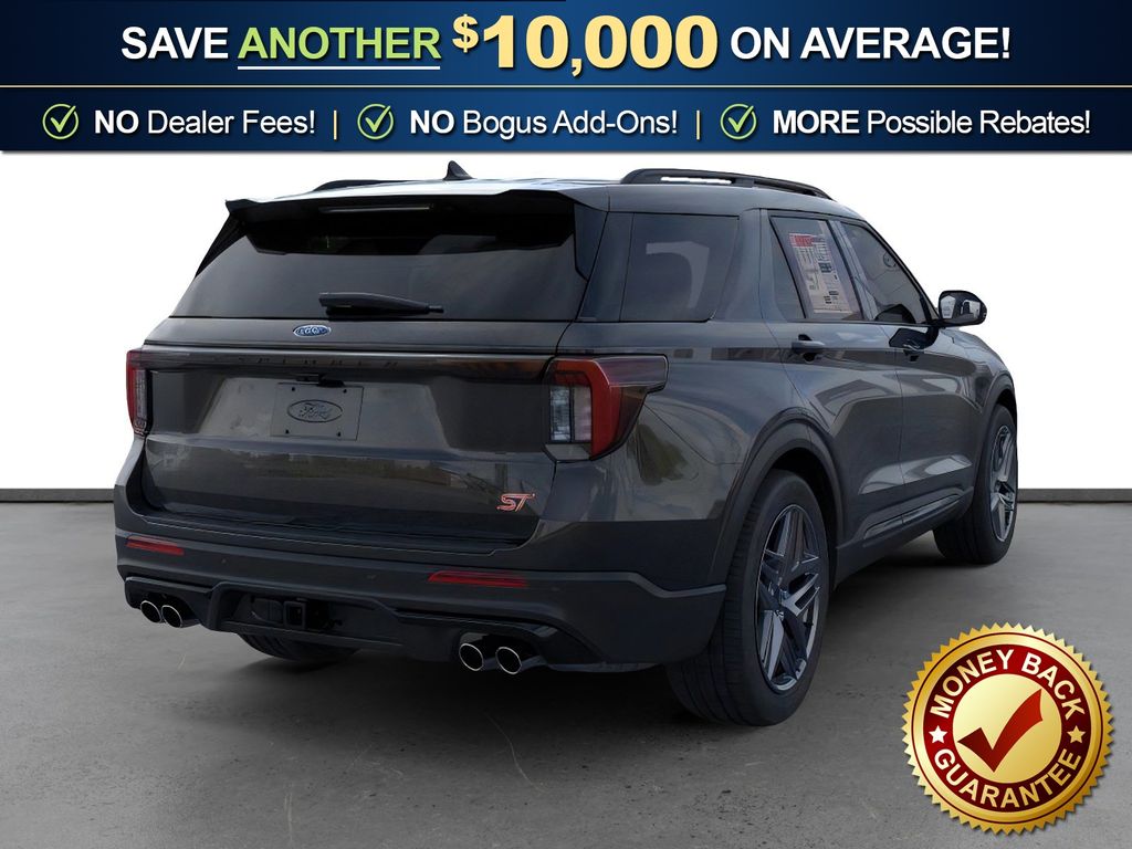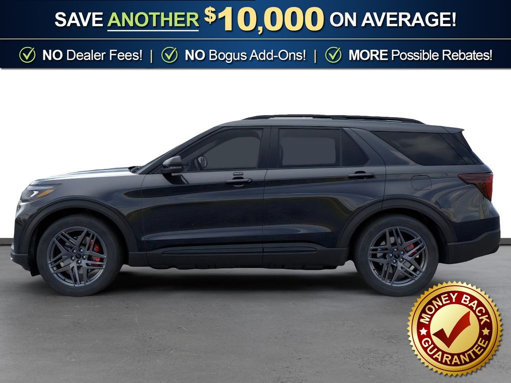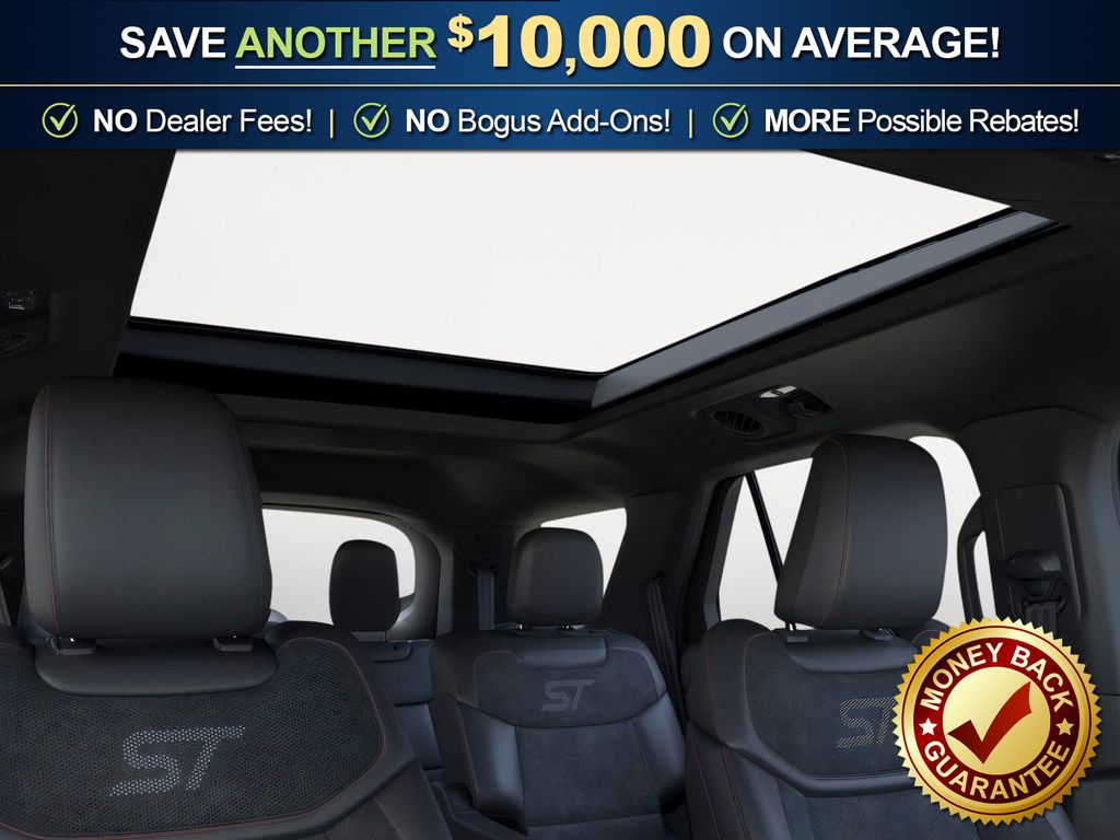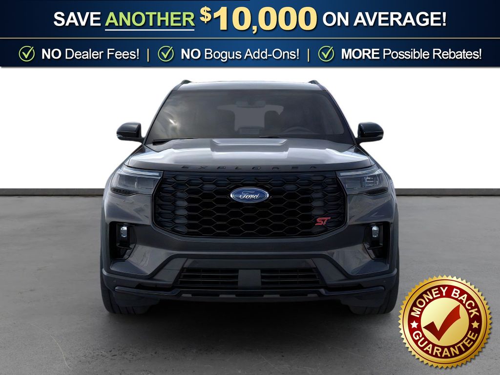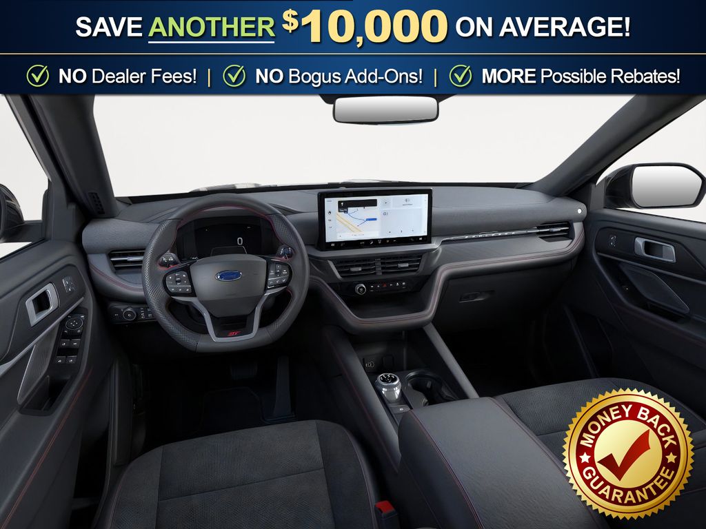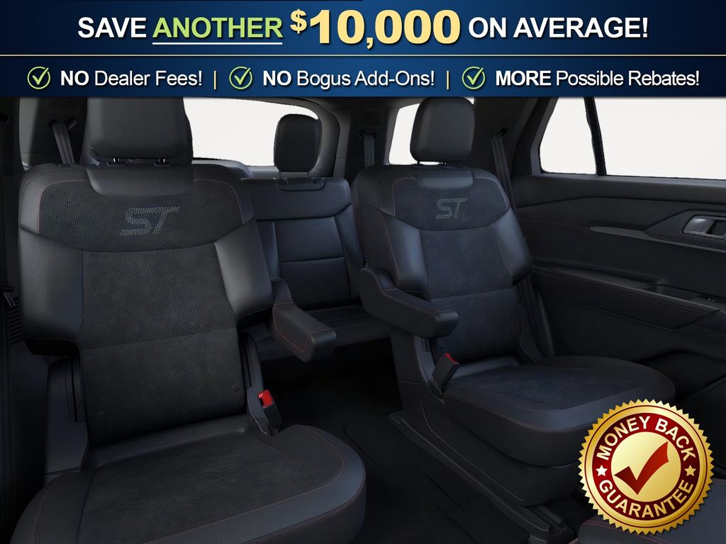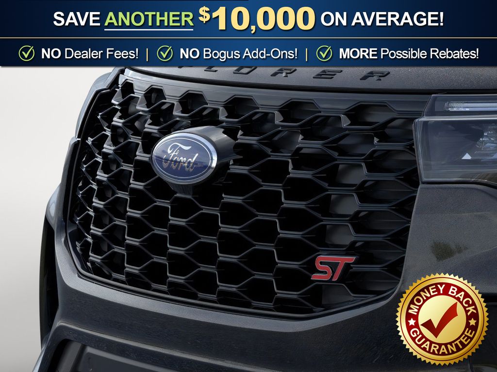 Agate Black Metallic 2026 Ford Explorer ST FCT 4WD 10-Speed Automatic 3.0L EcoBoost V6 4WD, 10 Speakers, 3rd row seats: bench, 4-Wheel Disc Brakes, ABS brakes, Air Conditioning, Alloy wheels, AM/FM radio: SiriusXM with 360L, Apple CarPlay/Android Auto, Auto High-beam Headlights, Auto-dimming door mirrors, Auto-dimming Rear-View mirror, Automatic temperature control, Brake assist, Bumpers: body-color, Compass, Delay-off headlights, Driver door bin, Driver vanity mirror, Dual front impact airbags, Dual front side impact airbags, Electronic Stability Control, Emergency communication system: 911 Assist, Exterior Parking Camera Rear, Four wheel independent suspension, Front anti-roll bar, Front Bucket Seats, Front Center Armrest, Front dual zone A/C, Front fog lights, Front License Plate Bracket, Front reading lights, Fully automatic headlights, Garage door transmitter, Heated door mirrors, Heated front seats, Heated rear seats, Heated steering wheel, Heated/Ventilated Miko Suede Captain's Chairs, Illuminated entry, Knee airbag, Leather steering wheel, Low tire pressure warning, Memory seat, Multicontour Seats with Front Active Motion, Navigation System, Occupant sensing airbag, Outside temperature display, Overhead airbag, Overhead console, Panic alarm, Panoramic Fixed Glass Roof with Power Shade, Passenger door bin, Passenger vanity mirror, Power door mirrors, Power driver seat, Power Liftgate, Power passenger seat, Power steering, Power windows, Radio: B&O Sound System by Bang & Olufsen, Radio: B&O Sound System by Bang and Olufsen, Rain sensing wipers, Rear air conditioning, Rear anti-roll bar, Rear reading lights, Rear window defroster, Rear window wiper, Remote Control Front Windows, Remote keyless entry, SecuriCode Keyless Entry Keypad, Security system, Speed control, Speed-sensing steering, Speed-Sensitive Wipers, Split folding rear seat, Spoiler, Sport steering wheel, Steering wheel mounted audio controls, Sun and Sound Package, Tachometer, Telescoping steering wheel, Tilt steering wheel, Traction control, Trip computer, Turn signal indicator mirrors, Variably intermittent wipers, Ventilated front seats, Wheels: 21" Magnetite-Painted Aluminum, 4WD.