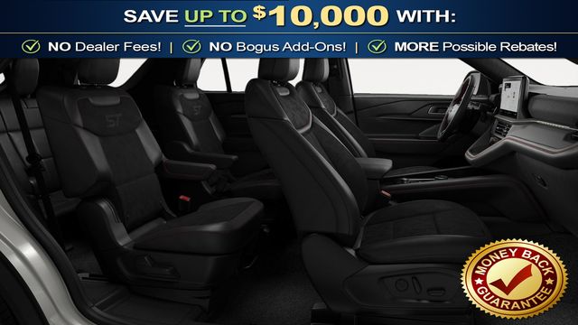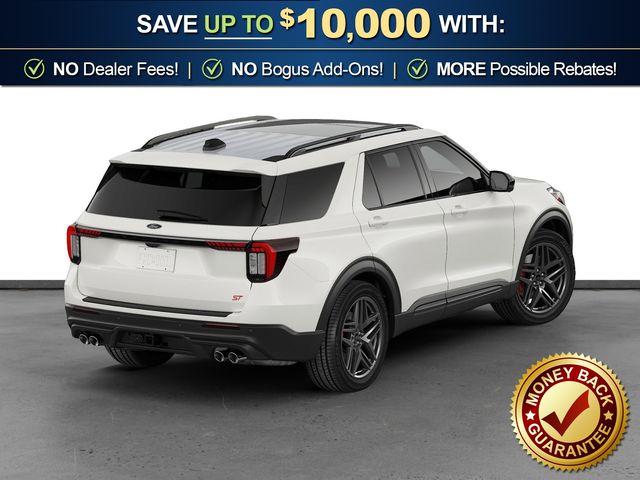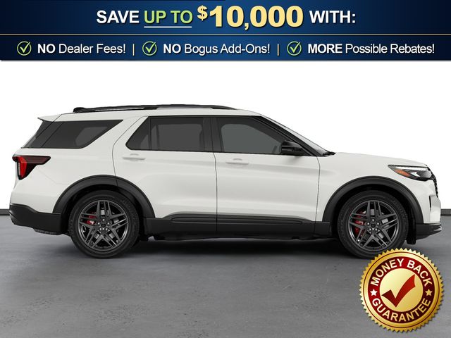 2026 Ford Explorer ST NFT Star White Metallic Tri-Coat ST NFT RWD 10-Speed Automatic 3.0L EcoBoost V6 10 Speakers, 3rd row seats: bench, 4-Wheel Disc Brakes, ABS brakes, Air Conditioning, Alloy wheels, AM/FM radio: SiriusXM with 360L, Apple CarPlay/Android Auto, Auto High-beam Headlights, Auto-dimming door mirrors, Auto-dimming Rear-View mirror, Automatic temperature control, Brake assist, Bumpers: body-color, Compass, Delay-off headlights, Driver door bin, Driver vanity mirror, Dual front impact airbags, Dual front side impact airbags, Electronic Stability Control, Emergency communication system: 911 Assist, Exterior Parking Camera Rear, Ford Connectivity Package (one-Time Purchase - 7 Years), Four wheel independent suspension, Front anti-roll bar, Front Bucket Seats, Front Center Armrest, Front dual zone A/C, Front fog lights, Front reading lights, Fully automatic headlights, Garage door transmitter, Heated door mirrors, Heated front seats, Heated rear seats, Heated steering wheel, Heated/Ventilated Miko Suede Captain's Chairs, Illuminated entry, Knee airbag, Leather steering wheel, Low tire pressure warning, Memory seat, Multicontour Seats with Front Active Motion, Navigation System, Occupant sensing airbag, Outside temperature display, Overhead airbag, Overhead console, Panic alarm, Panoramic Fixed Glass Roof with Power Shade, Passenger door bin, Passenger vanity mirror, Power door mirrors, Power driver seat, Power Liftgate, Power passenger seat, Power steering, Power windows, Radio: B&O Sound System by Bang & Olufsen, Radio: B&O Sound System by Bang and Olufsen, Rain sensing wipers, Rear air conditioning, Rear anti-roll bar, Rear reading lights, Rear window defroster, Rear window wiper, Remote Control Front Windows, Remote keyless entry, Security system, Speed control, Speed-sensing steering, Speed-Sensitive Wipers, Split folding rear seat, Spoiler, Sport steering wheel, Steering wheel mounted audio controls, Sun and Sound Package, Tachometer, Telescoping steering wheel, Tilt steering wheel, Traction control, Trip computer, Turn signal indicator mirrors, Variably intermittent wipers, Ventilated front seats, Wheels: 21" Magnetite-Painted Aluminum.