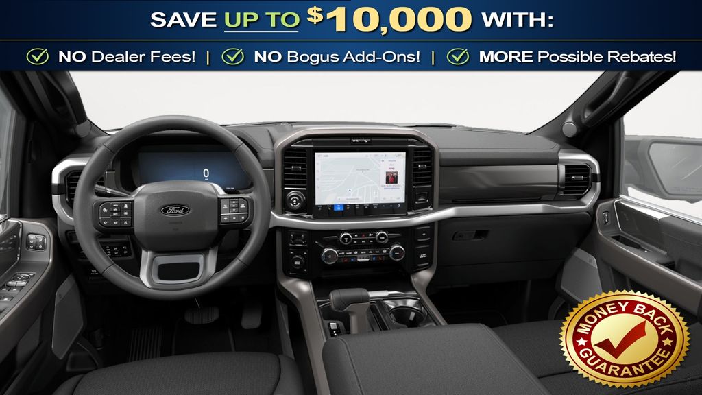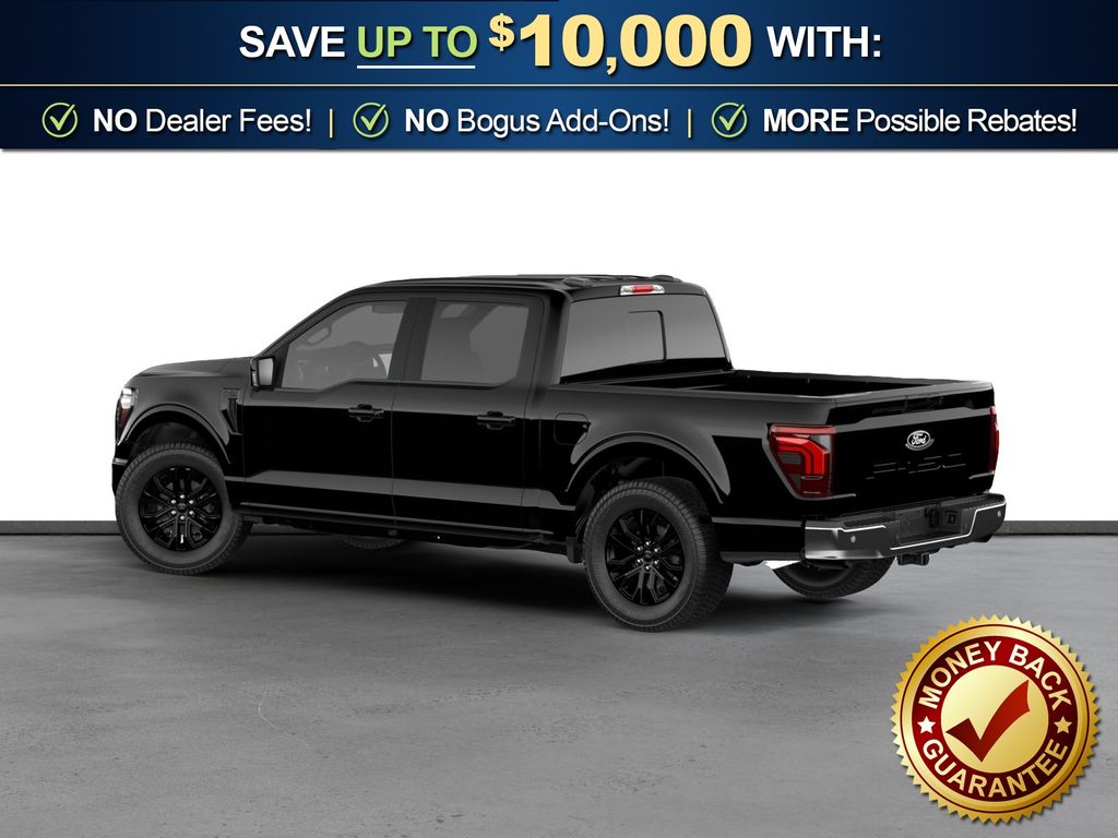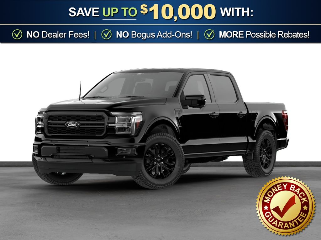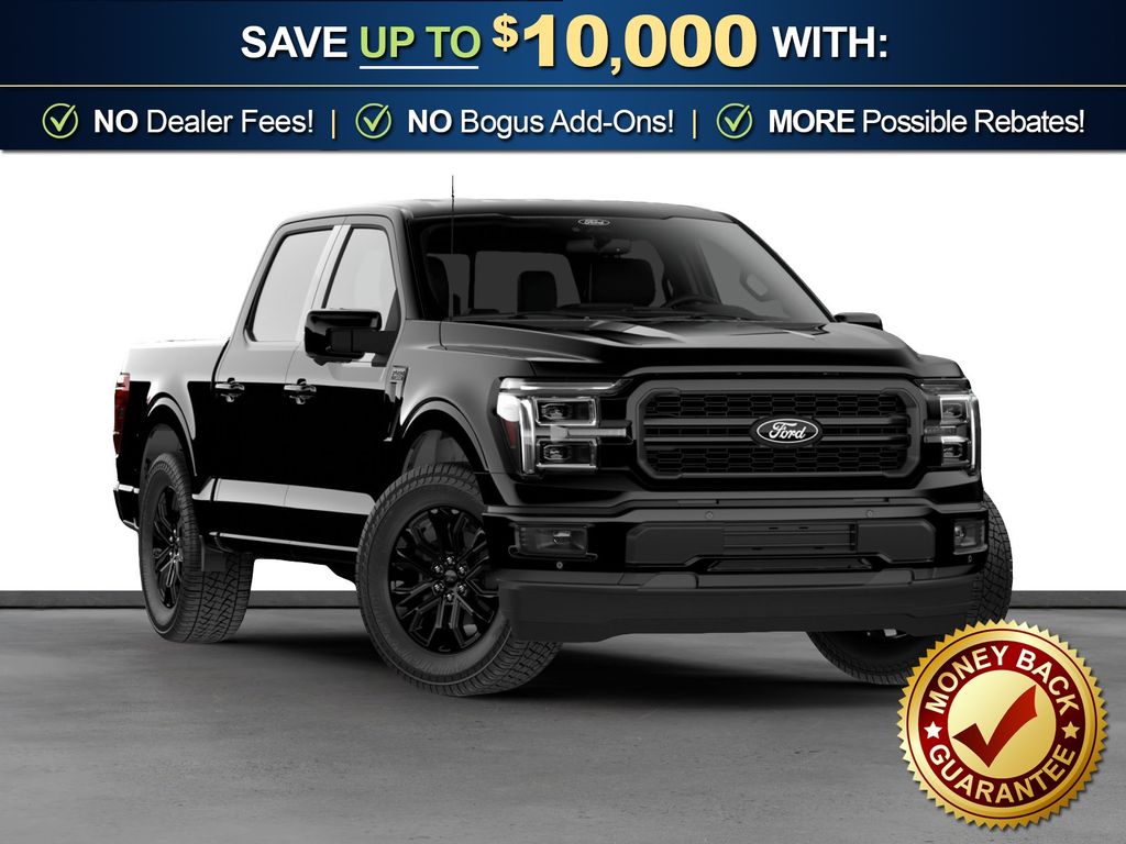 Agate Black Metallic 2026 Ford F-150 Lariat NFT 4WD 10-Speed Automatic 3.5L V6 EcoBoost 4WD, 4-Wheel Disc Brakes, 4x4 FX4 Off-Road Bodyside Decal, 8 Speakers, ABS brakes, ActiveX Trimmed Bucket Seats, Air Conditioning, Alloy wheels, AM/FM radio: SiriusXM with 360L, Auto High-beam Headlights, Auto-dimming door mirrors, Auto-dimming Rear-View mirror, Automatic temperature control, Black Exterior Badging, Black Grille, Black Taillamp Bezels, Body-Color Front and Rear Bumpers, Body-Color Skull Caps and Door Handles, Brake assist, Bumpers: chrome, Chrome wheels, Compass, Dark Interior Appliques, Delay-off headlights, Driver door bin, Driver vanity mirror, Dual front impact airbags, Dual front side impact airbags, Electronic Stability Control, Emergency communication system: SYNC 4 911 Assist, Ford Connectivity Package (1-Year Included), Front anti-roll bar, Front Bucket Seats, Front Center Armrest, Front dual zone A/C, Front fog lights, Front License Plate Bracket, Front reading lights, Front wheel independent suspension, Fully automatic headlights, FX4 Off-Road Package, Garage door transmitter, Gray Box Side Decal, Heated door mirrors, Heated front seats, Heated steering wheel, Hill Descent Control, Illuminated entry, Integrated Trailer Brake Controller, Internet access capable: 5G Modem - Ford Connectivity Package, Lariat Black Appearance Package, Low tire pressure warning, Memory seat, Monotube Rear Shocks, Navigation system: Connected Navigation, Occupant sensing airbag, Off-Road Tuned Front Shock Absorbers, Outside temperature display, Overhead airbag, Overhead console, Panic alarm, Passenger door bin, Passenger vanity mirror, Power door mirrors, Power driver seat, Power passenger seat, Power steering, Power windows, Radio data system, Radio: B&O Sound System by Bang and Olufsen, Rain sensing wipers, Rear reading lights, Rear seat center armrest, Rear step bumper, Rear window defroster, Remote keyless entry, Security system, Speed control, Split folding rear seat, Steering wheel mounted audio controls, SYNC 4 with Enhanced Voice Recognition, Tachometer, Telescoping steering wheel, Tilt steering wheel, Tow/Haul Package, Traction control, Tray Style Floor Liner Without Carpet Mats, Trip computer, Turn signal indicator mirrors, Variably intermittent wipers, Ventilated front seats, Wheels: 18" Chrome-Like PVD, 4WD.