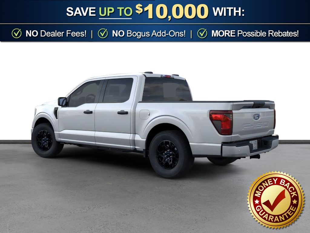 Iconic Silver Metallic 2026 Ford F-150 STX FCT RWD 10-Speed Automatic 2.7L V6 EcoBoost 3.55 Axle Ratio, 4-Wheel Disc Brakes, 6 Speakers, ABS brakes, Air Conditioning, Alloy wheels, AM/FM radio: SiriusXM with 360L, Auto High-beam Headlights, Brake assist, Bumpers: body-color, Compass, Delay-off headlights, Driver door bin, Dual front impact airbags, Dual front side impact airbags, Electronic Stability Control, Emergency communication system: SYNC 4 911 Assist, Ford Connectivity Package (1-Year Included), Front anti-roll bar, Front Bucket Seats, Front Center Armrest, Front reading lights, Front wheel independent suspension, Fully automatic headlights, GVWR: 6,426 lbs Payload Package, Heated door mirrors, Illuminated entry, Internet access capable: 5G Modem - Ford Connectivity Package, Low tire pressure warning, Occupant sensing airbag, Outside temperature display, Overhead airbag, Overhead console, Panic alarm, Passenger door bin, Passenger vanity mirror, Power door mirrors, Power steering, Power windows, Radio data system, Radio: AM/FM Stereo with SiriusXM 360L, Rear step bumper, Rear window defroster, Remote keyless entry, Security system, Speed control, Split folding rear seat, Steering wheel mounted audio controls, SYNC 4 with Enhanced Voice Recognition, Tachometer, Telescoping steering wheel, Tilt steering wheel, Traction control, Trip computer, Unique Sport Cloth 40/Console/40 Front-Seats, Variably intermittent wipers, Wheels: 18" Gloss Black.
