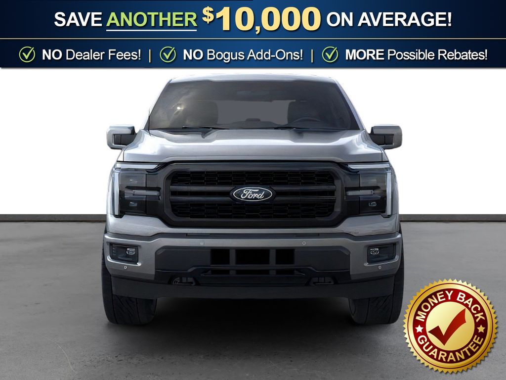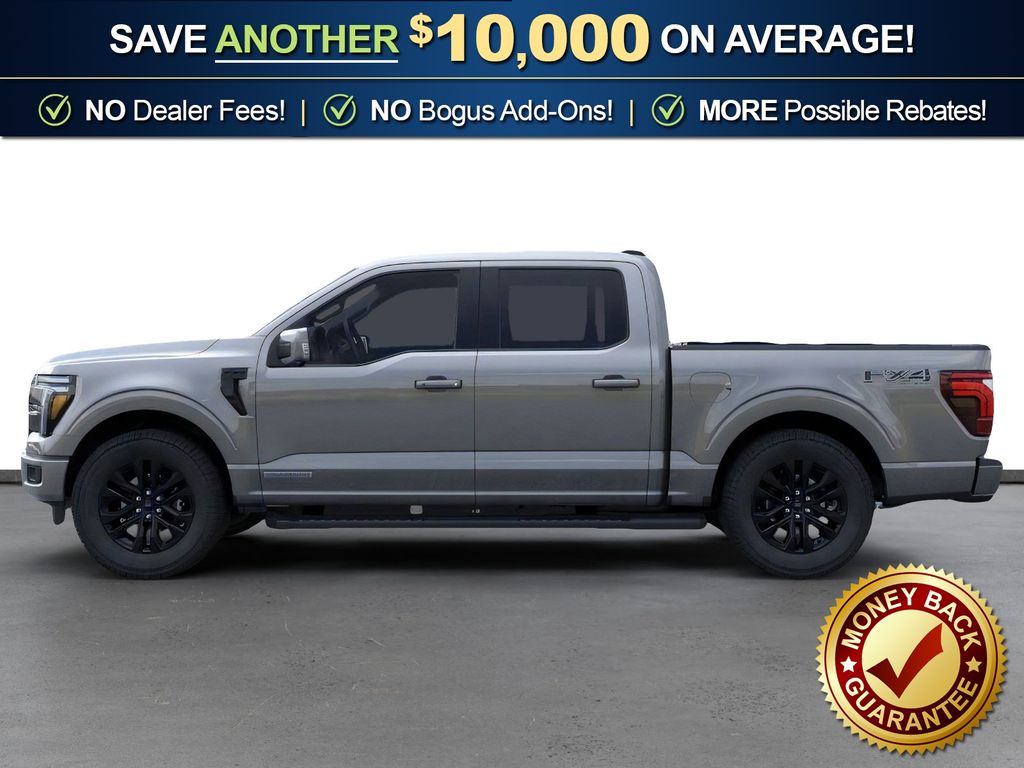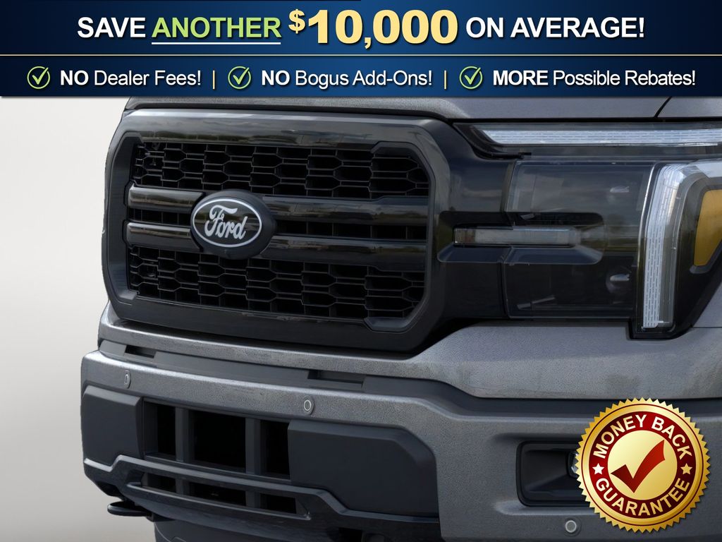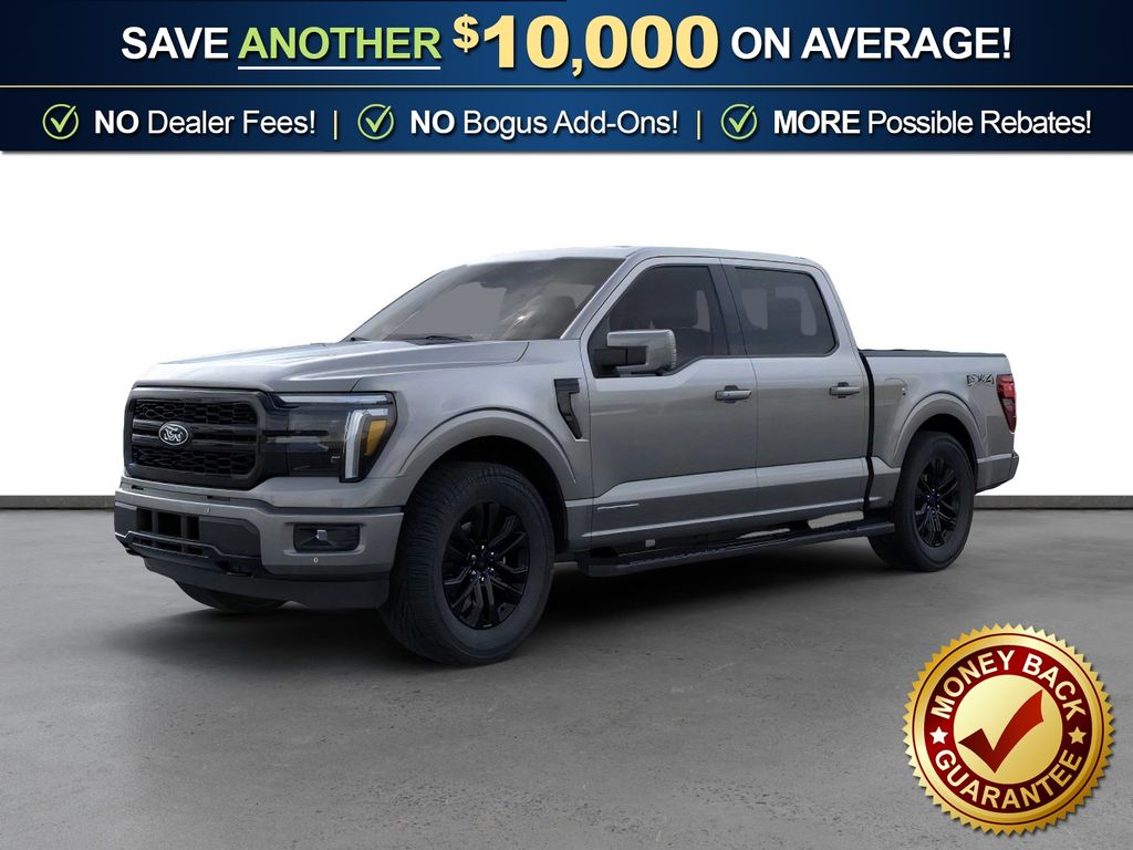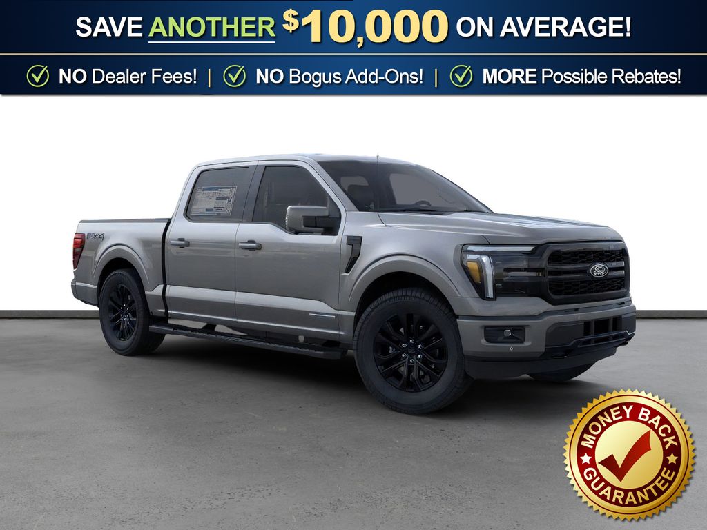 Carbonized Gray Metallic 2026 Ford F-150 Lariat NFT 4WD 10-Speed Automatic 3.5L PowerBoost Full-Hybrid V6 3.5L PowerBoost Full-Hybrid V6, 4WD, 4 Pickup Box Tie-Down Plates, 4-Wheel Disc Brakes, 4x4 FX4 Off-Road Bodyside Decal, 8 Speakers, ABS brakes, ActiveX Trimmed Bucket Seats, Air Conditioning, Alloy wheels, AM/FM radio: SiriusXM with 360L, Auto High-beam Headlights, Auto-dimming door mirrors, Auto-dimming Rear-View mirror, Automatic temperature control, Bed Storage Boxes, Bed Utility Package, Black Exterior Badging, Black Grille, Black Taillamp Bezels, Body-Color Front and Rear Bumpers, Brake assist, Bumpers: chrome, Chrome wheels, Compass, Dark Interior Appliques, Delay-off headlights, Driver door bin, Driver vanity mirror, Driver's Side SecuriCode Keyless-Entry Keypad, Dual front impact airbags, Dual front side impact airbags, Electronic Stability Control, Emergency communication system: SYNC 4 911 Assist, Ford Connectivity Package (1-Year Included), Front anti-roll bar, Front Bucket Seats, Front Center Armrest, Front dual zone A/C, Front fog lights, Front License Plate Bracket, Front reading lights, Front wheel independent suspension, Fully automatic headlights, FX4 Off-Road Package, Garage door transmitter, Gray Box Side Decal, Heated door mirrors, Heated front seats, Heated steering wheel, Hill Descent Control, Illuminated entry, Integrated Trailer Brake Controller, Internet access capable: 5G Modem - Ford Connectivity Package, Lariat Black Appearance Package, LED Box Lighting, Low tire pressure warning, Matte Black Tailgate F-150 Decal, Memory seat, Monotube Rear Shocks, Navigation system: Connected Navigation, Occupant sensing airbag, Off-Road Tuned Front Shock Absorbers, Outside temperature display, Overhead airbag, Overhead console, Panic alarm, Passenger door bin, Passenger vanity mirror, Power door mirrors, Power driver seat, Power passenger seat, Power steering, Power windows, Pro Power Onboard - 7.2KW, Radio data system, Radio: B&O Sound System by Bang and Olufsen, Rain sensing wipers, Rear reading lights, Rear seat center armrest, Rear step bumper, Rear window defroster, Remote keyless entry, Rock Crawl Mode, Security system, Speed control, Split folding rear seat, Steering wheel mounted audio controls, SYNC 4 with Enhanced Voice Recognition, Tachometer, Tailgate Step with Work Surface, Telescoping steering wheel, Tilt steering wheel, Tow/Haul Package, Traction control, Tray Style Floor Liner Without Carpet Mats, Trip computer, Turn signal indicator mirrors, Variably intermittent wipers, Ventilated front seats, Wheels: 18" Chrome-Like PVD, 3.5L PowerBoost Full-Hybrid V6, 4WD.