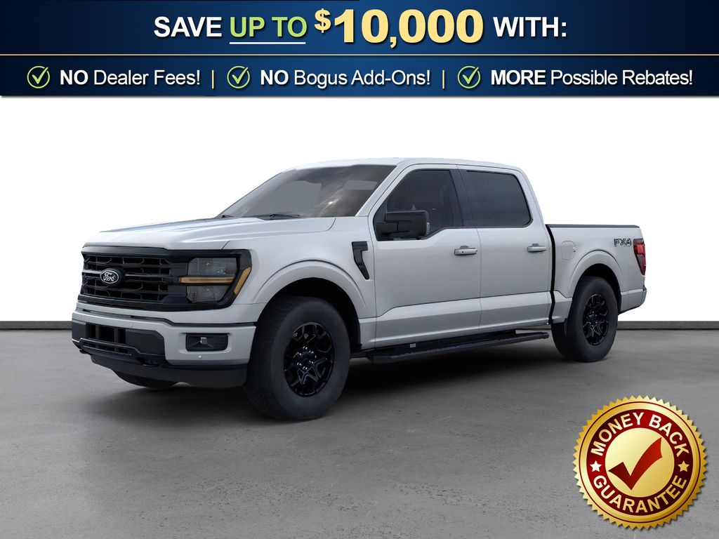 Iconic Silver Metallic 2026 Ford F-150 XLT FCT 4WD 10-Speed Automatic 3.5L V6 EcoBoost 4WD, 18" Painted Aluminum Wheels, 4-Wheel Disc Brakes, 6 Speakers, ABS brakes, Air Conditioning, Alloy wheels, AM/FM radio: SiriusXM with 360L, Auto High-beam Headlights, Brake assist, Bumpers: body-color, Compass, Delay-off headlights, Driver door bin, Driver vanity mirror, Dual front impact airbags, Dual front side impact airbags, Electronic Stability Control, Emergency communication system: SYNC 4 911 Assist, Ford Connectivity Package (1-Year Included), Front anti-roll bar, Front Center Armrest, Front fog lights, Front License Plate Bracket, Front reading lights, Front wheel independent suspension, Fully automatic headlights, FX4 Off-Road Package, Heated door mirrors, Illuminated entry, Internet access capable: 5G Modem - Ford Connectivity Package, Low tire pressure warning, Occupant sensing airbag, Outside temperature display, Overhead airbag, Overhead console, Panic alarm, Passenger door bin, Passenger vanity mirror, Power door mirrors, Power steering, Power windows, Radio data system, Radio: AM/FM Stereo with SiriusXM 360L, Rear Parking Sensors, Rear reading lights, Rear step bumper, Rear window defroster, Remote keyless entry, Security system, Speed control, Split folding rear seat, Steering wheel mounted audio controls, SYNC 4 with Enhanced Voice Recognition, Tachometer, Telescoping steering wheel, Tilt steering wheel, Tow/Haul Package, Traction control, Trip computer, Unique Sport Cloth 40/Console/40 Front-Seats, Variably intermittent wipers, XLT Black Appearance Package, 4WD.