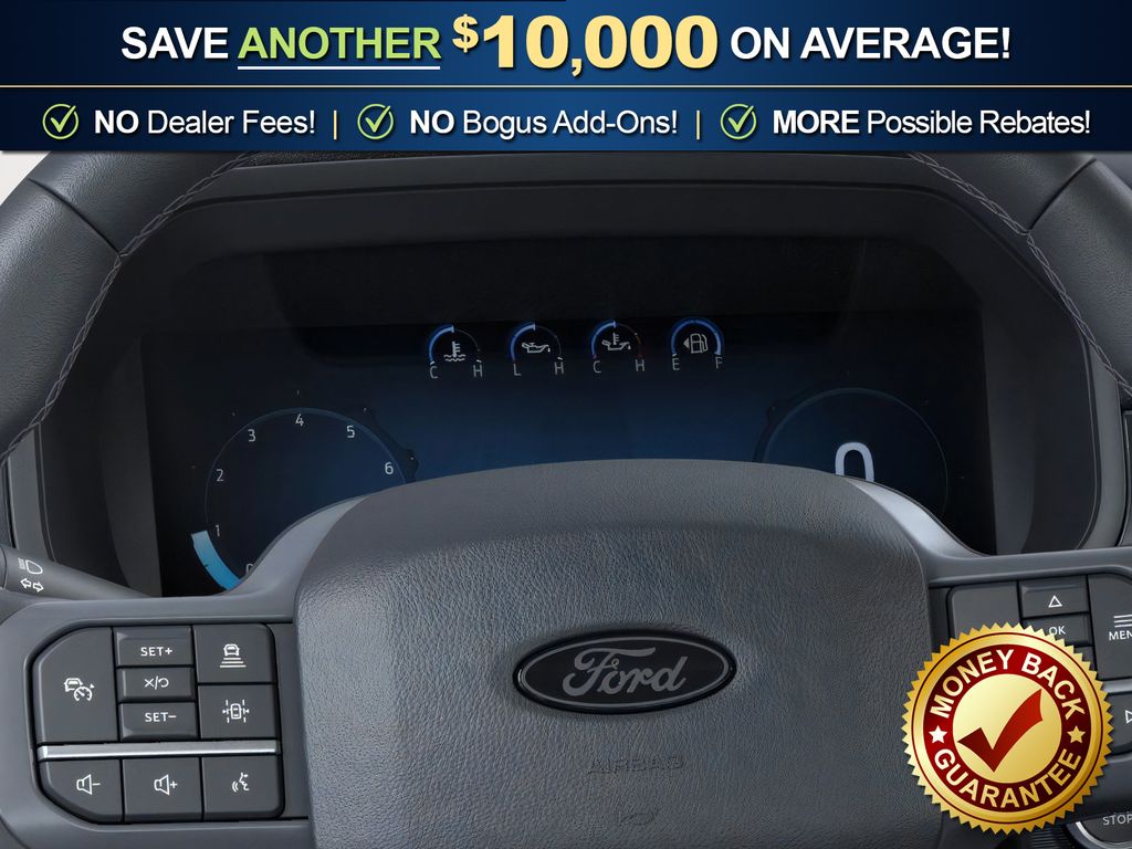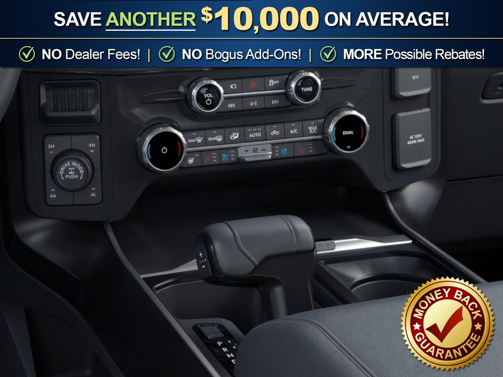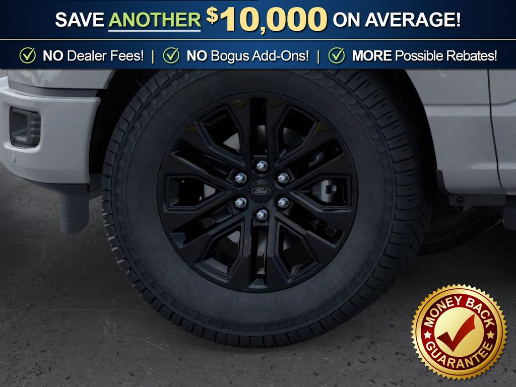 Ford Connectivity Package (1-Year Included), FX4 Off-Road Package (4x4 FX4 Off-Road Bodyside Decal, Hill Descent Control, Monotube Rear Shocks, Off-Road Tuned Front Shock Absorbers, Rock Crawl Mode, and Tray Style Floor Liner Without Carpet Mats), Internet access capable: 5G Modem - Ford Connectivity Package, Lariat Black Appearance Package (ActiveX Trimmed Bucket Seats, Black Exterior Badging, Black Grille, Black Taillamp Bezels, Body-Color Front and Rear Bumpers, Dark Interior Appliques, Gray Box Side Decal, and Matte Black Tailgate F-150 Decal), 4WD, 4-Wheel Disc Brakes, 8 Speakers, ABS brakes, Air Conditioning, Alloy wheels, AM/FM radio: SiriusXM with 360L, Auto High-beam Headlights, Auto-dimming door mirrors, Auto-dimming Rear-View mirror, Automatic temperature control, Brake assist, Bumpers: chrome, Chrome wheels, Compass, Delay-off headlights, Driver door bin, Driver vanity mirror, Driver's Side SecuriCode Keyless-Entry Keypad, Dual front impact airbags, Dual front side impact airbags, Electronic Stability Control, Emergency communication system: SYNC 4 911 Assist, Front anti-roll bar, Front Bucket Seats, Front Center Armrest, Front dual zone A/C, Front fog lights, Front reading lights, Front wheel independent suspension, Fully automatic headlights, Garage door transmitter, Heated door mirrors, Heated front seats, Heated steering wheel, Illuminated entry, Low tire pressure warning, Memory seat, Navigation system: Connected Navigation, Occupant sensing airbag, Outside temperature display, Overhead airbag, Overhead console, Panic alarm, Passenger door bin, Passenger vanity mirror, Power door mirrors, Power driver seat, Power passenger seat, Power steering, Power windows, Radio data system, Radio: B&O Sound System by Bang and Olufsen, Rain sensing wipers, Rear reading lights, Rear seat center armrest, Rear step bumper, Rear window defroster, Remote keyless entry, Security system, Speed control, Split folding rear seat, Steering wheel mounted audio controls, SYNC 4 with Enhanced Voice Recognition, Tachometer, Telescoping steering wheel, Tilt steering wheel, Traction control, Trip computer, Turn signal indicator mirrors, Variably intermittent wipers, Ventilated front seats, and Wheels: 18" Chrome-Like PVD.
