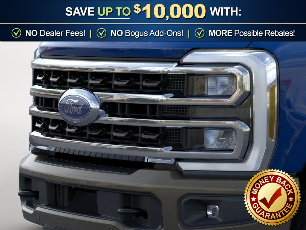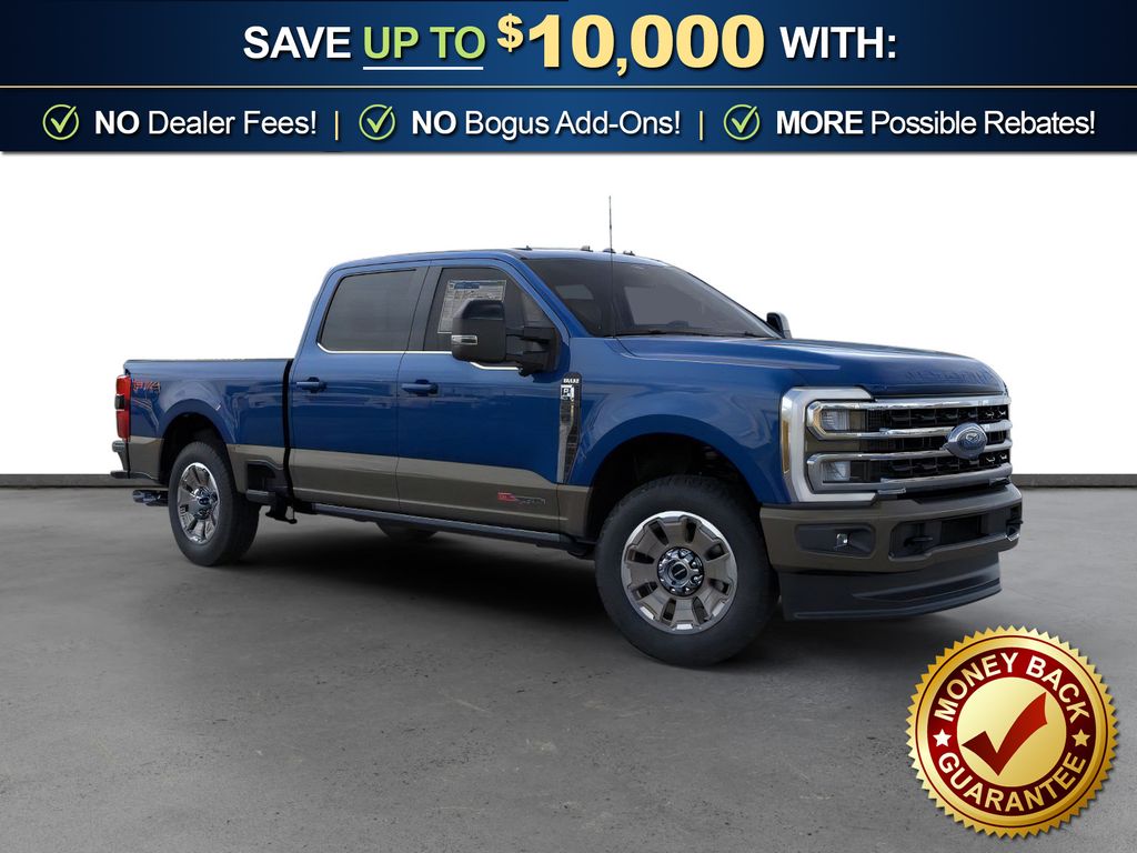 Dealer Discount of $6,409 off MSRP Argon Blue Metallic 2026 Ford F-250SD King Ranch NFT 4WD 10-Speed Automatic 6.7L High Output Power Stroke V8 Diesel 4WD, 14 Speakers, 4-Wheel Disc Brakes, 410 Amp Dual Alternators, 5th Wheel/Gooseneck Hitch Prep Package, ABS brakes, Adjustable pedals, Air Conditioning, Alloy wheels, AM/FM radio: SiriusXM with 360L, Auto High-beam Headlights, Auto tilt-away steering wheel, Auto-dimming Rear-View mirror, Automatic temperature control, Brake assist, Compass, Delay-off headlights, Driver door bin, Driver vanity mirror, Dual front impact airbags, Dual front side impact airbags, Electronic Stability Control, Emergency communication system: SYNC 4 911 Assist, Engine Block Heater, Flow-Through Console, Ford Connectivity Package (1-Year Included), Front anti-roll bar, Front Bucket Seats, Front Center Armrest, Front dual zone A/C, Front fog lights, Front License Plate Bracket, Front reading lights, Fully automatic headlights, FX4 Off-Road Package, Garage door transmitter, GVWR: F-250 >10K Package, Heads-Up Display, Heated door mirrors, Heated front seats, Heated rear seats, Heated steering wheel, High Capacity 11.6" Axle Upgrade Package, Hill Descent Control, Illuminated entry, Internet access capable: 5G Modem - Ford Connectivity Package, Leather steering wheel, LED Roof Clearance Lights, Low tire pressure warning, Memory seat, Navigation system: Connected Navigation, Off-Road Specifically Tuned Shock Absorbers, Outside temperature display, Overhead airbag, Overhead console, Panic alarm, Passenger door bin, Passenger vanity mirror, Pedal memory, Power door mirrors, Power driver seat, Power passenger seat, Power steering, Power windows, Pro Power Onboard - 2kW, Radio: B&O Unleashed Sound System by Bang & Olufsen, Rain sensing wipers, Rapid-Heat Supplemental Cab Heater, Rear reading lights, Rear seat center armrest, Rear step bumper, Rear window defroster, Remote keyless entry, Security system, SiriusXM with 360L, Speed control, Split folding rear seat, Steering wheel memory, Steering wheel mounted A/C controls, Steering wheel mounted audio controls, SYNC 4 with Enhanced Voice Recognition, Tachometer, Telescoping steering wheel, Tilt steering wheel, Traction control, Trip computer, Turn signal indicator mirrors, Twin Panel Power Moonroof, Unique FX4 Off-Road Box Decal, Unique King Ranch Leather 40/Console/40 Seats, Upfitter Switches (6), Variably intermittent wipers, Ventilated front seats, Wheels: 20" Bright Machined Aluminum, 4WD.