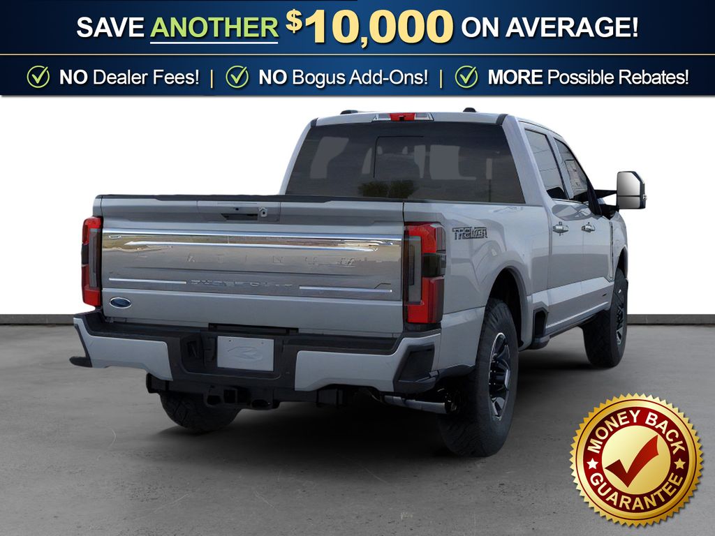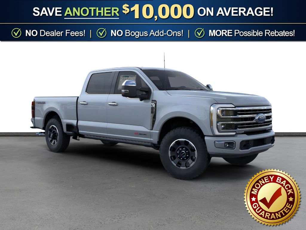 Glacier Gray Metallic Tri-Coat 2026 Ford F-250SD Platinum NFT 4WD 10-Speed Automatic 6.7L High Output Power Stroke V8 Diesel 4WD, 4-Wheel Disc Brakes, 410 Amp Dual Alternators, ABS brakes, Adjustable pedals, Air Conditioning, Alloy wheels, AM/FM radio: SiriusXM with 360L, Auto High-beam Headlights, Auto-dimming Rear-View mirror, Automatic temperature control, Brake assist, Compass, Delay-off headlights, Driver door bin, Driver vanity mirror, Dual front impact airbags, Dual front side impact airbags, Electronic Stability Control, Emergency communication system: SYNC 4 911 Assist, Flow-Through Console, Ford Connectivity Package (1-Year Included), Front and Rear Wheel Well Liners, Front anti-roll bar, Front Bucket Seats, Front Center Armrest, Front dual zone A/C, Front fog lights, Front reading lights, Fully automatic headlights, Garage door transmitter, GVWR: F-250 >10K Package, Heated door mirrors, Heated front seats, Heated rear seats, Heated steering wheel, High Capacity 11.6" Axle Upgrade Package, Illuminated entry, Internet access capable: 5G Modem - Ford Connectivity Package, LED Roof Clearance Lights, Low tire pressure warning, Memory seat, Navigation system: Connected Navigation, Outside temperature display, Overhead airbag, Overhead console, Panic alarm, Passenger door bin, Passenger vanity mirror, Pedal memory, Power door mirrors, Power driver seat, Power passenger seat, Power steering, Power windows, Radio: B&O Unleashed Sound System by Bang & Olufsen, Rain sensing wipers, Rear reading lights, Rear seat center armrest, Rear step bumper, Rear window defroster, Remote keyless entry, SecuriCode Keyless Entry Keypad (driver's Side), Security system, SiriusXM with 360L, Speed control, Split folding rear seat, Steering wheel mounted audio controls, SYNC 4 with Enhanced Voice Recognition, Tachometer, Telescoping steering wheel, Tilt steering wheel, Tough Bed Spray-in Bedliner, Traction control, Trip computer, Turn signal indicator mirrors, Variably intermittent wipers, Ventilated front seats, 4WD.