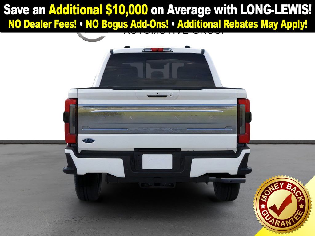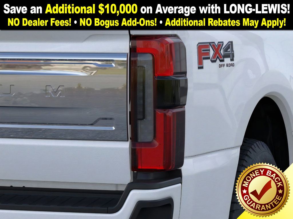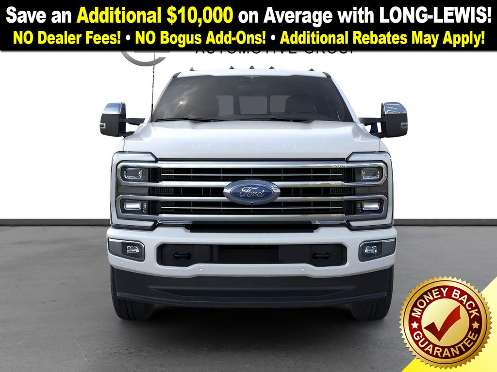 Star White Metallic Tri-Coat 2026 Ford F-250SD Platinum NFT 4WD 10-Speed Automatic 6.7L High Output Power Stroke V8 Diesel 4WD, 4-Wheel Disc Brakes, 410 Amp Dual Alternators, 5th Wheel/Gooseneck Hitch Prep Package, ABS brakes, Adjustable pedals, Air Conditioning, Alloy wheels, AM/FM radio: SiriusXM with 360L, Auto High-beam Headlights, Auto-dimming Rear-View mirror, Automatic temperature control, Brake assist, Compass, Delay-off headlights, Driver door bin, Driver vanity mirror, Dual front impact airbags, Dual front side impact airbags, Electronic Stability Control, Emergency communication system: SYNC 4 911 Assist, Engine Block Heater, F-250 >10K GVWR Package, Flow-Through Console, Ford Connectivity Package (1-Year Included), Front anti-roll bar, Front Bucket Seats, Front Center Armrest, Front dual zone A/C, Front fog lights, Front reading lights, Fully automatic headlights, FX4 Off-Road Package, Garage door transmitter, Heated door mirrors, Heated front seats, Heated rear seats, Heated steering wheel, High Capacity 11.6" Axle Upgrade Package, Hill Descent Control, Illuminated entry, Internet access capable: 5G Modem - Ford Connectivity Package, LED Roof Clearance Lights, Low tire pressure warning, Memory seat, Navigation system: Connected Navigation, Off-Road Specifically Tuned Shock Absorbers, Outside temperature display, Overhead airbag, Overhead console, Panic alarm, Passenger door bin, Passenger vanity mirror, Pedal memory, Power door mirrors, Power driver seat, Power passenger seat, Power steering, Power windows, Radio: B&O Unleashed Sound System by Bang & Olufsen, Rain sensing wipers, Rapid-Heat Supplemental Cab Heater, Rear reading lights, Rear seat center armrest, Rear step bumper, Rear window defroster, Remote keyless entry, Security system, SiriusXM w/360L, Speed control, Split folding rear seat, Steering wheel mounted audio controls, SYNC 4 w/Enhanced Voice Recognition, Tachometer, Telescoping steering wheel, Tilt steering wheel, Traction control, Trip computer, Turn signal indicator mirrors, Unique FX4 Off-Road Box Decal, Variably intermittent wipers, Ventilated front seats, 4WD.