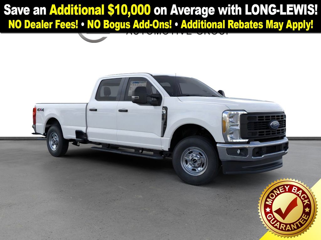 Oxford White 2026 Ford F-250SD XL NFT 4WD 10-Speed Automatic 6.8L V8 4WD, 17" Argent Painted Steel Wheels, 4-Wheel Disc Brakes, 5th Wheel/Gooseneck Hitch Prep Package, 6 Speakers, ABS brakes, Air Conditioning, AM/FM radio, Brake assist, Bright Chrome Hub Covers and Center Ornaments, Chrome Front Bumper, Chrome Rear Step Bumper, Compass, Delay-off headlights, Dual front impact airbags, Dual front side impact airbags, Electronic Stability Control, Emergency communication system: SYNC 4 911 Assist, Exterior Parking Camera Rear, Ford Connectivity Package (1-Year Included), Front anti-roll bar, Front Center Armrest w/Storage, Front License Plate Bracket, Front reading lights, Fully automatic headlights, GVWR: 10,000 Lb Payload Package, GVWR: F-250 >10K Package, Halogen Fog Lamps, HD Vinyl 40/20/40 Split Bench Seat, Heated door mirrors, Illuminated entry, Internet access capable: 5G Modem - Ford Connectivity Package, Low tire pressure warning, Outside temperature display, Overhead airbag, Overhead console, Panic alarm, Passenger vanity mirror, Platform Running Boards, Power door mirrors, Power steering, Power windows, Pro Power Onboard - 400W, Radio: AM/FM Stereo with MP3 Player, Rear reading lights, Rear step bumper, Remote keyless entry, Security system, Speed control, Split folding rear seat, Steering wheel mounted audio controls, SYNC 4, Tachometer, Telescoping steering wheel, Tilt steering wheel, Traction control, Trailer Brake Controller, Trip computer, Turn signal indicator mirrors, Upfitter Switches (6), Variably intermittent wipers, XL Chrome Package, XL Driver Assist Package, 4WD.