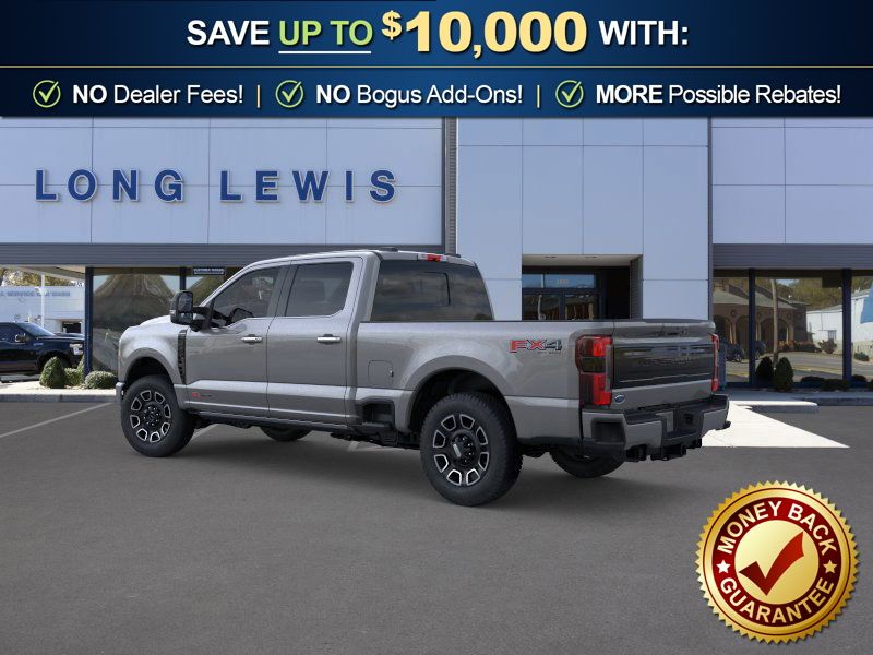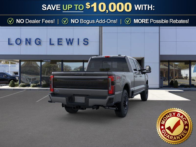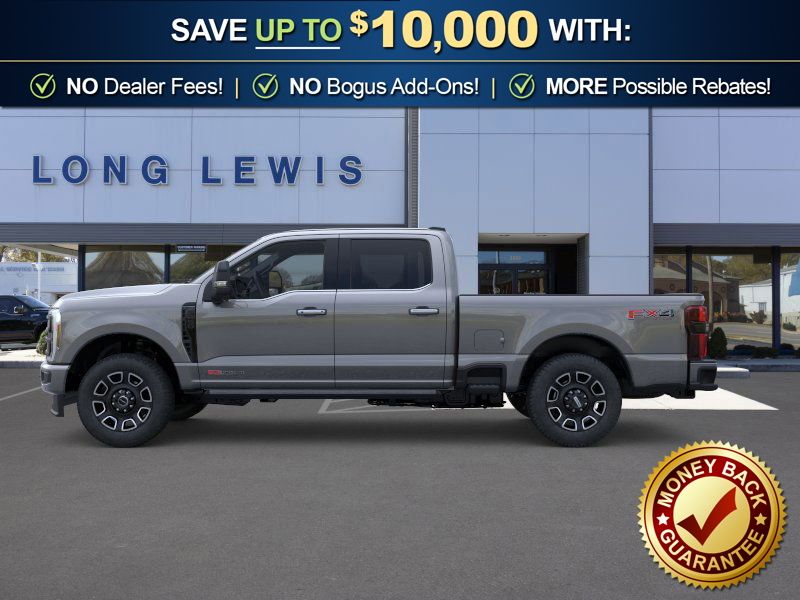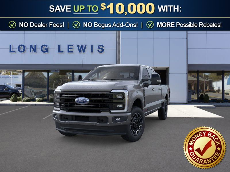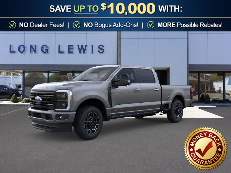 Carbonized Gray Metallic 2026 Ford F-350SD Platinum NFT 4WD 10-Speed Automatic 6.7L High Output Power Stroke V8 Diesel 4WD, 4-Wheel Disc Brakes, 410 Amp Dual Alternators, ABS brakes, Adjustable pedals, Air Conditioning, Alloy wheels, AM/FM radio: SiriusXM with 360L, Auto High-beam Headlights, Auto-dimming Rear-View mirror, Automatic temperature control, Brake assist, Compass, Delay-off headlights, Driver door bin, Driver vanity mirror, Dual front impact airbags, Dual front side impact airbags, Electronic Stability Control, Emergency communication system: SYNC 4 911 Assist, Engine Block Heater, Flow-Through Console, Ford Connectivity Package (1-Year Included), Front anti-roll bar, Front Bucket Seats, Front Center Armrest, Front dual zone A/C, Front fog lights, Front reading lights, Fully automatic headlights, FX4 Off-Road Package, Garage door transmitter, Heated door mirrors, Heated front seats, Heated rear seats, Heated steering wheel, Hill Descent Control, Illuminated entry, Internet access capable: 5G Modem - Ford Connectivity Package, Low tire pressure warning, Memory seat, Navigation system: Connected Navigation, Off-Road Specifically Tuned Shock Absorbers, Outside temperature display, Overhead airbag, Overhead console, Panic alarm, Passenger door bin, Passenger vanity mirror, Pedal memory, Power door mirrors, Power driver seat, Power passenger seat, Power steering, Power windows, Pro Power Onboard - 2kW, Radio: B&O Unleashed Sound System by Bang & Olufsen, Rain sensing wipers, Rapid-Heat Supplemental Cab Heater, Rear reading lights, Rear seat center armrest, Rear step bumper, Rear window defroster, Remote keyless entry, Security system, SiriusXM with 360L, Speed control, Split folding rear seat, Steering wheel mounted audio controls, SYNC 4 with Enhanced Voice Recognition, Tachometer, Telescoping steering wheel, Tilt steering wheel, Traction control, Trip computer, Turn signal indicator mirrors, Twin Panel Power Moonroof, Unique FX4 Off-Road Box Decal, Upfitter Switches (6), Variably intermittent wipers, Ventilated front seats, 4WD.