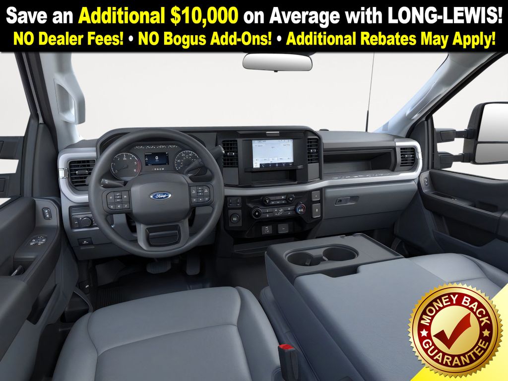 Agate Black Metallic 2026 Ford F-350SD XL DRW RWD 10-Speed Automatic 7.3L V8 PFI OHV 16V Federal 335hp 17" Argent Painted Steel Wheels, 190 Amp Alternator, 3.73 Axle Ratio, 4 Speakers, 4-Wheel Disc Brakes, ABS brakes, Air Conditioning, AM/FM radio, Brake assist, Cloth 40/20/40 Split Bench Seat, Compass, Delay-off headlights, Dual 68 AH/65 AGM Battery, Dual front impact airbags, Dual front side impact airbags, Dual rear wheels, Emergency communication system: SYNC 4 911 Assist, Ford Connectivity Package (1-Year Included), Front anti-roll bar, Front Center Armrest w/Storage, Front reading lights, Front wheel independent suspension, Fully automatic headlights, HD Vinyl 40/20/40 Split Bench Seat, Heated door mirrors, Illuminated entry, Internet access capable: 5G Modem - Ford Connectivity Package, Low tire pressure warning, Outside temperature display, Overhead airbag, Overhead console, Panic alarm, Passenger cancellable airbag, Passenger vanity mirror, Power door mirrors, Power steering, Power windows, Rear anti-roll bar, Remote keyless entry, Security system, Speed control, Steering wheel mounted audio controls, Tachometer, Telescoping steering wheel, Tilt steering wheel, Traction control, Trailer Brake Controller, Trip computer, Turn signal indicator mirrors, Variably intermittent wipers.