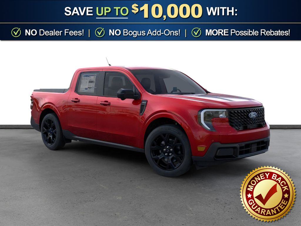 Dealer Discount of $1,155 off MSRP Ruby Red Metallic Tinted Clearcoat 2026 Ford Maverick Lariat NFT AWD 8-Speed Automatic EcoBoost 2.0L I4 GTDi DOHC Turbocharged VCT 2.91 Axle Ratio, 4-Wheel Disc Brakes, 8 Speakers, ABS brakes, ActiveX Trimmed Heated Front Bucket Seats, Air Conditioning, Alloy wheels, AM/FM radio: SiriusXM with 360L, Apple CarPlay/Android Auto, Auto High-beam Headlights, Automatic temperature control, Brake assist, Bumpers: body-color, Compass, Delay-off headlights, Driver door bin, Driver vanity mirror, Dual front impact airbags, Dual front side impact airbags, Electronic Stability Control, Emergency communication system: SYNC 4 911 Assist, Exterior Parking Camera Rear, Ford Connectivity Package (1-Year Included), Four wheel independent suspension, Front anti-roll bar, Front Bucket Seats, Front Center Armrest, Front dual zone A/C, Front reading lights, Fully automatic headlights, Heated door mirrors, Heated front seats, Heated steering wheel, Illuminated entry, Internet access capable: 5G Modem - Ford Connectivity Package, Knee airbag, Low tire pressure warning, Navigation system: Connected Navigation, Occupant sensing airbag, Outside temperature display, Overhead airbag, Overhead console, Panic alarm, Passenger door bin, Passenger vanity mirror, Power door mirrors, Power driver seat, Power steering, Power windows, Radio data system, Radio: B&O Sound System by Bang and Olufsen, Rear anti-roll bar, Rear seat center armrest, Rear step bumper, Remote keyless entry, Security system, SiriusXM with 360L, Speed control, Speed-sensing steering, Steering wheel mounted audio controls, SYNC 4 with Enhanced Voice Recognition, Telescoping steering wheel, Tilt steering wheel, Traction control, Trip computer, Wheels: 19" Machined Aluminum Painted.