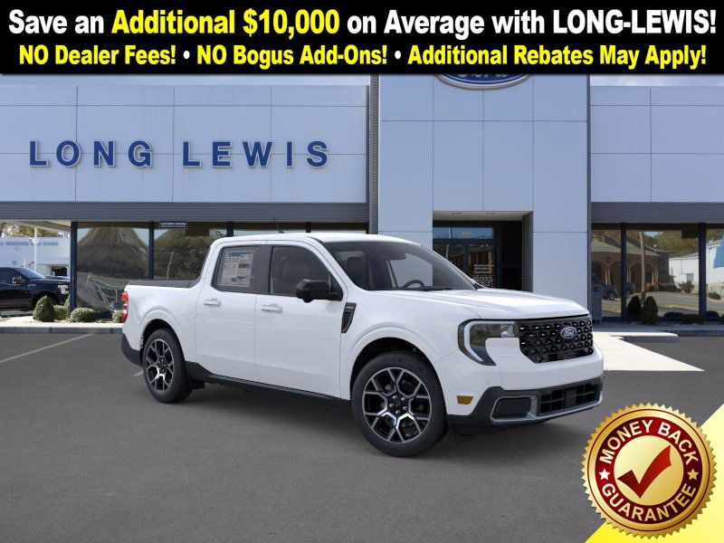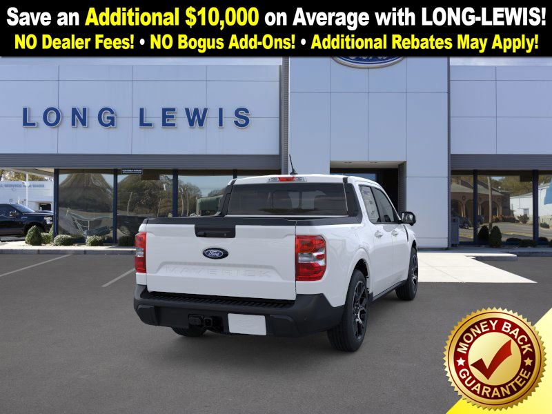 Oxford White 2026 Ford Maverick Lariat NFT AWD 8-Speed Automatic EcoBoost 2.0L I4 GTDi DOHC Turbocharged VCT 2.91 Axle Ratio, 4-Wheel Disc Brakes, 4K Tow Package, 8 Speakers, ABS brakes, ActiveX Trimmed Heated Front Bucket Seats, Air Conditioning, Alloy wheels, AM/FM radio: SiriusXM with 360L, Apple CarPlay/Android Auto, Auto High-beam Headlights, Automatic temperature control, Brake assist, Bumpers: body-color, Compass, Delay-off headlights, Driver door bin, Driver vanity mirror, Dual front impact airbags, Dual front side impact airbags, Electronic Stability Control, Emergency communication system: SYNC 4 911 Assist, Exterior Parking Camera Rear, Ford Connectivity Package (1-Year Included), Four wheel independent suspension, Front anti-roll bar, Front Bucket Seats, Front Center Armrest, Front dual zone A/C, Front reading lights, Fully automatic headlights, Heated door mirrors, Heated front seats, Heated steering wheel, Illuminated entry, Internet access capable: 5G Modem - Ford Connectivity Package, Knee airbag, Low tire pressure warning, Navigation system: Connected Navigation, Occupant sensing airbag, Outside temperature display, Overhead airbag, Overhead console, Panic alarm, Passenger door bin, Passenger vanity mirror, Power door mirrors, Power driver seat, Power steering, Power windows, Power-Sliding Rear Window, Radio data system, Radio: B&O Sound System by Bang and Olufsen, Rear anti-roll bar, Rear seat center armrest, Rear step bumper, Remote keyless entry, Security system, SiriusXM with 360L, Speed control, Speed-sensing steering, Steering wheel mounted audio controls, SYNC 4 with Enhanced Voice Recognition, Telescoping steering wheel, Tilt steering wheel, Traction control, Trailer Brake Controller, Trailer Hitch (class III) 2" Receiver, Trip computer, Upgraded Cooling Fan, Wheels: 19" Machined Aluminum Painted.