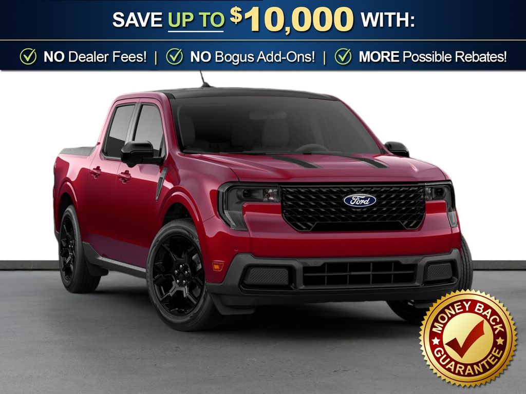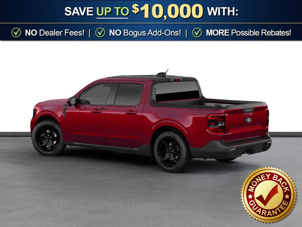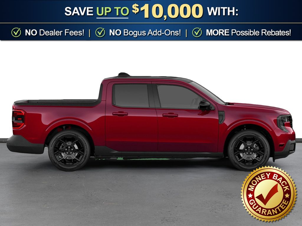 Ruby Red Metallic Tinted Clearcoat 2026 Ford Maverick Lariat NFT AWD CVT 2.5L I-4 Hybrid 2.5L I-4 Hybrid, 2.91 Axle Ratio, 4-Wheel Disc Brakes, 8 Speakers, ABS brakes, ActiveX Trimmed Heated Front Bucket Seats, Air Conditioning, Alloy wheels, AM/FM radio: SiriusXM with 360L, Apple CarPlay/Android Auto, Auto High-beam Headlights, Automatic temperature control, Black Appearance Package, Black Grille, Black Interior Accents, Brake assist, Bumpers: body-color, Compass, Delay-off headlights, Driver door bin, Driver vanity mirror, Dual front impact airbags, Dual front side impact airbags, Electronic Stability Control, Emergency communication system: SYNC 4 911 Assist, Exterior Parking Camera Rear, Ford Connectivity Package (1-Year Included), Four wheel independent suspension, Front anti-roll bar, Front Bucket Seats, Front Center Armrest, Front dual zone A/C, Front reading lights, Fully automatic headlights, Heated door mirrors, Heated front seats, Heated steering wheel, Illuminated entry, Internet access capable: 5G Modem - Ford Connectivity Package, Knee airbag, Low tire pressure warning, Navigation system: Connected Navigation, Occupant sensing airbag, Outside temperature display, Overhead airbag, Overhead console, Panic alarm, Passenger door bin, Passenger vanity mirror, Power door mirrors, Power driver seat, Power steering, Power windows, Radio data system, Radio: B&O Sound System by Bang and Olufsen, Rear anti-roll bar, Rear seat center armrest, Rear step bumper, Remote keyless entry, Security system, SiriusXM with 360L, Speed control, Speed-sensing steering, Steering wheel mounted audio controls, SYNC 4 with Enhanced Voice Recognition, Telescoping steering wheel, Tilt steering wheel, Traction control, Trip computer, Wheels: 19" Black Painted Aluminum, Wheels: 19" Machined Aluminum Painted, 2.5L I-4 Hybrid.