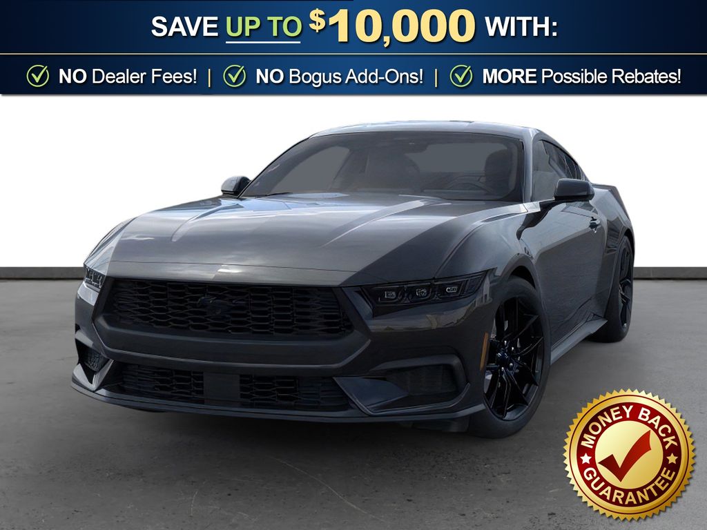 Dealer Discount of $1,694 off MSRP Shadow Black 2026 Ford Mustang NFC RWD 10-Speed Automatic EcoBoost 2.3L I4 GTDi DOHC Turbocharged VCT 1st Row Carpeted Black Floor Mats, 4-Wheel Disc Brakes, ABS brakes, Air Conditioning, Alloy wheels, AM/FM Stereo, Auto High-beam Headlights, Automatic temperature control, Black Front and Rear Pony Badges, Black Mirror Caps, Brake assist, Bumpers: body-color, Compass, Delay-off headlights, Driver door bin, Driver vanity mirror, Dual front impact airbags, Dual front side impact airbags, Electronic Stability Control, Emergency communication system: 911 Assist, Exterior Parking Camera Rear, Four wheel independent suspension, Front anti-roll bar, Front Bucket Seats, Front Center Armrest, Front dual zone A/C, Front reading lights, Fully automatic headlights, Illuminated entry, Knee airbag, Leather Shift Knob, Low tire pressure warning, Mustang Nite Pony Package, Occupant sensing airbag, Outside temperature display, Overhead airbag, Overhead console, Painted Black Roof, Panic alarm, Passenger door bin, Passenger vanity mirror, Power door mirrors, Power steering, Power windows, Radio data system, Rain sensing wipers, Rear anti-roll bar, Rear Parking Sensors, Rear window defroster, Remote keyless entry, Speed control, Speed-sensing steering, Speed-Sensitive Wipers, Split folding rear seat, Sport steering wheel, Steering wheel mounted audio controls, SYNC 4, Tachometer, Telescoping steering wheel, Tilt steering wheel, Traction control, Trip computer, Variably intermittent wipers, Voltmeter, Wheels: 18" x 8" Painted Shadow Silver Cast Aluminum, Wheels: 19" x 8.5" Ebony Black-Painted Aluminum.