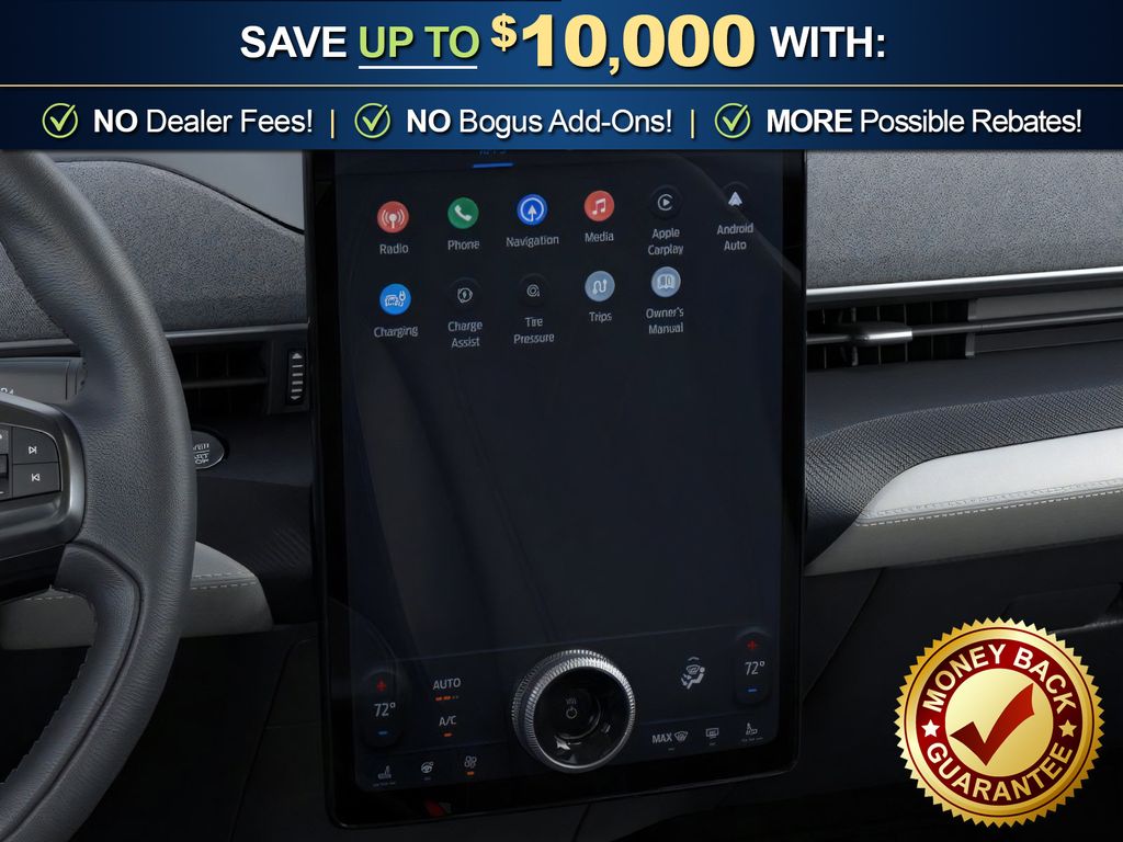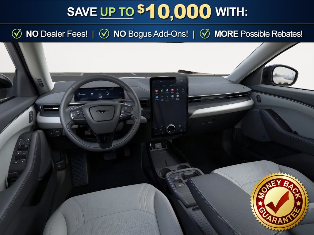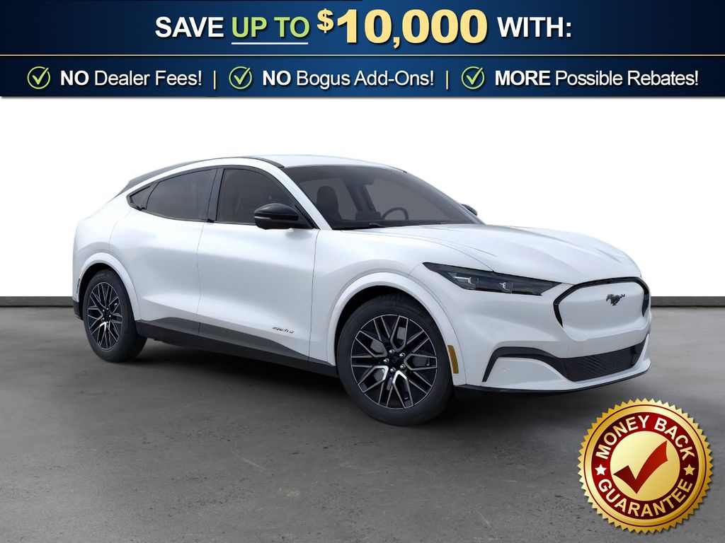 Dealer Discount of $850 off MSRP Star White Metallic Tri-Coat 2026 Ford Mustang Mach-E Premium NFT RWD Single-Speed Automatic Electric Motor 10 Speakers, 4-Wheel Disc Brakes, ABS brakes, Air Conditioning, Alloy wheels, AM/FM radio: SiriusXM with 360L, Apple CarPlay/Android Auto, Auto High-beam Headlights, Auto-dimming Rear-View mirror, Automatic temperature control, BlueCruise (equipment + 1 Year + 90-Day Plan), Brake assist, Bumpers: body-color, Compass, Delay-off headlights, Drainable Frunk, Driver door bin, Driver vanity mirror, Dual front impact airbags, Dual front side impact airbags, Electronic Stability Control, Emergency communication system: 911 Assist, Equipment Group 300A Standard Package, Exterior Parking Camera Rear, Ford Co-Pilot360 Active 2.0, Four wheel independent suspension, Front anti-roll bar, Front Bucket Seats, Front Center Armrest, Front dual zone A/C, Front License Plate Bracket, Front reading lights, Fully automatic headlights, Heated door mirrors, Heated front seats, Heated steering wheel, Heated/Ventilated ActiveX Bucket Seats, Illuminated entry, Knee airbag, Low tire pressure warning, Memory seat, Mobile Power Cord (120V/240V), Navigation system: Connected Navigation, Occupant sensing airbag, Outside temperature display, Overhead airbag, Overhead console, Panic alarm, Passenger door bin, Passenger vanity mirror, Power door mirrors, Power driver seat, Power passenger seat, Power steering, Power windows, Radio data system, Radio: B&O Sound System by Bang and Olufsen, Rain sensing wipers, Rear anti-roll bar, Rear seat center armrest, Rear side impact airbag, Rear window defroster, Rear window wiper, Remote keyless entry, Security system, SiriusXM with 360L, Speed control, Speed-sensing steering, Speed-Sensitive Wipers, Split folding rear seat, Spoiler, Steering wheel mounted audio controls, SYNC 4A with Enhanced Voice Recognition, Technology Package, Telescoping steering wheel, Tilt steering wheel, Tire Inflator and Sealant Kit, Traction control, Trip computer, Turn signal indicator mirrors, Variably intermittent wipers, Ventilated front seats, Wheels: 19" Bright Machined-Face Aluminum.